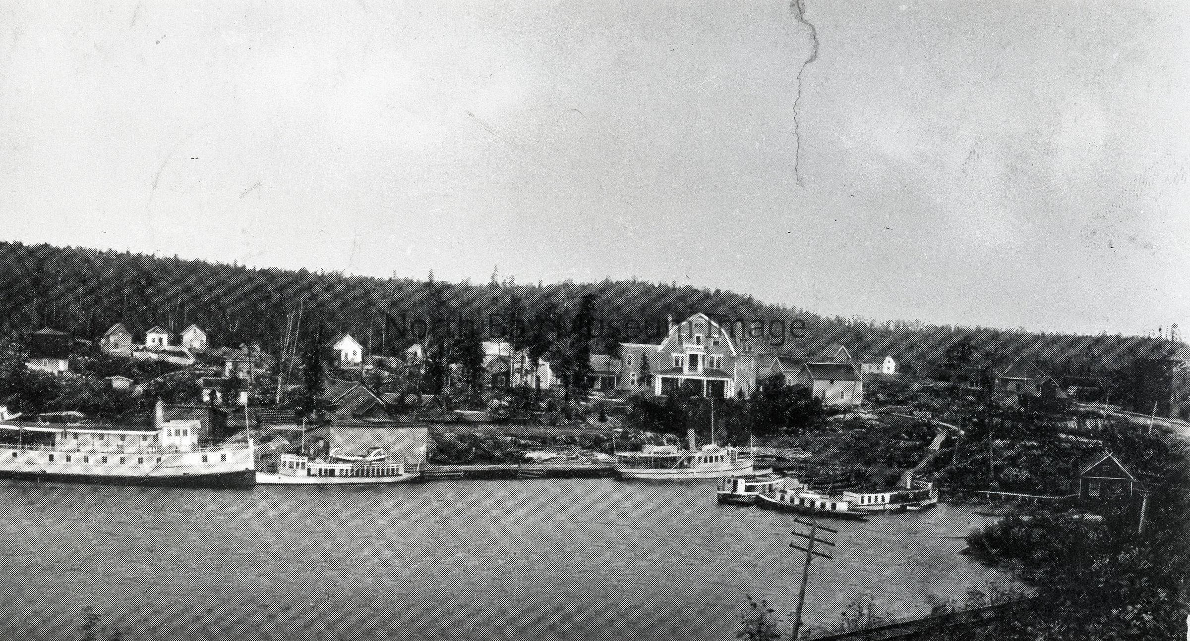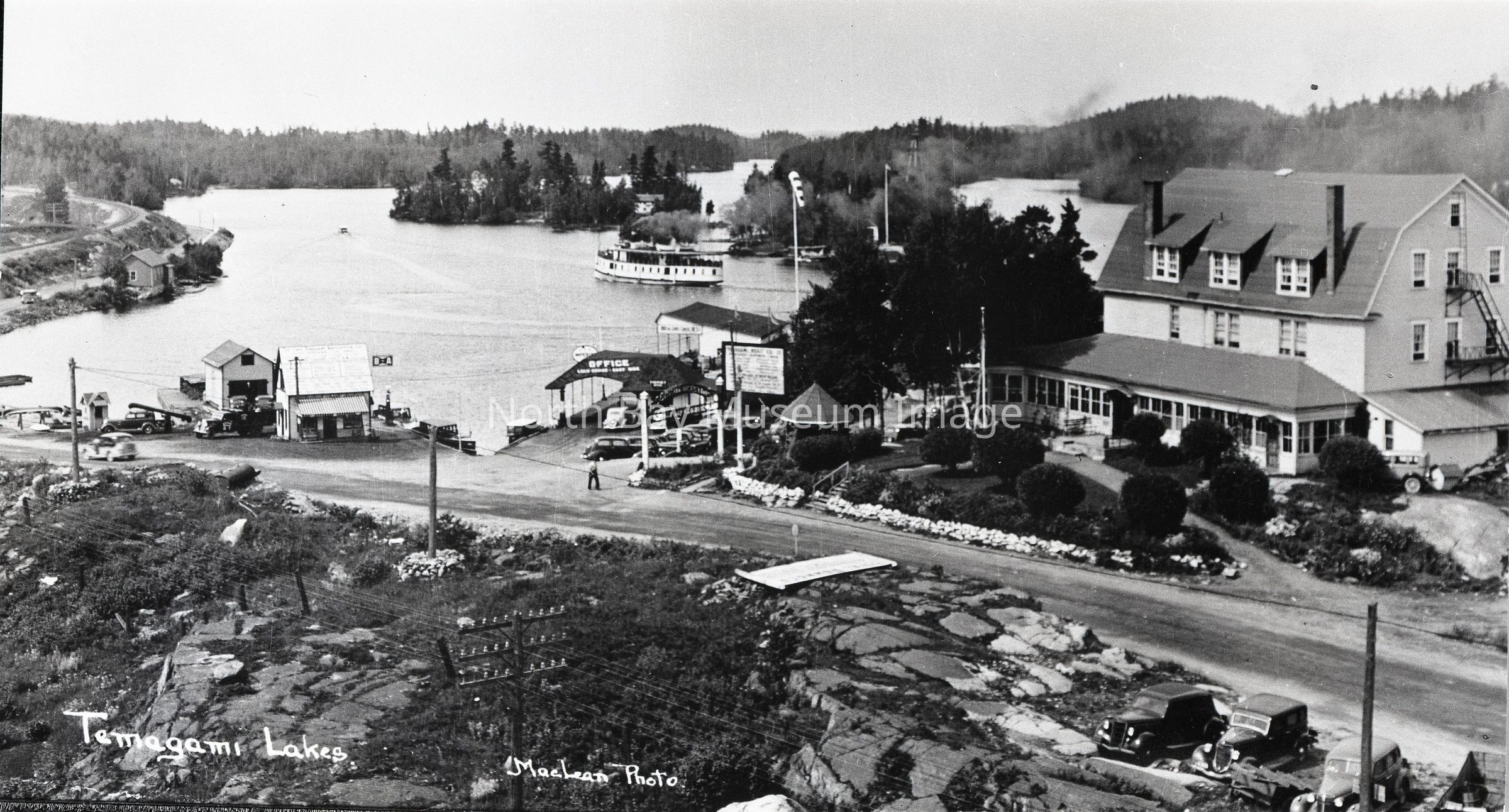 Negatives (a-e) of the Temagami Harbour in the 1900s to the1930s. Image a was captured from above and shows the various boats and boathouses in the harbour, as well as a small part of the city that is off of the lake. Image b shows the harbour and the various boats in the Harbour. Image c focuses on the docks of the Temagami Harbour. Image C shows the harbour and the Temagami hotel that is near the lake. Image d shows the harbour once again from a different view point, you are able to see the hotel just beyond all of the boats A part of the Forder Collection.Creator