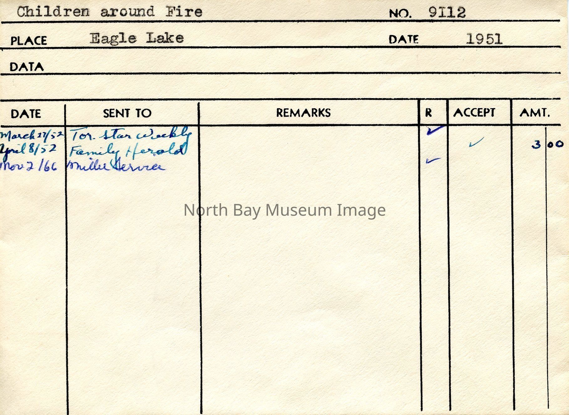 Photographer's Envelope (a) contains photographs and negatives (b-d) of children around a fire. The photo shows a group of children having a fire on the beach. One appears to be poking the fire with a stick while the others watch on. The Publications of the photo are listed on the back of the envelope.This image is a part of the Forder Collection.Creator