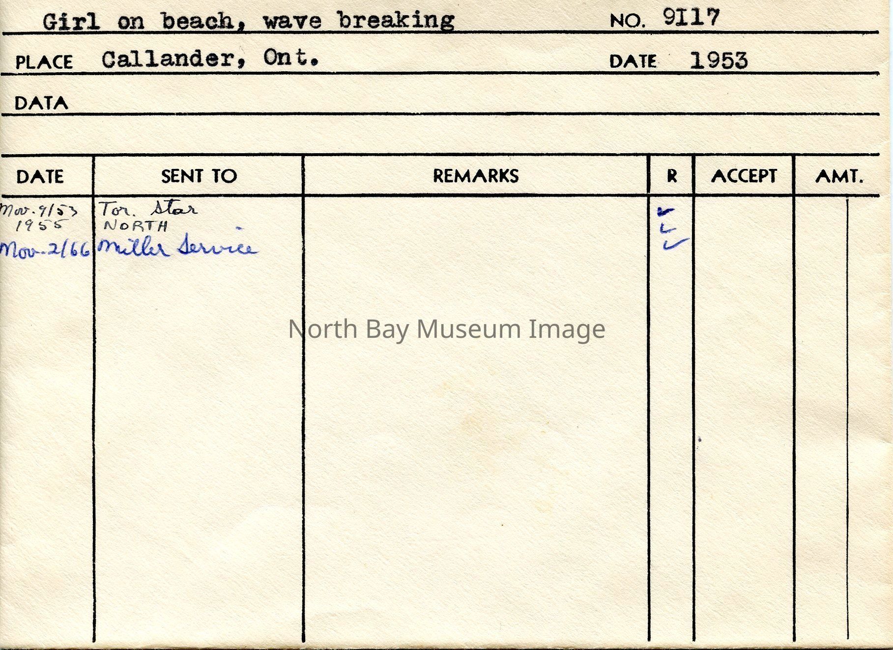 Photographer's Envelope (a) contains photographs and negatives (b-c) of a little girl on the beach wave breaking in Callander. She is is walking by the shoreline wiht a little bucket. The Publications of the photo are listed on the back of the envelope.This image is a part of the Forder Collection.Creator