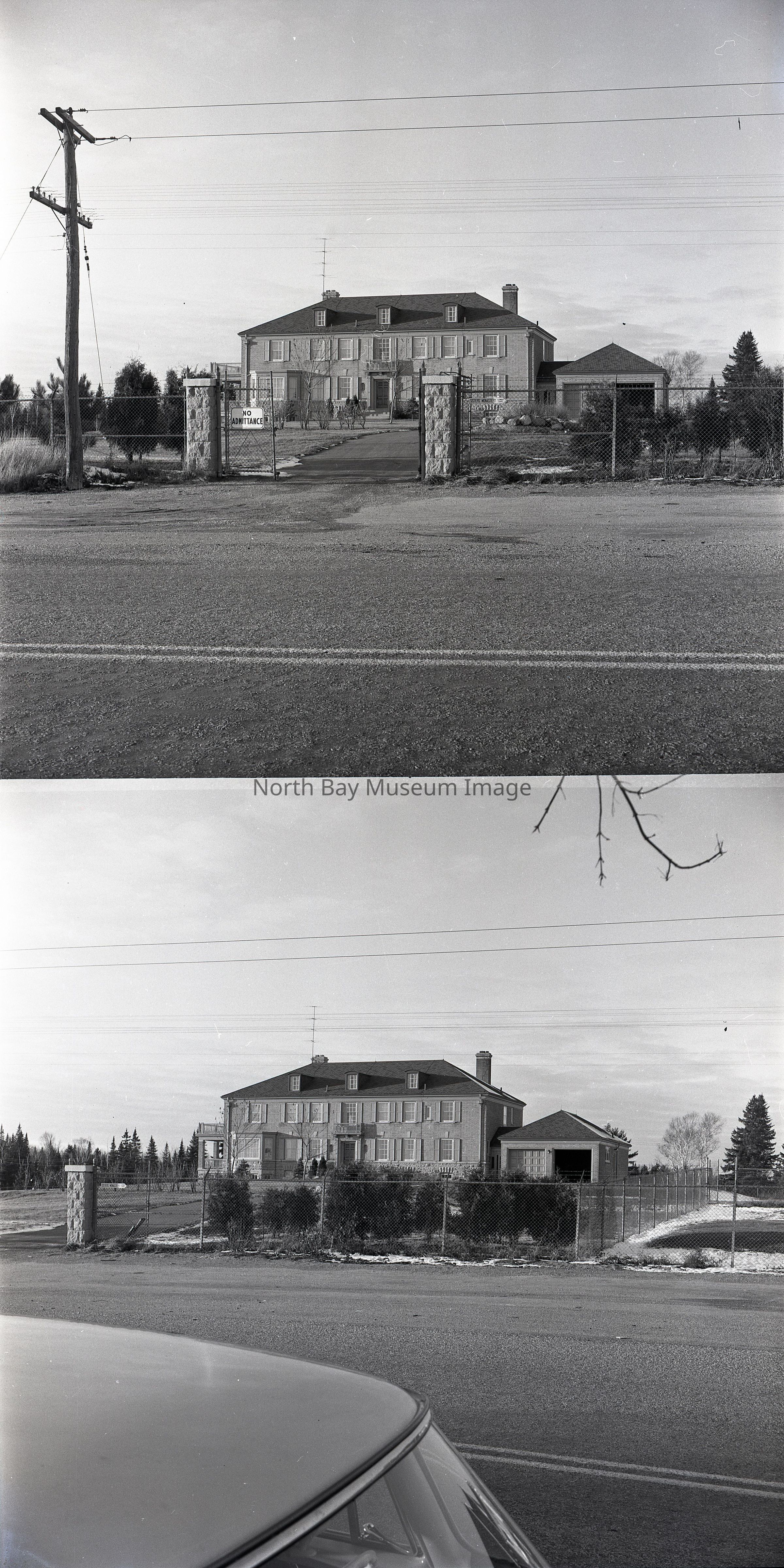 Envelope (a) contains the photograph and negative (b-h) of the Dionne Quints home in Corbeil. The photos show the large home where the Quints lived in Corbeil. The images also show the fence surrounding the the home to keep out tourists. A part of the Forder Collection. The photographers number is 10j1. All the publications of the images are written on the envelopeCreator