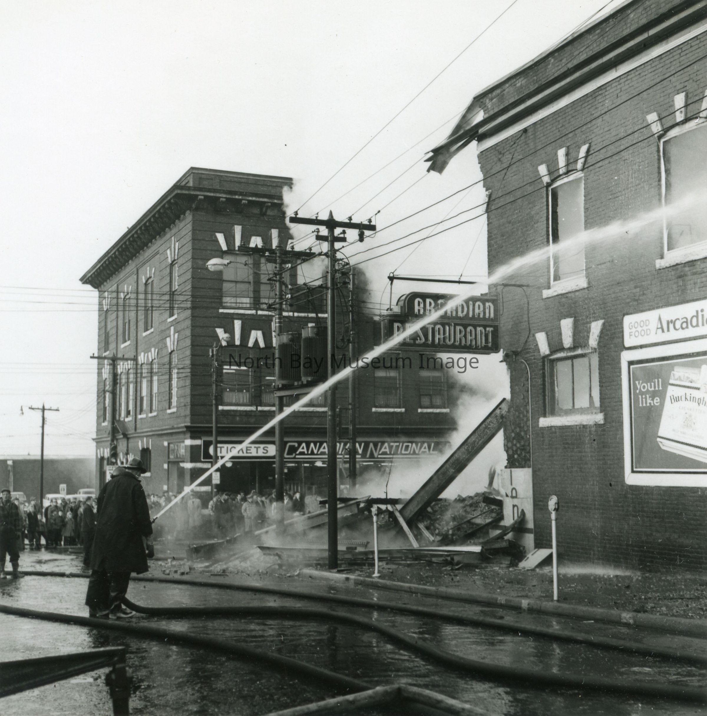 Photographer's Envelope (a) contains the photographs and negatives (b-z) of the Arcadan Restaurant and Sayas Drug Store fire in North Bay, on November 30, 1957.