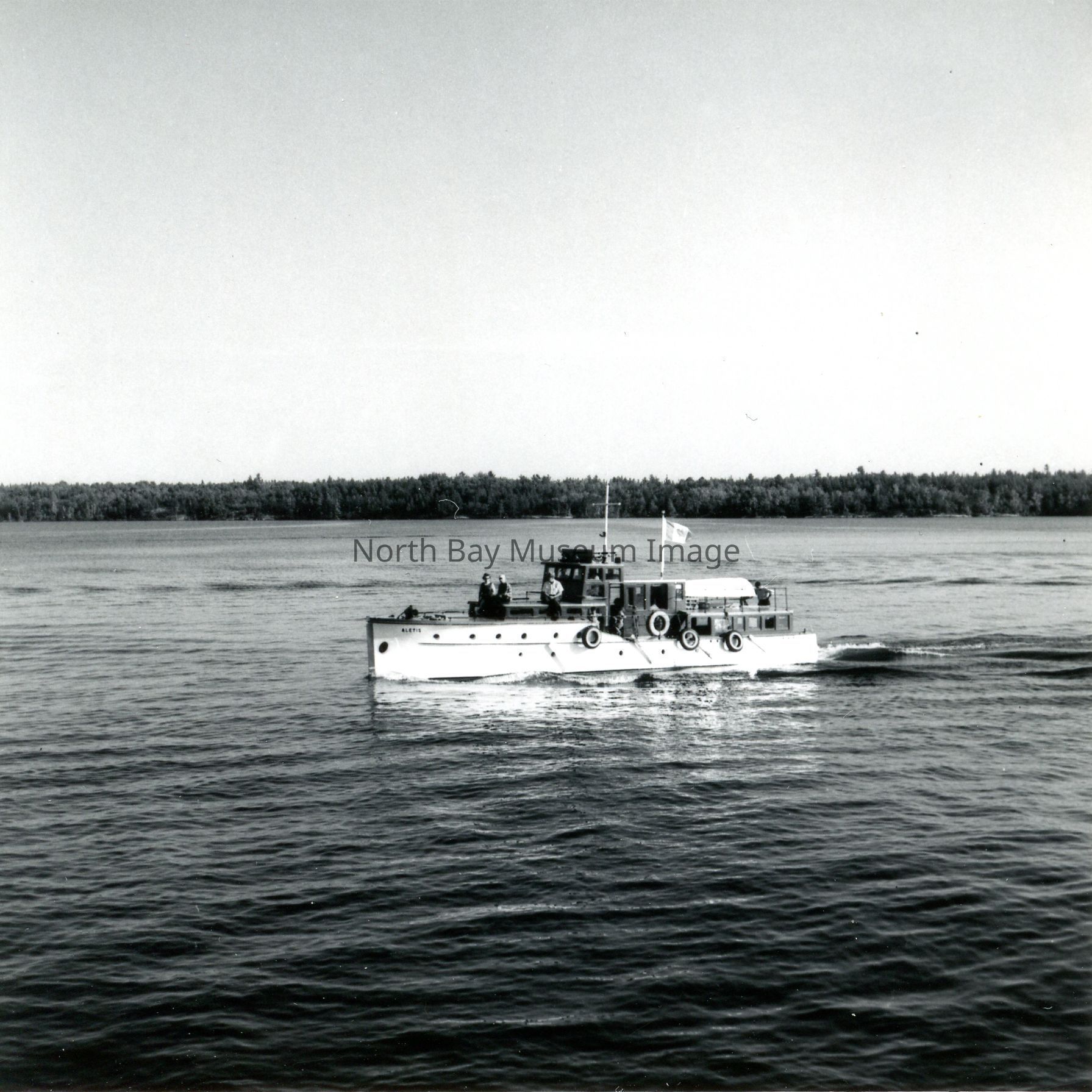 Photographers Envelopes (a-c) contains the photographs and negatives (d-n) of the French River The Aletis. The photos are taken from a boat. The images capture another boat the Aletis. Some of the images of the Aletis show that there is a small group of people on the boat enjoying the weather and sun of the day. This image is a part of the Forder Collection. List of publications for this image are listed on the front of the envelopes.Creator