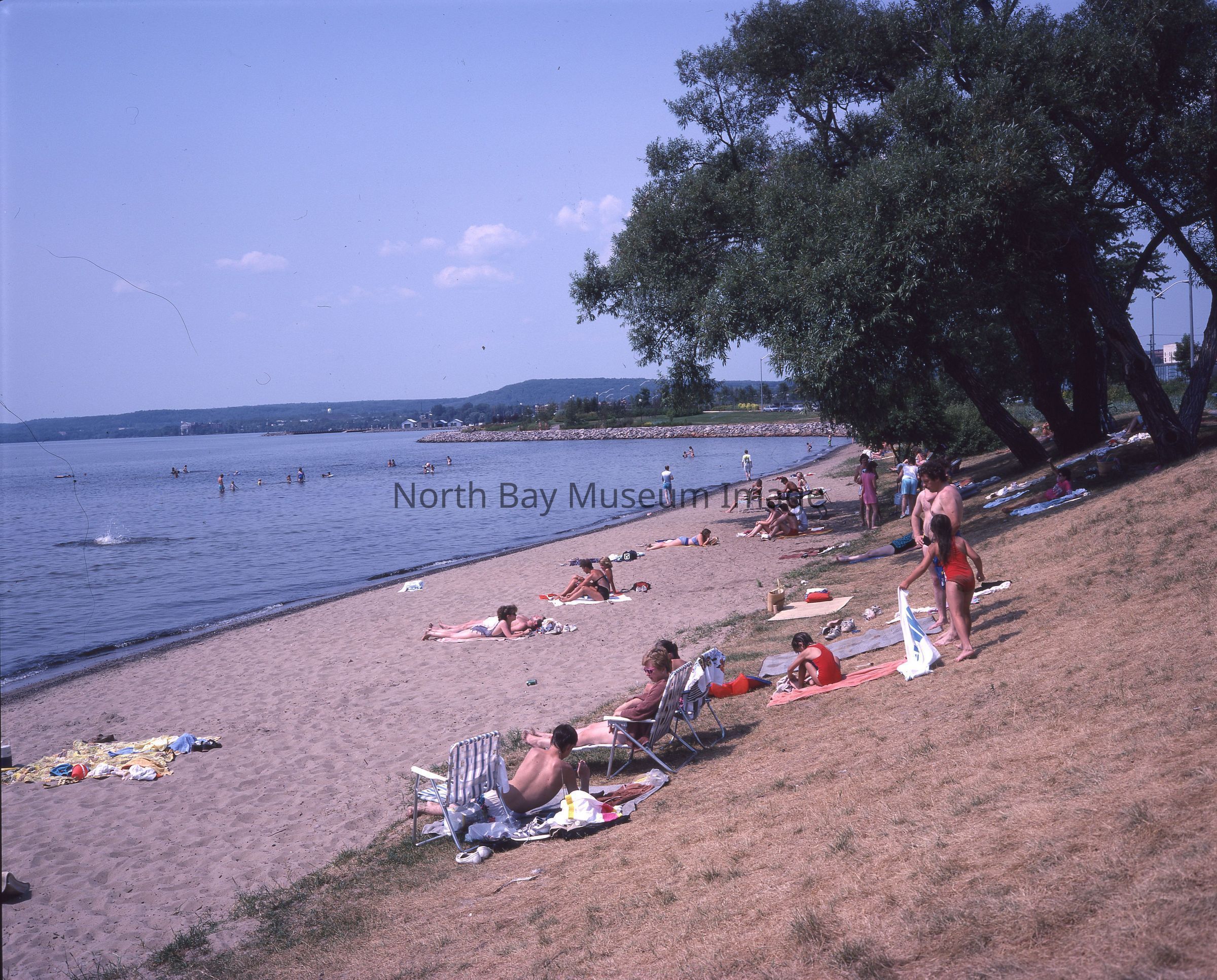 Envelope (a) containing negatives (b-d) of Golden Mile Beach in North Bay Ontario. Photos consist of people on the beach both swimming and sunbathing. A part of the Forder Collection.Creator