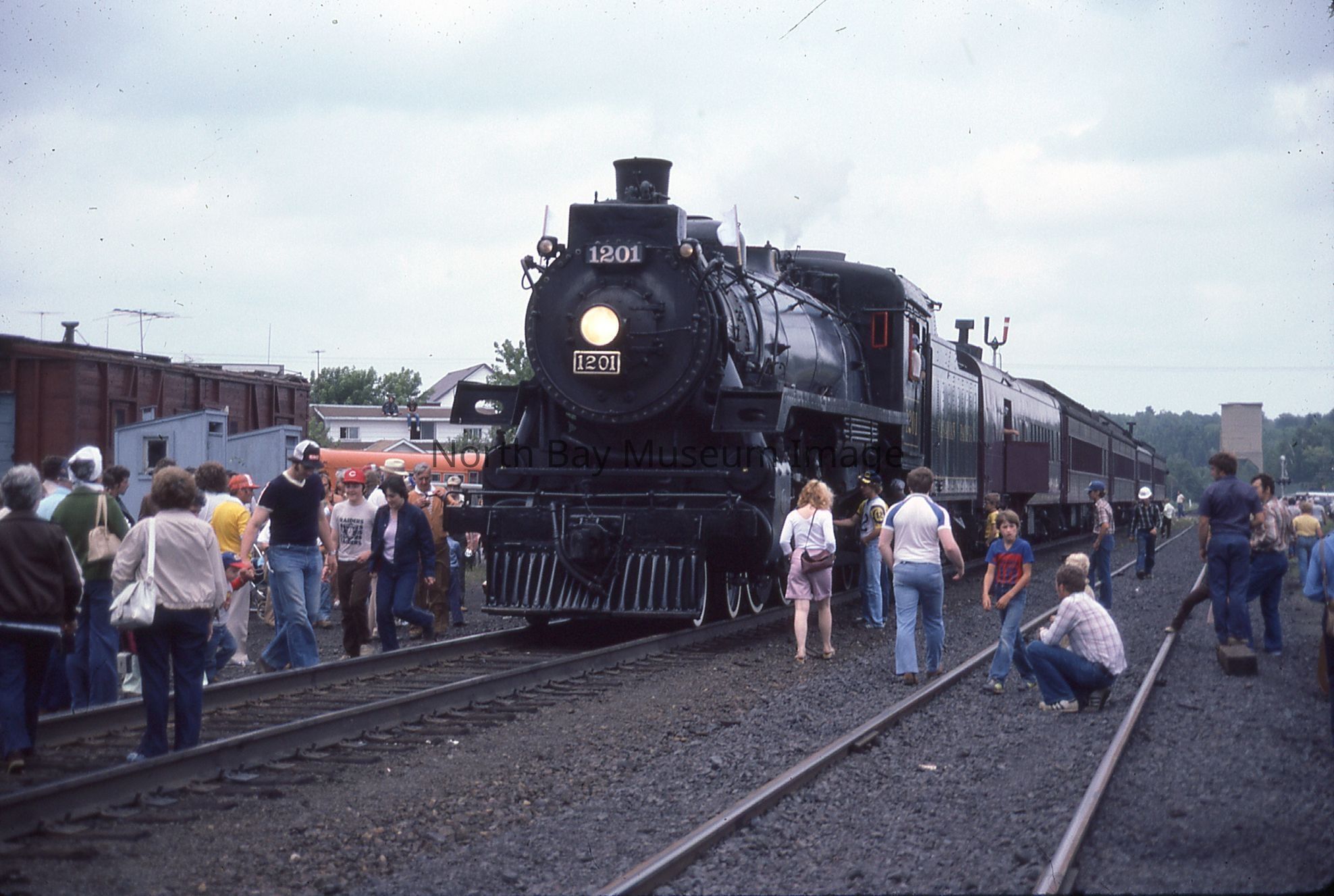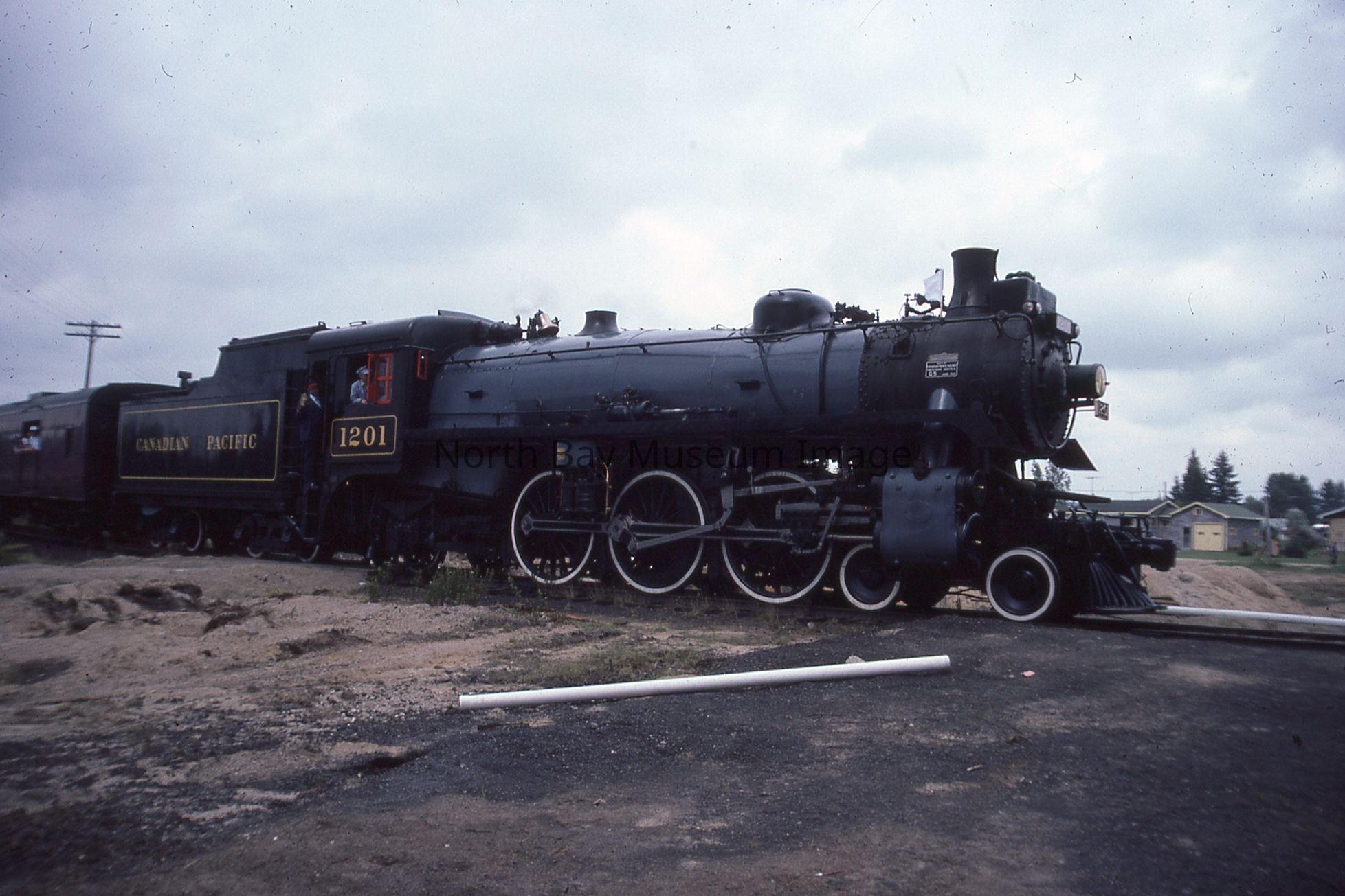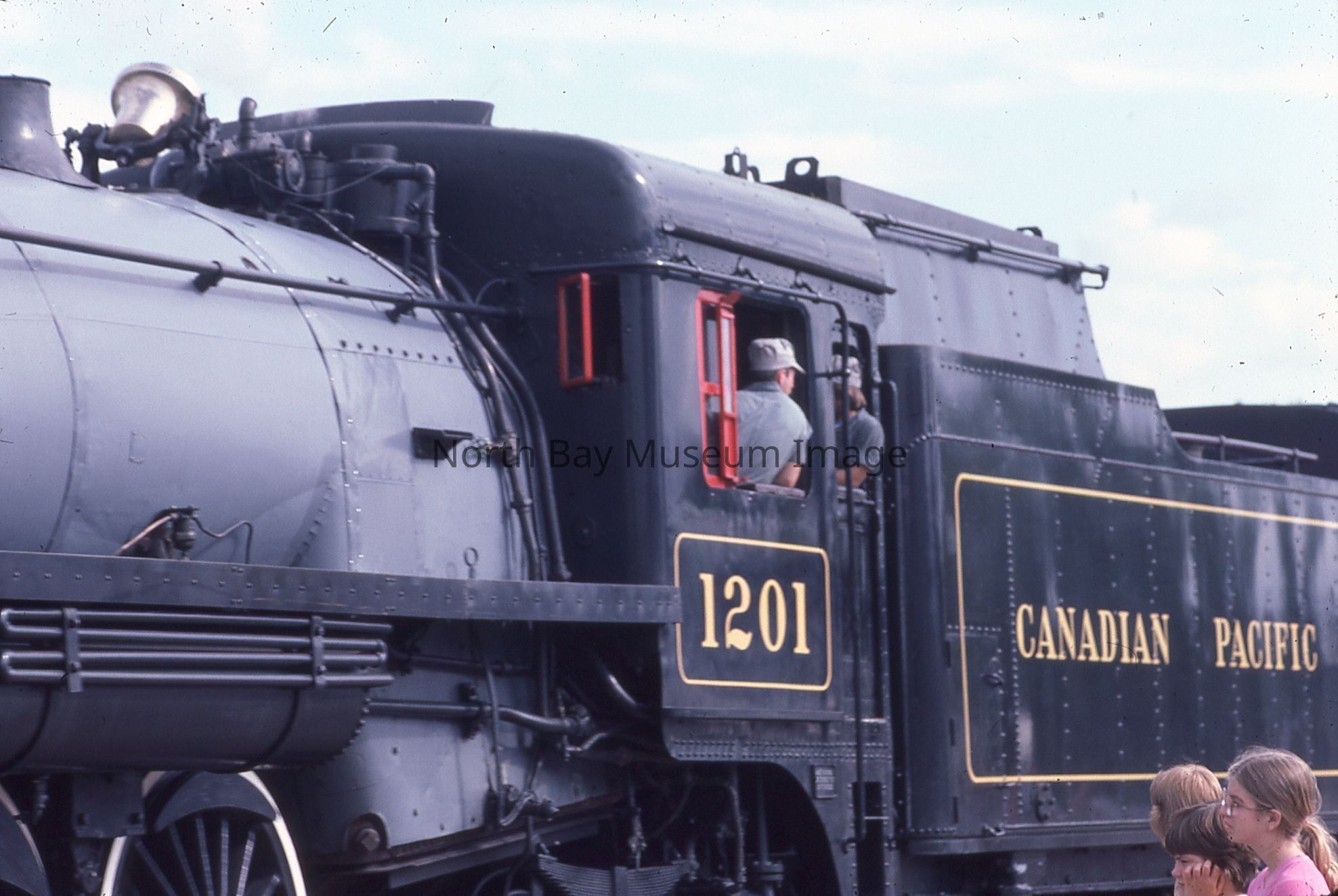 According to inscription on containing envelope, items relate to "CPR ENG # 1201 visits North Bay for '100 Years of Rail' Week, 1982", "40 - 35 mm Slides".