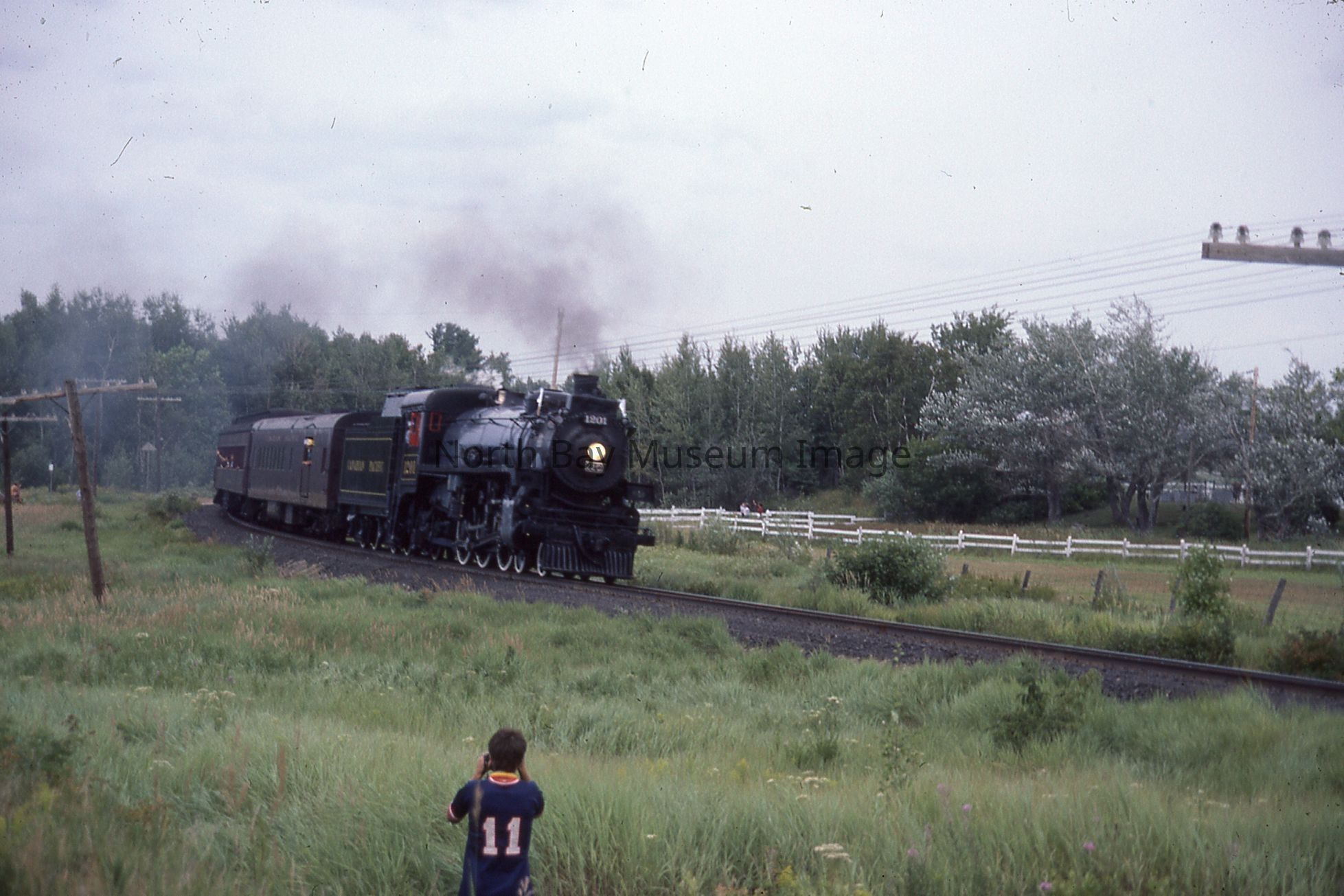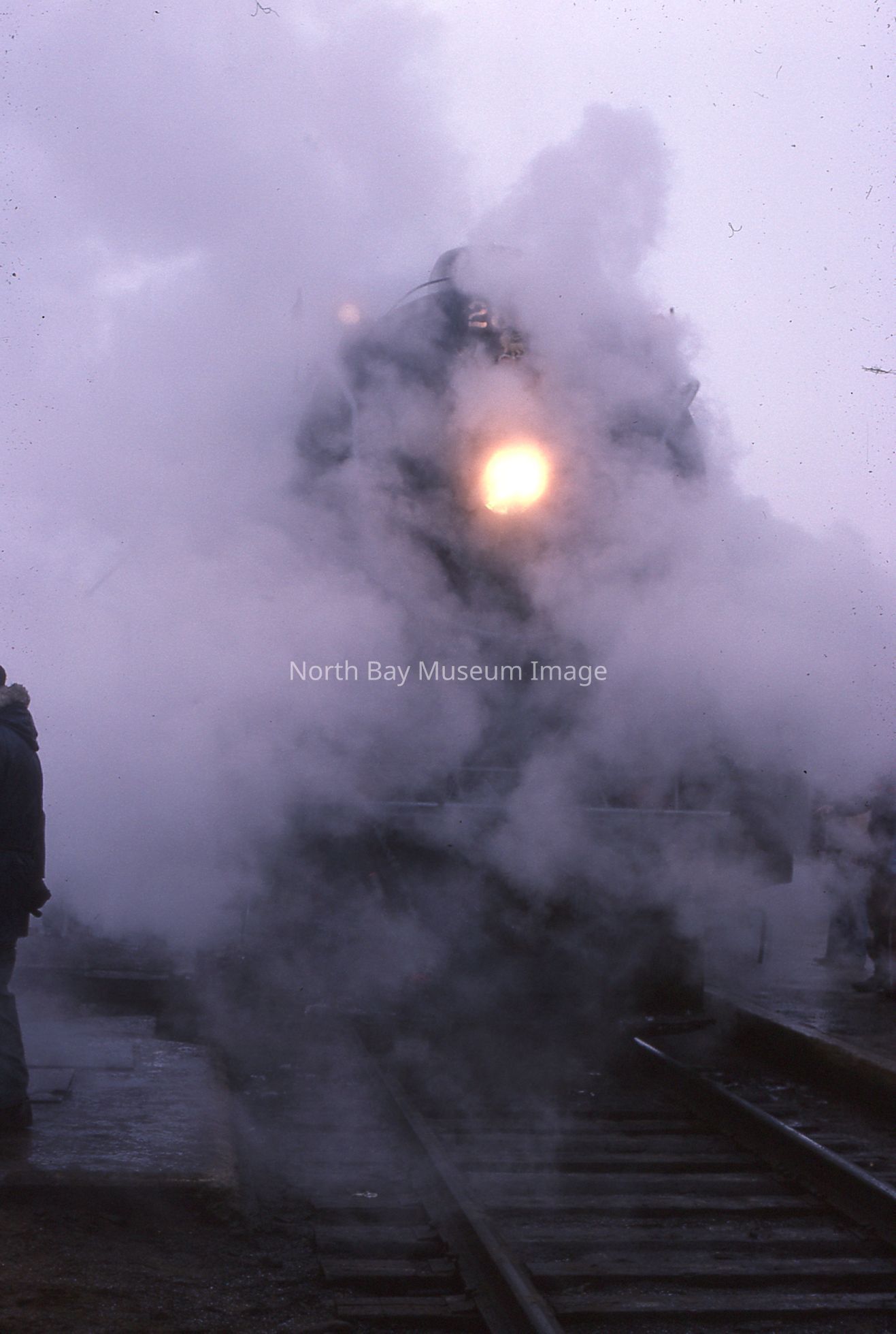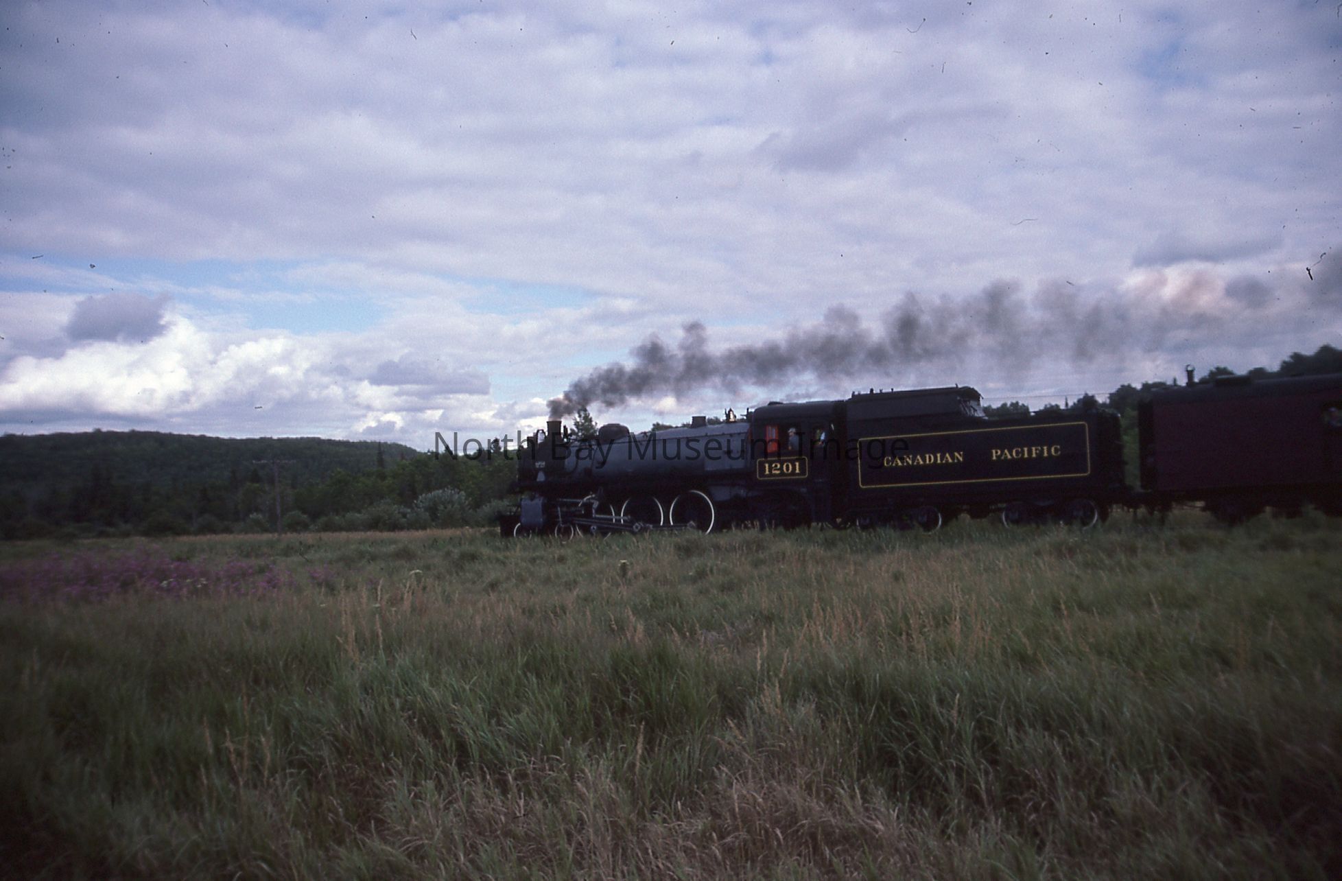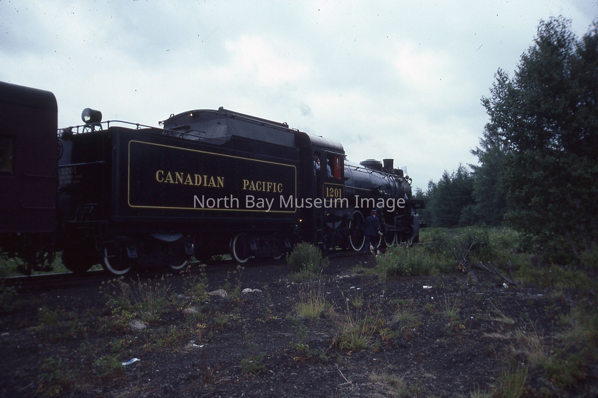 According to inscription on containing envelope, items relate to "CPR ENG # 1201 visits North Bay for '100 Years of Rail' Week, 1982", "40 - 35 mm Slides".