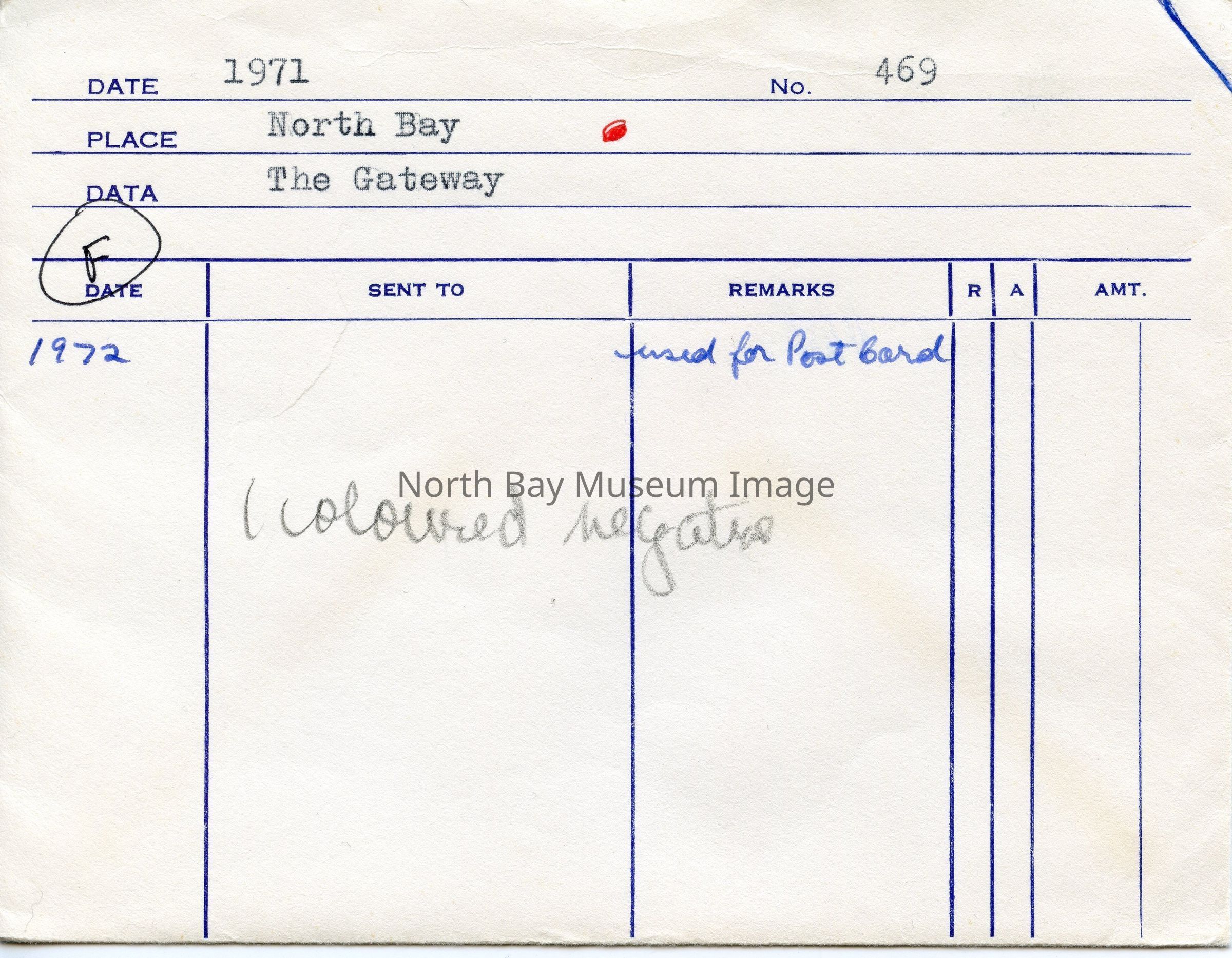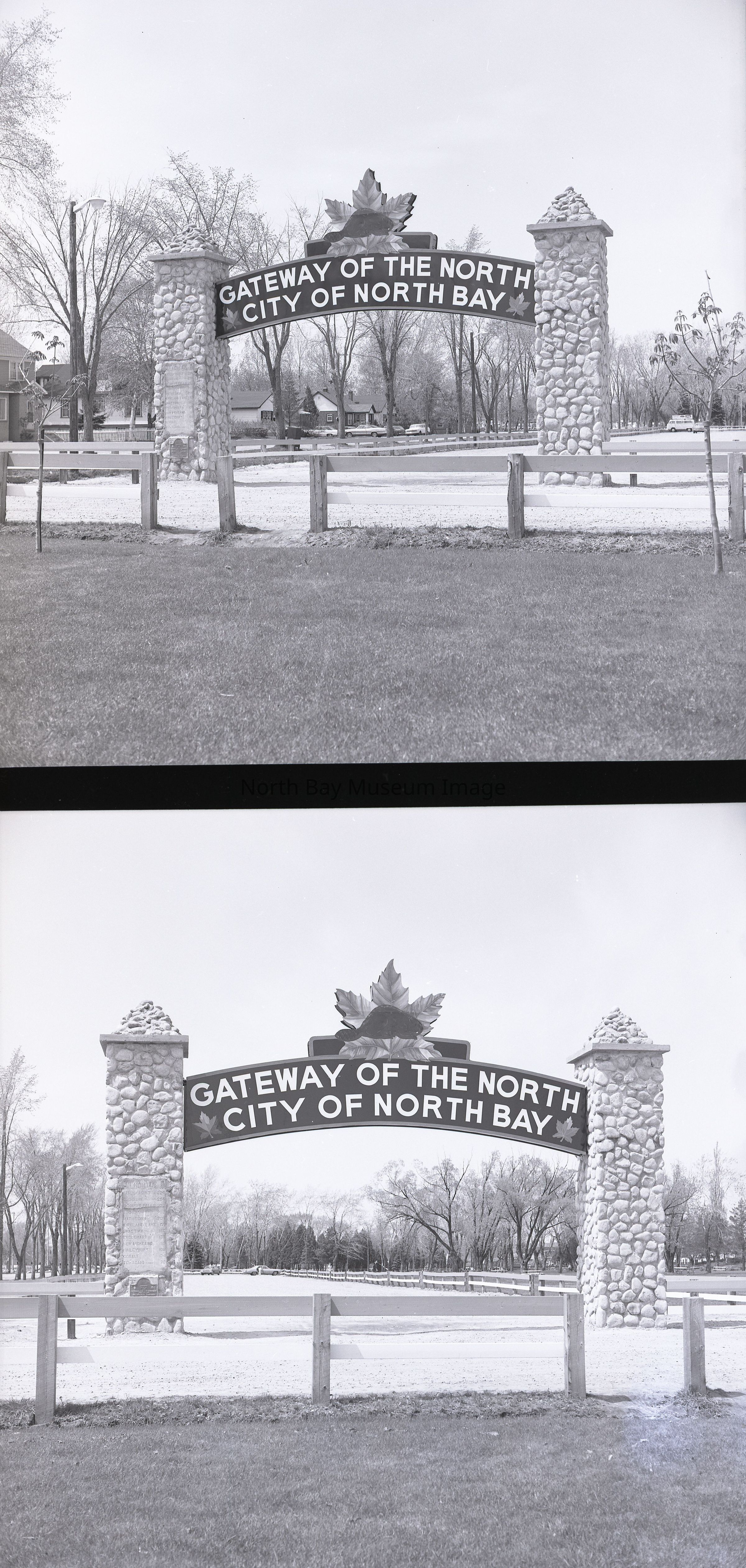 William Forder's original photographer's envelopes (a-d) with negatives of various views of the North Bay Gateway Arch in Lee Park. Places published are listed on the envelope.
