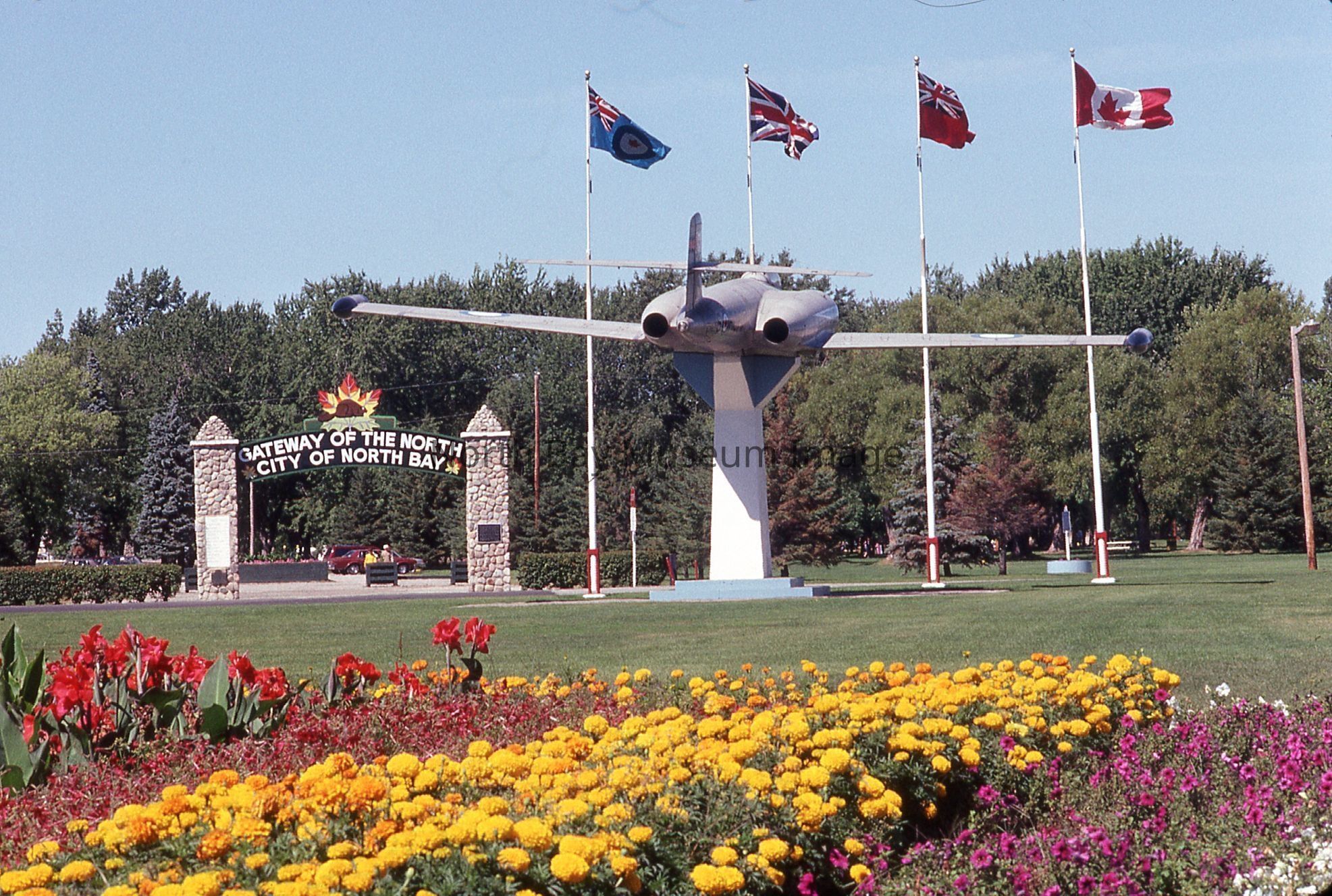 William Forder's original photographer's envelopes (a+b) with original number 90-023 and 90-021. Slides are of various views of the North Bay Gateway arch with flower beds and CF100 in view at Lee Park.Creator