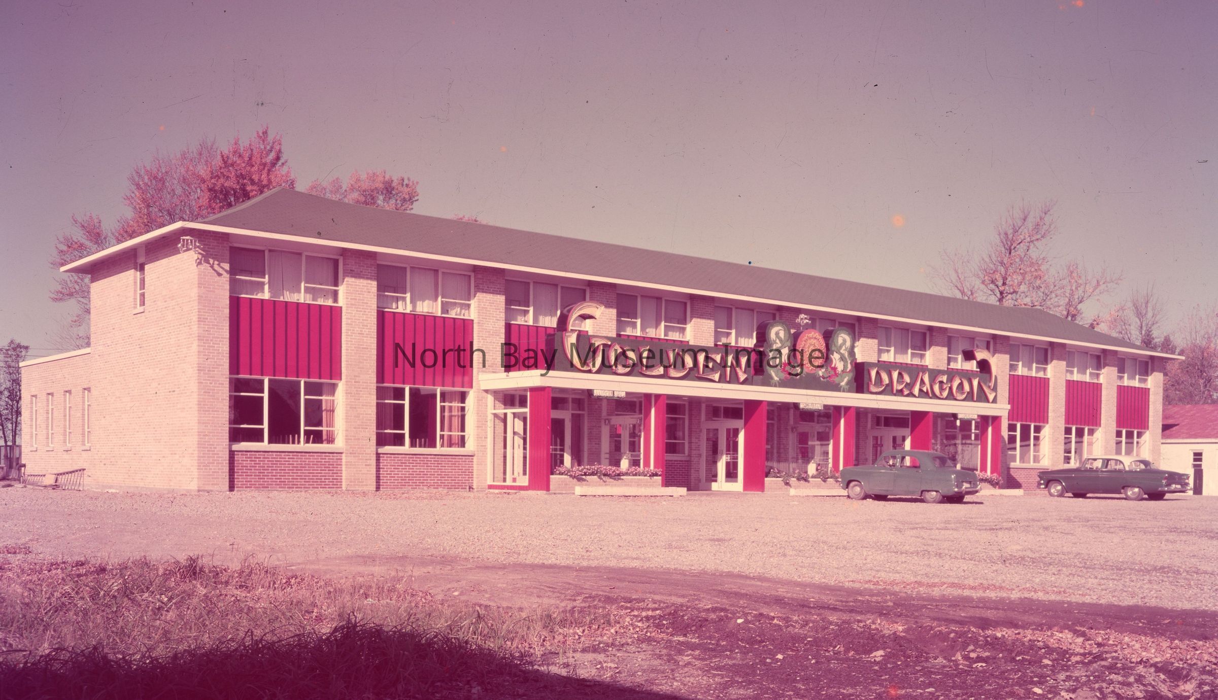 Images taken of businesses on Lakeshore in North Bay including the Glenwood Motel (a) and the Golden Dragon Restaurant.These photos are part of the Forder collection and were loose in the box, so no date is assigned.