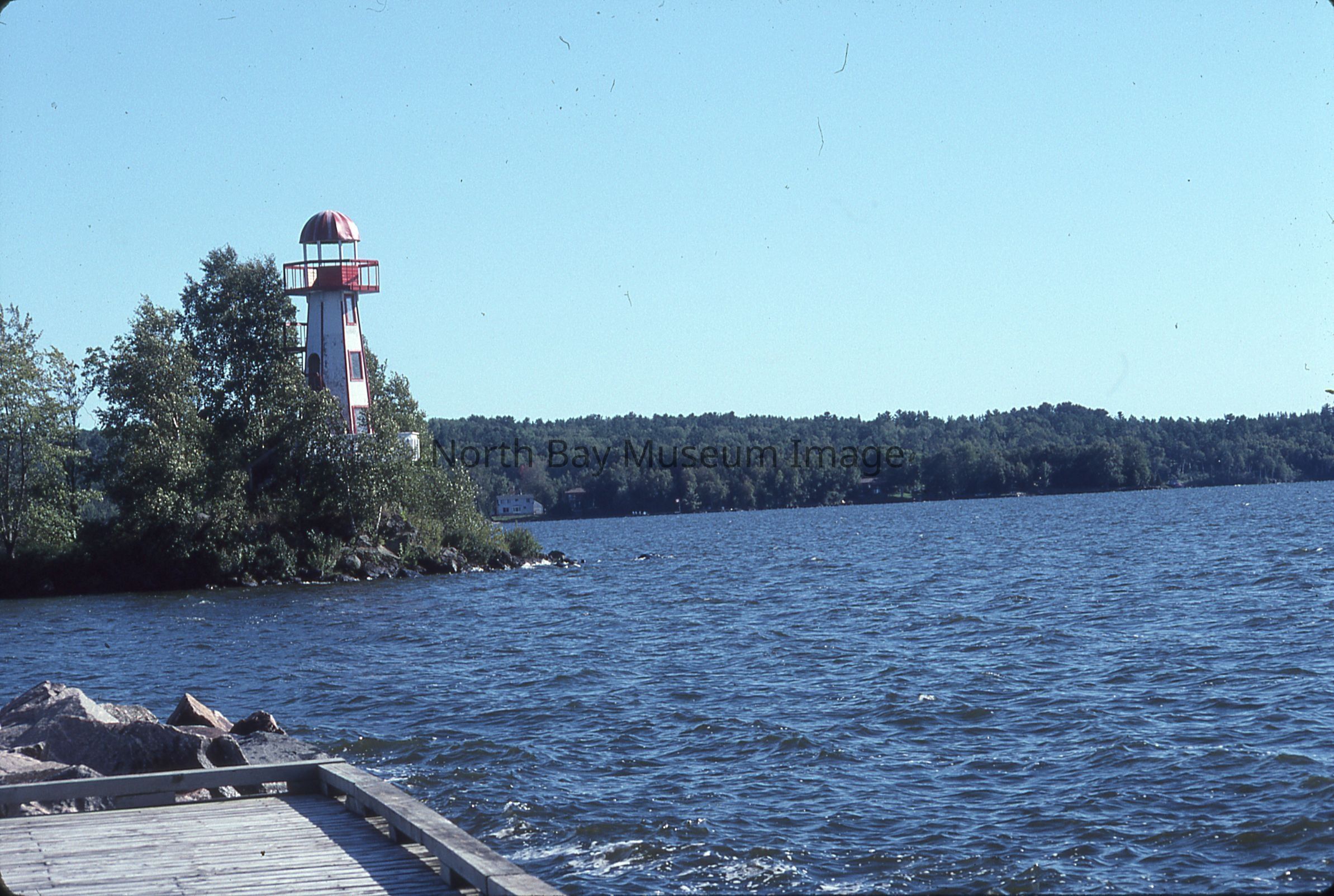 Envelope (a) containing photo and negative of lighthouse in Callander on Lake Nipissing. Forder original 95-029a-c.