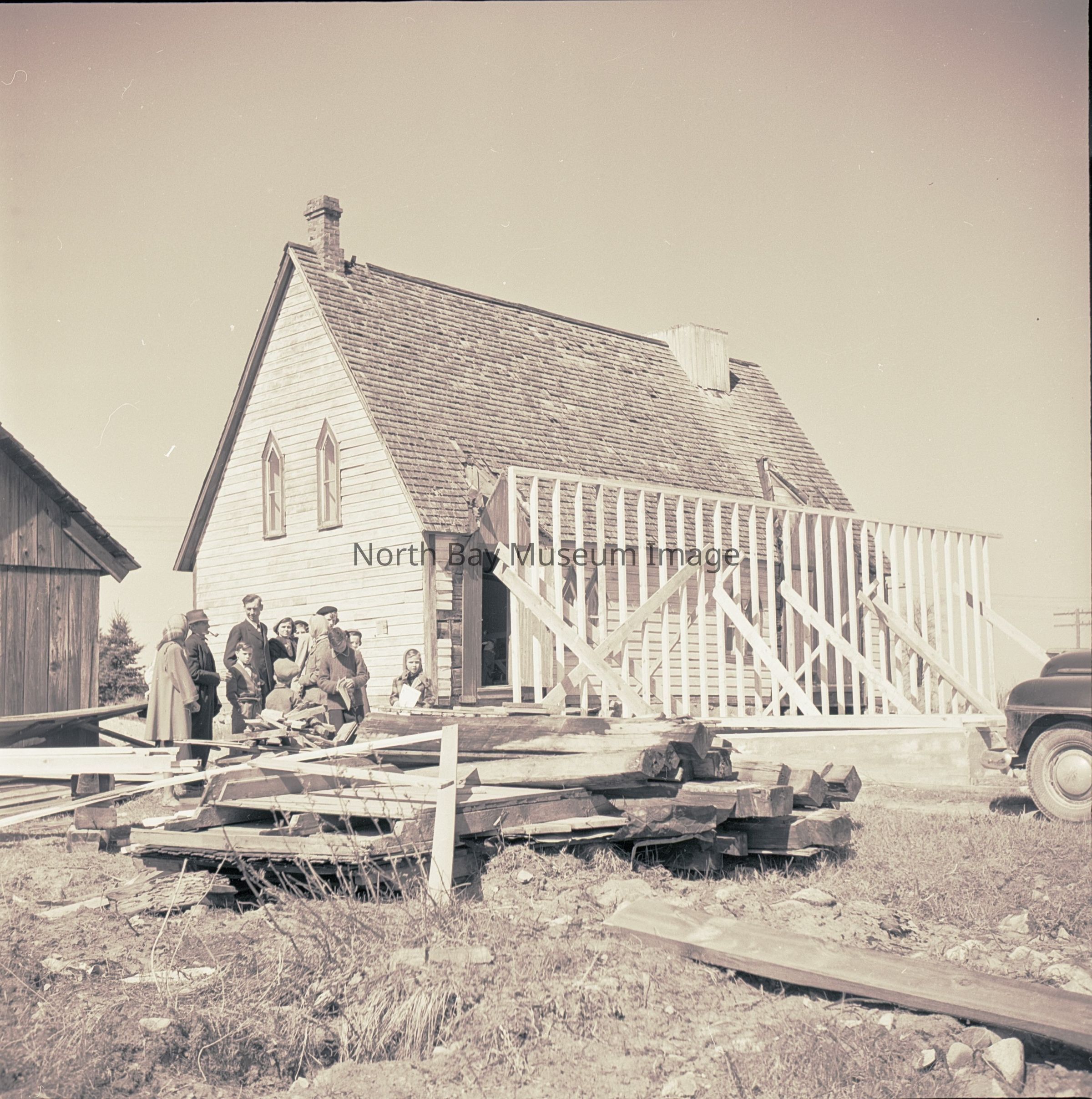 - Print (c) belongs with negative (e). Shows a group of people standing by the church. Construction is underway on a secondary structure.