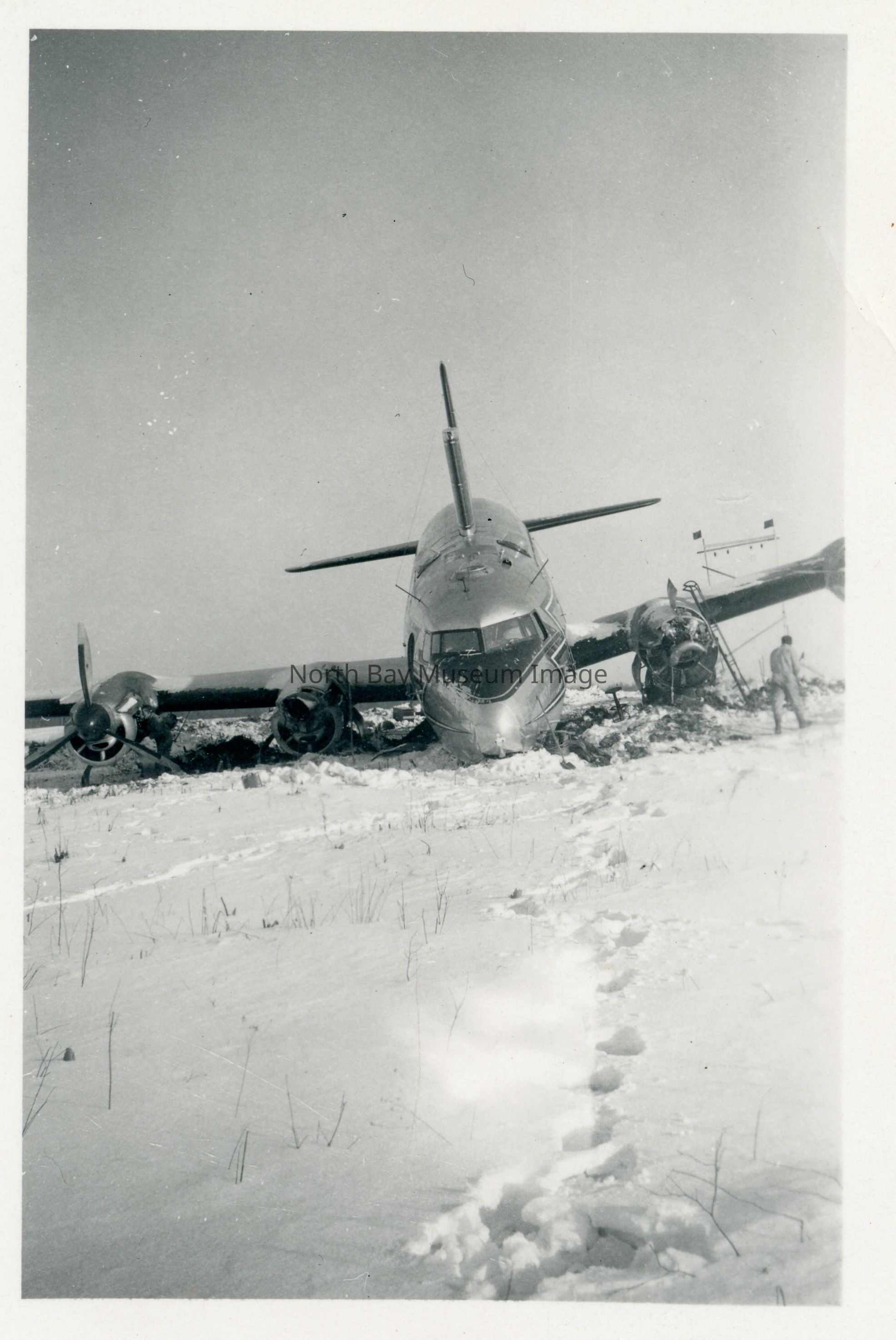 a-c- Photographs of the RCAF C54 North Star airplane the "Rockcliffe Ice Wagon" from January 1951 at North Bay airport