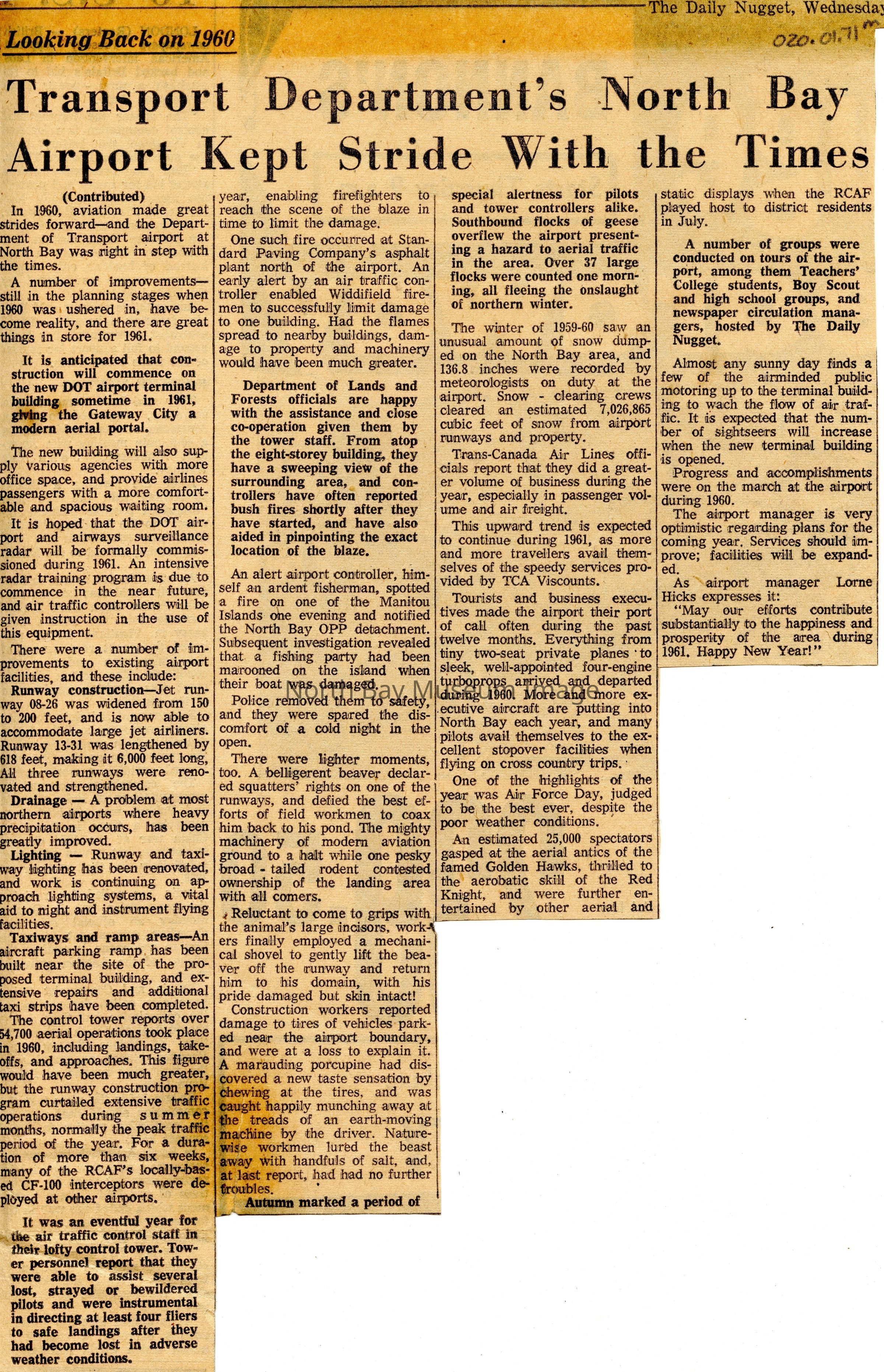 The North Bay Nugget Articles Connected to the North Bay Airport