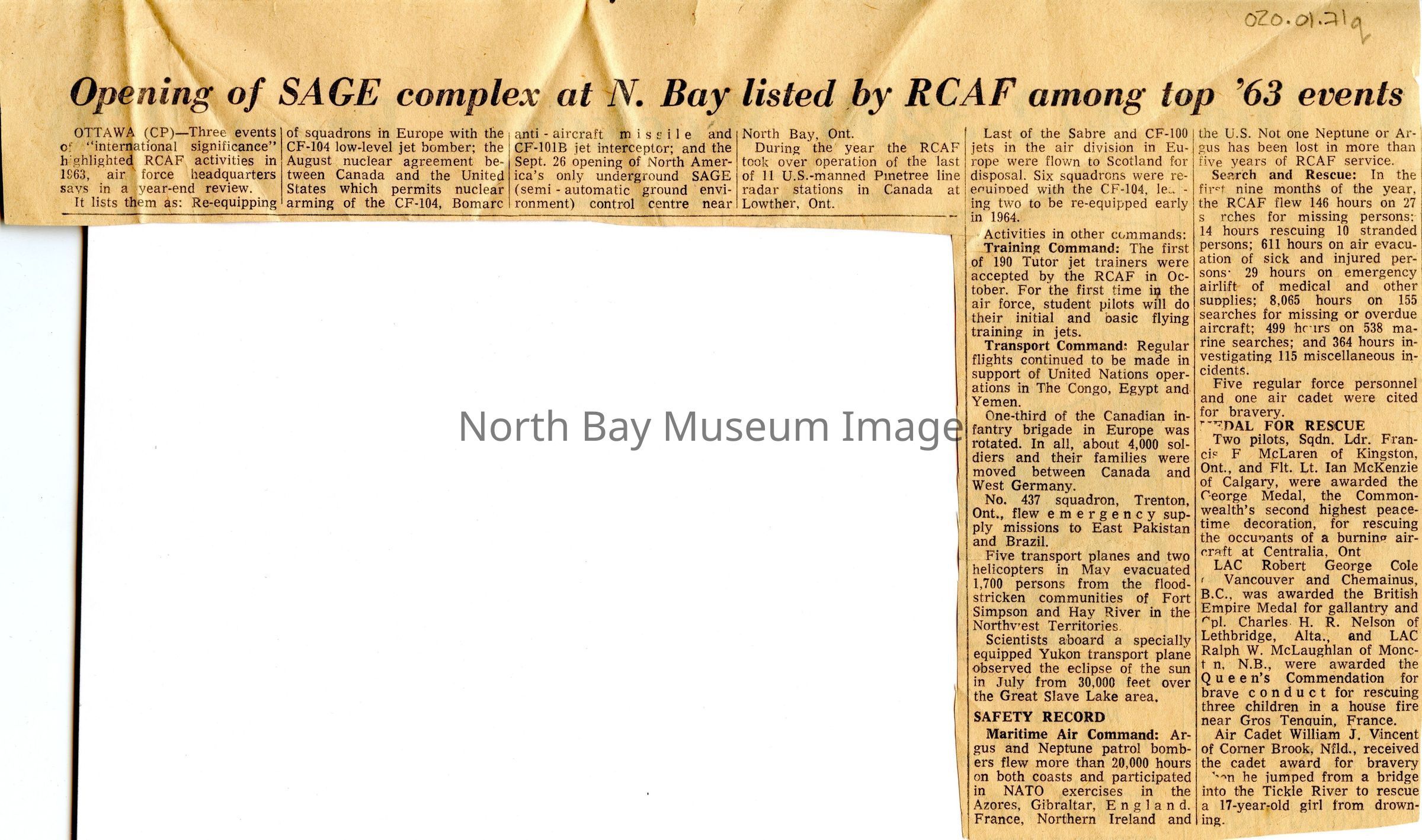 Collection of North Bay Nuggets connected to the North Bay airport. Articles on various topics, dating to 1960s.