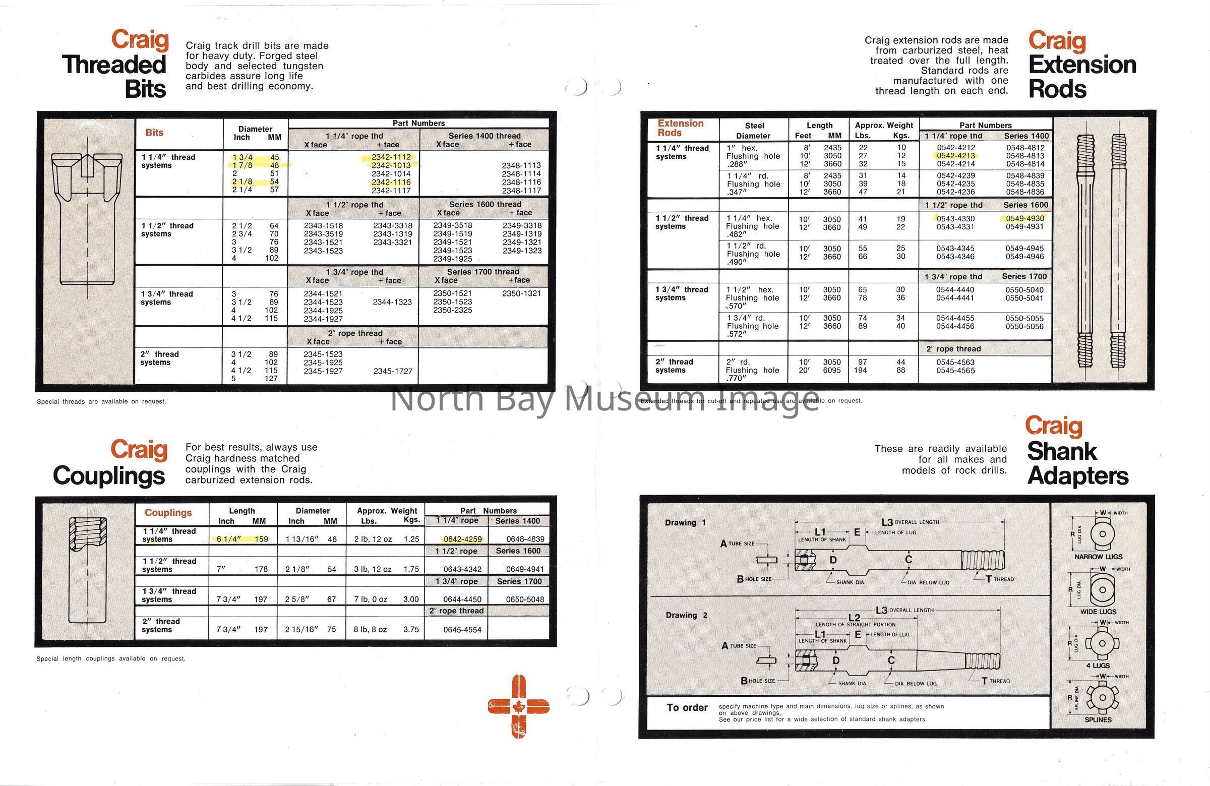 Various booklets and periodicals. Subjects include: "Craig Track Drilling Accessories", "Drifting and Tunneling", "Copperhead Bits and Drill Steels", "Carbide Bits", "KENROC", "Catalog", "PRODUCTS FOR MINING QUARRYING and CONSTRUCTION", "JOY CRAIG Roll-Away Raise Machine".Creator