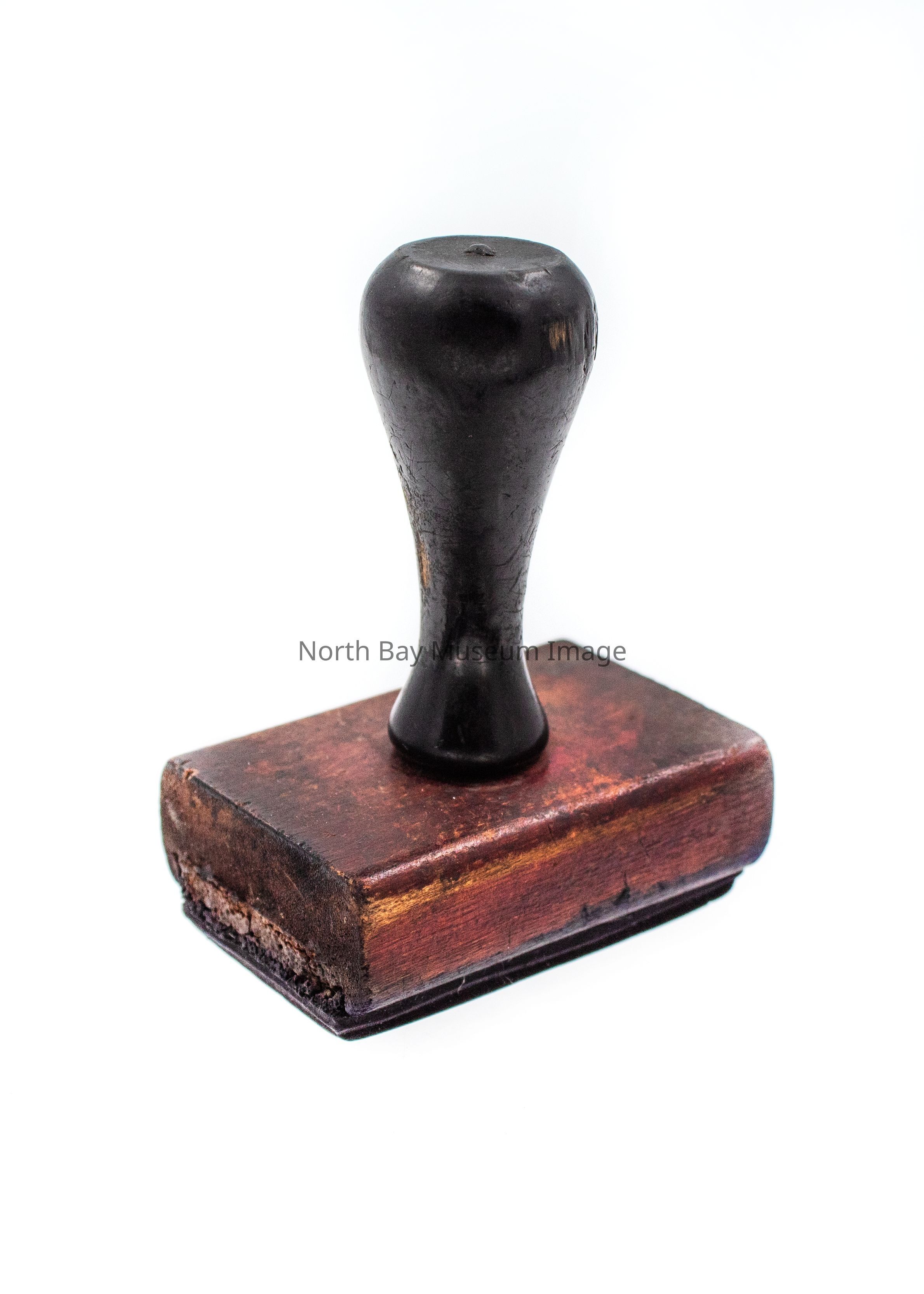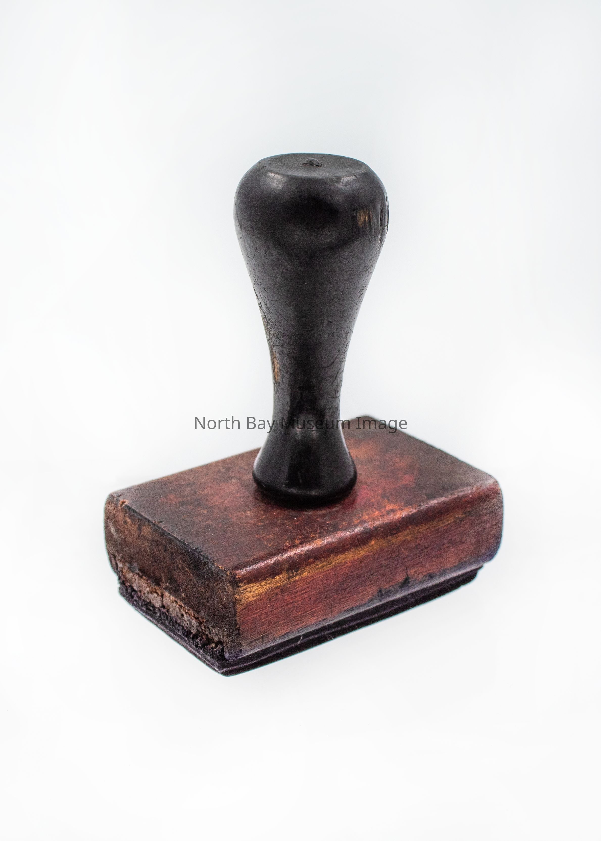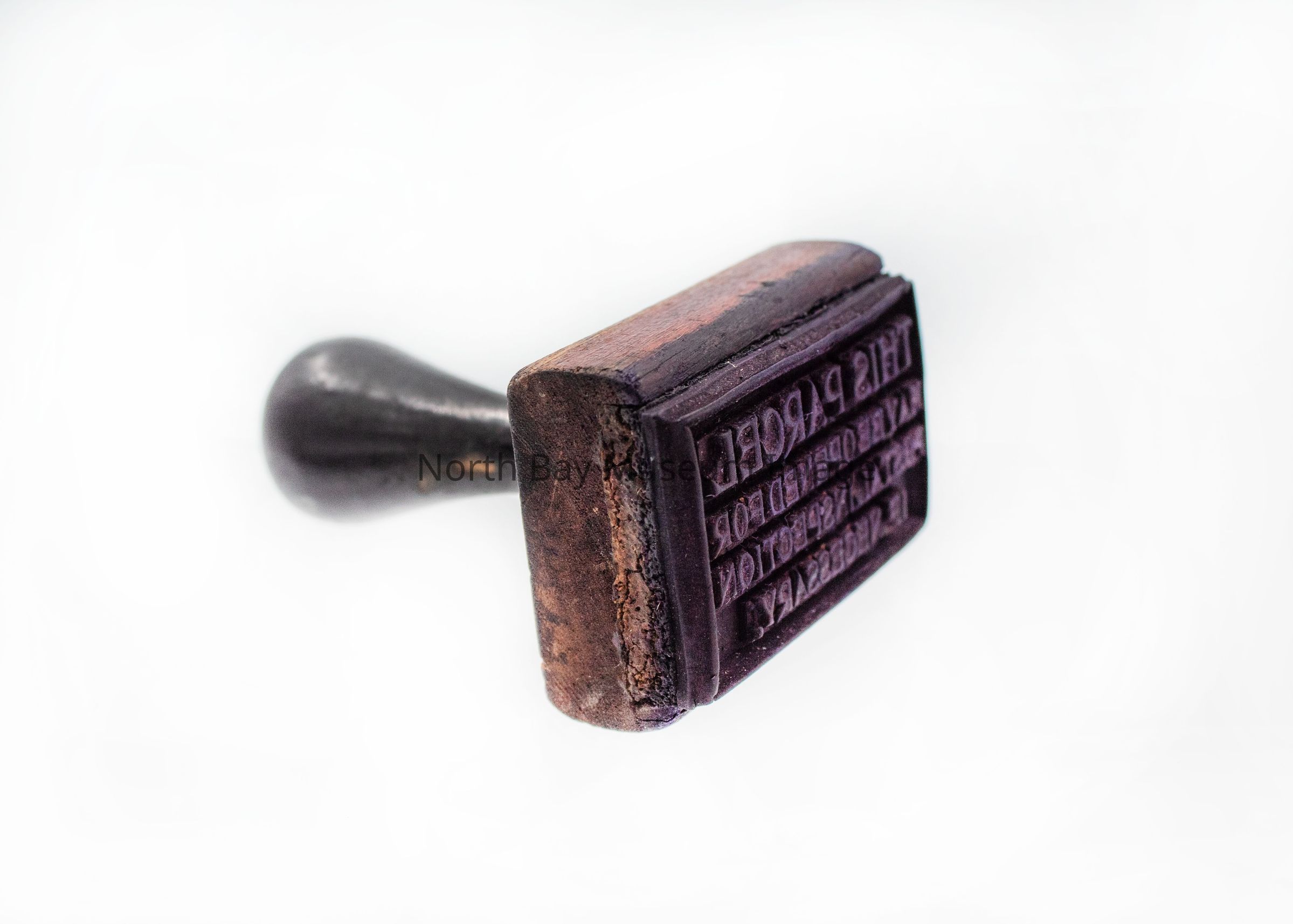 rubber stamp, black wooden handle, words for print: "This Parcel May Be Opened For Postal Inspection If Necessary".