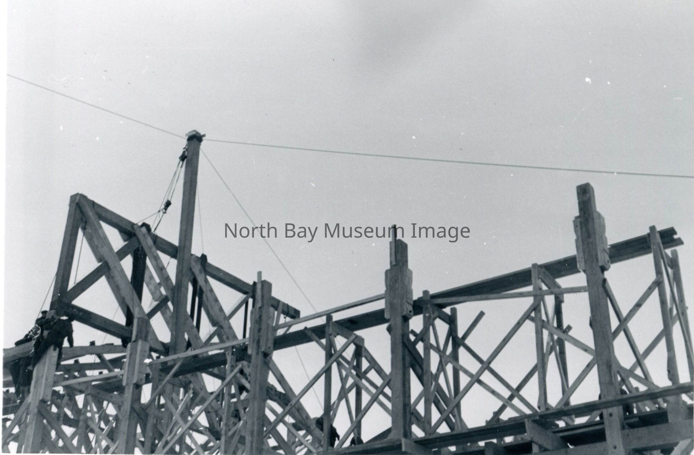 -Shows top of the structure. -On back of photo written Feb. 15-22nd/SV. -Nothing written on front. -Black and white. -9 cm x 12.5 cm.