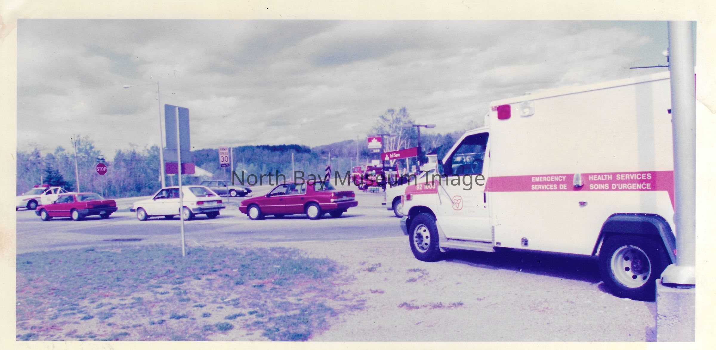022.01.02f: Colour photo of ambulance in front of Petro Canada station.Date(s) of Creation