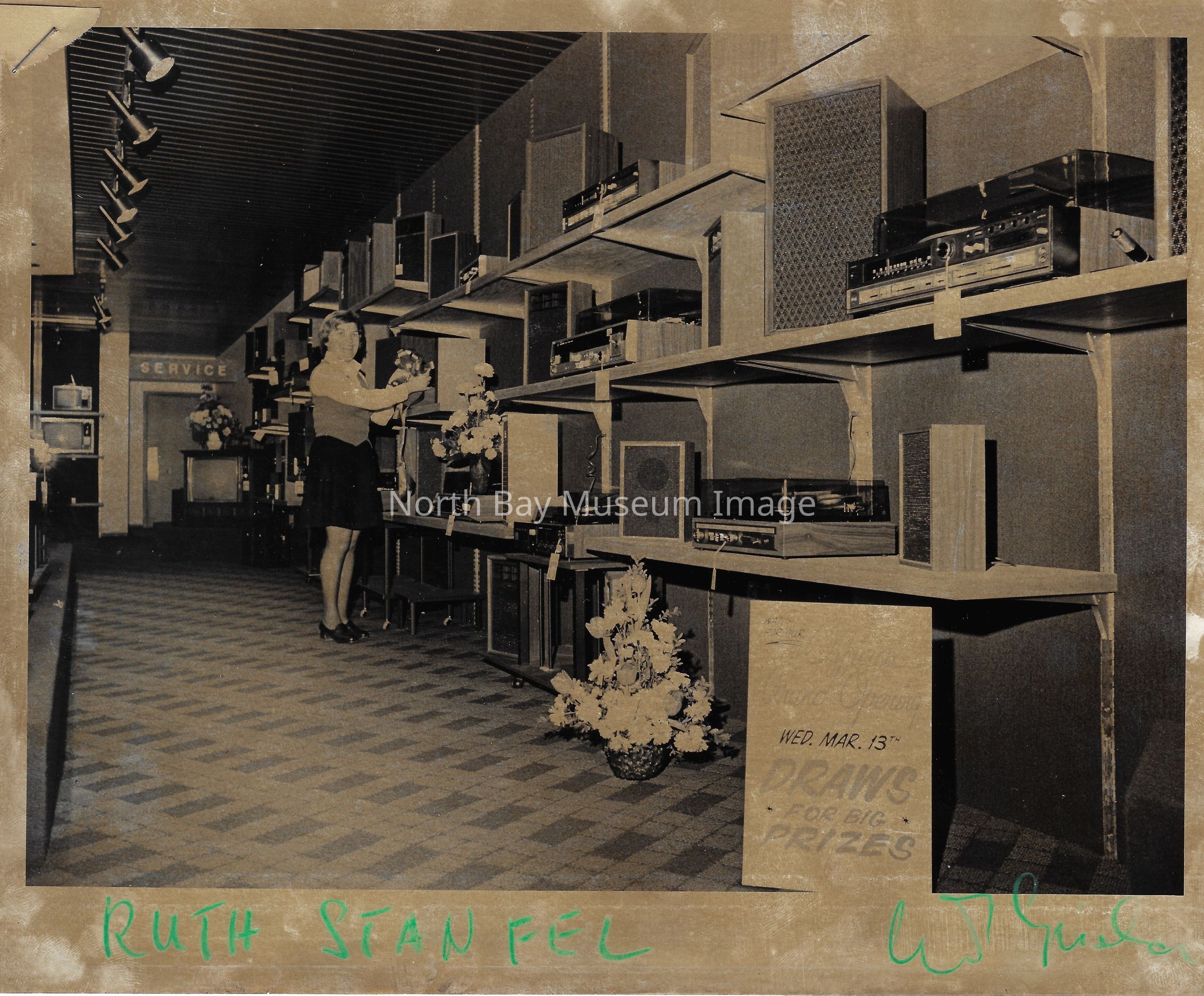 Photos of Ruth Stanfel and Ken Fraser next to audio systems at North Bay TV and Audio.