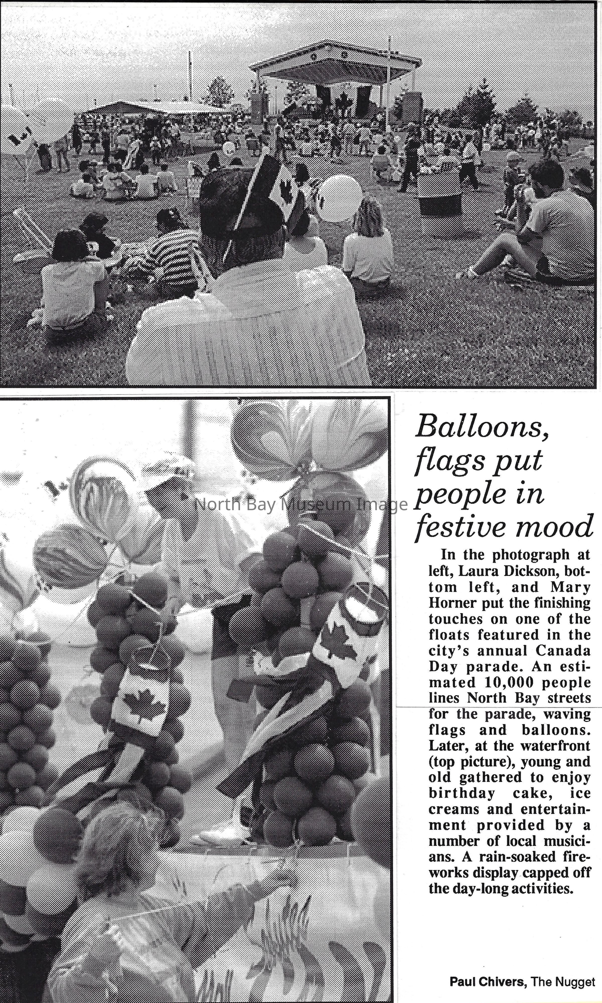 022.01.07a-c: Newspaper. Photos of Canada Day celebrations 1994. 022.01.07d-: Photos of fireworks and parade. 022.01.07e: Map of parade route.