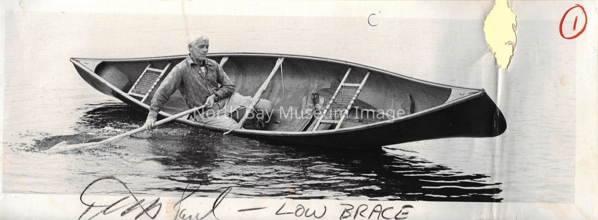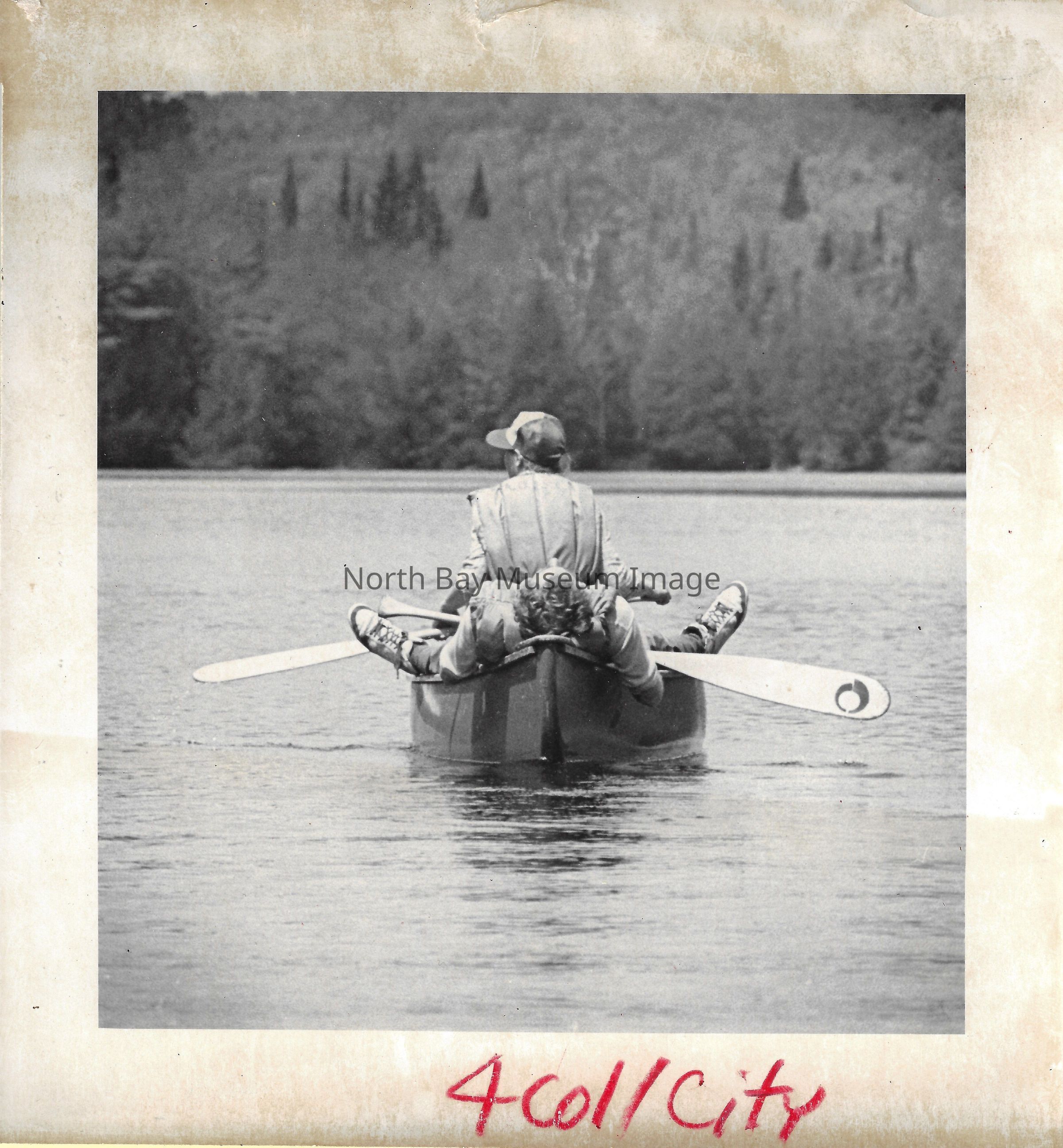 Photos of canoeists in rapids. 022.01.09l: Newspaper photos of Don McLeod canoeing on Chippewa Creek and portaging across Fisher Street.