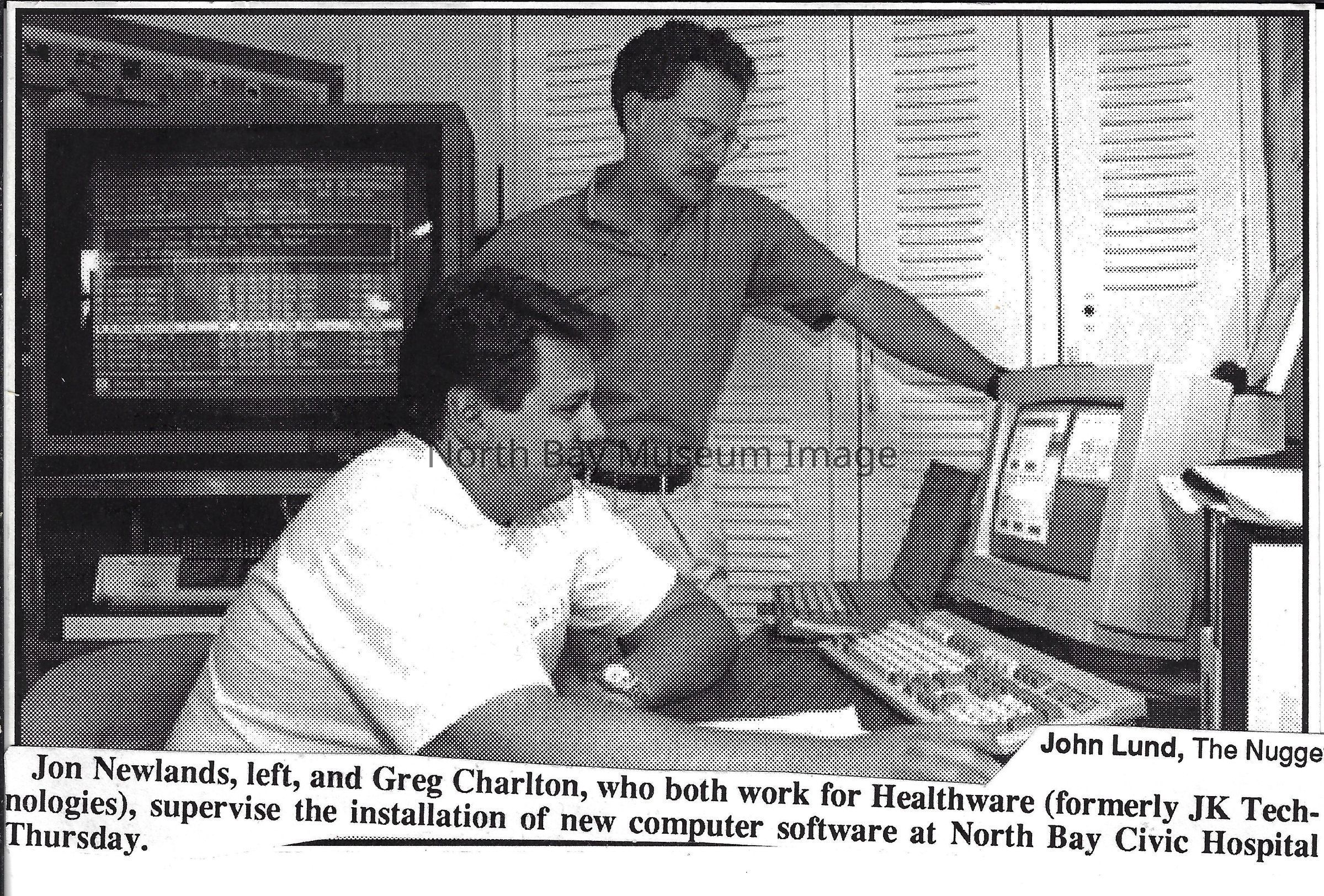 022.01.16n: Newspaper. Jon Newlands and Greg Charlton fron Healthware installing new computer software for the hospital.Date(s) of Creation