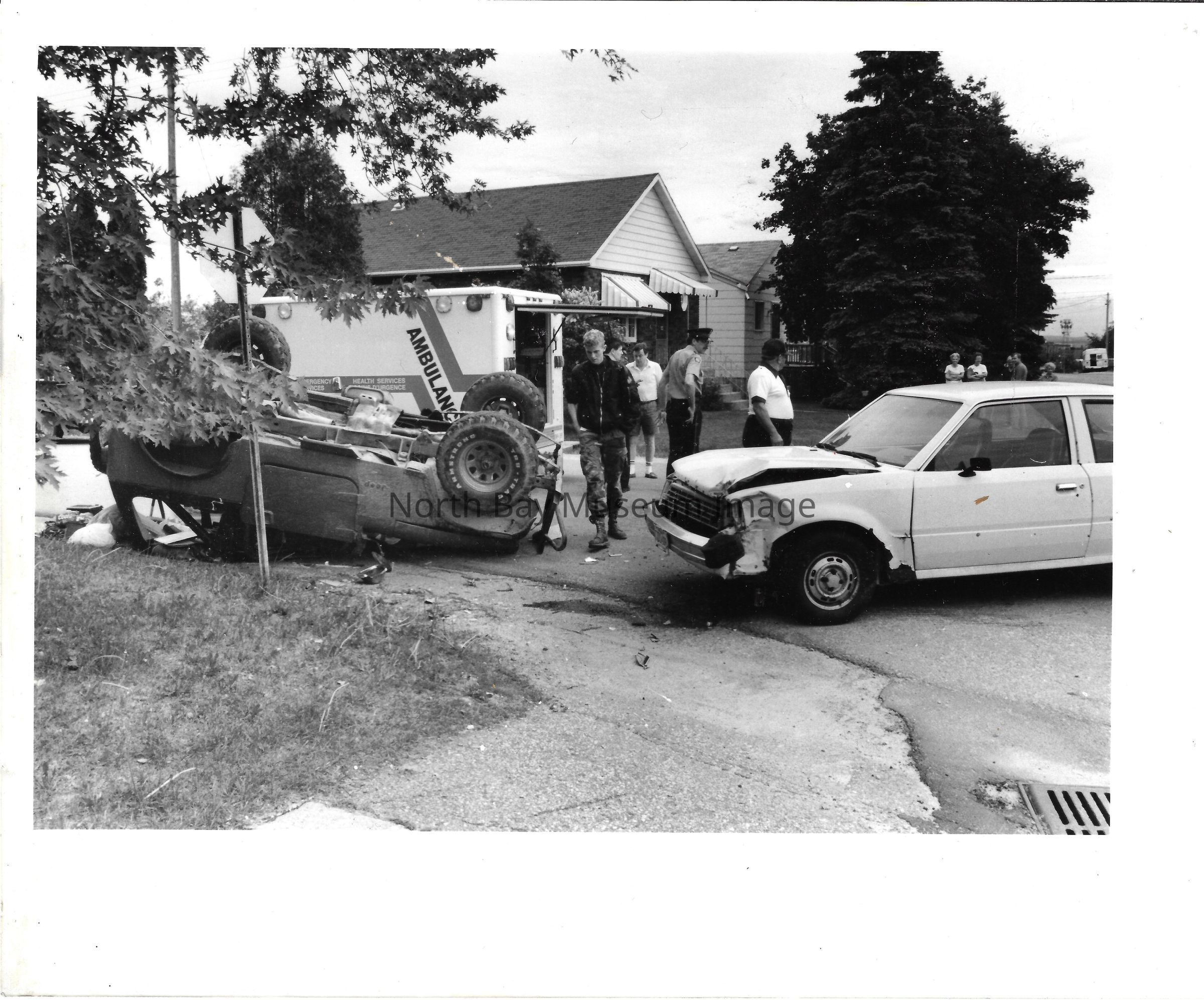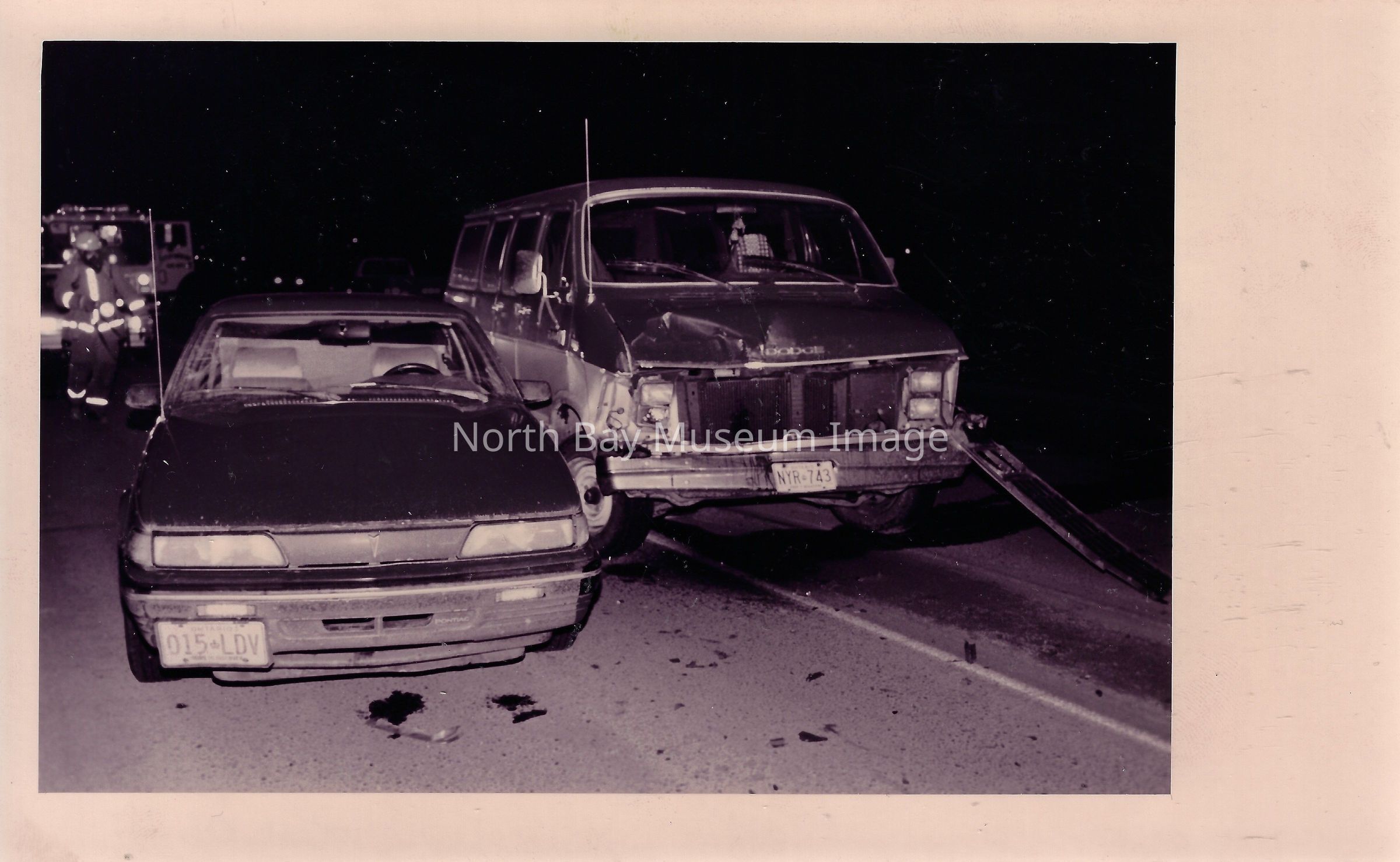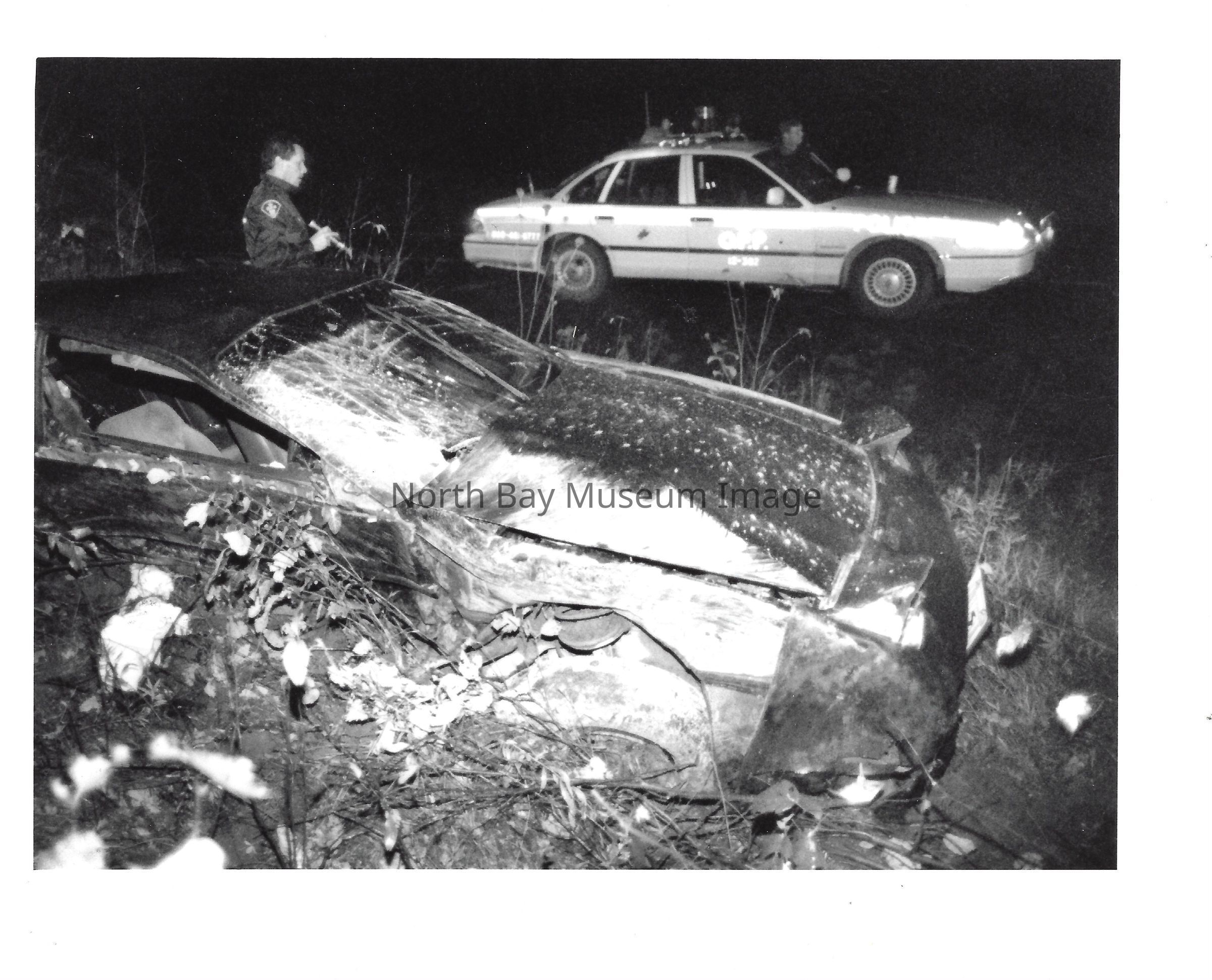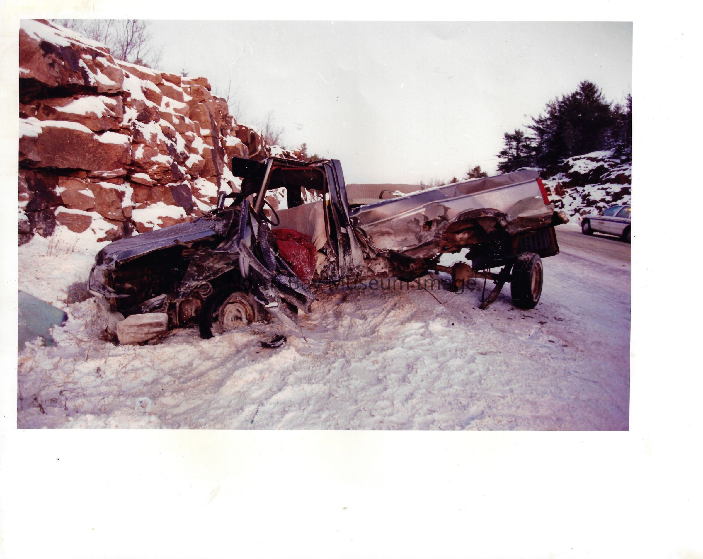 Photos and newspaper clipping or car, transport truck and plane crashes.