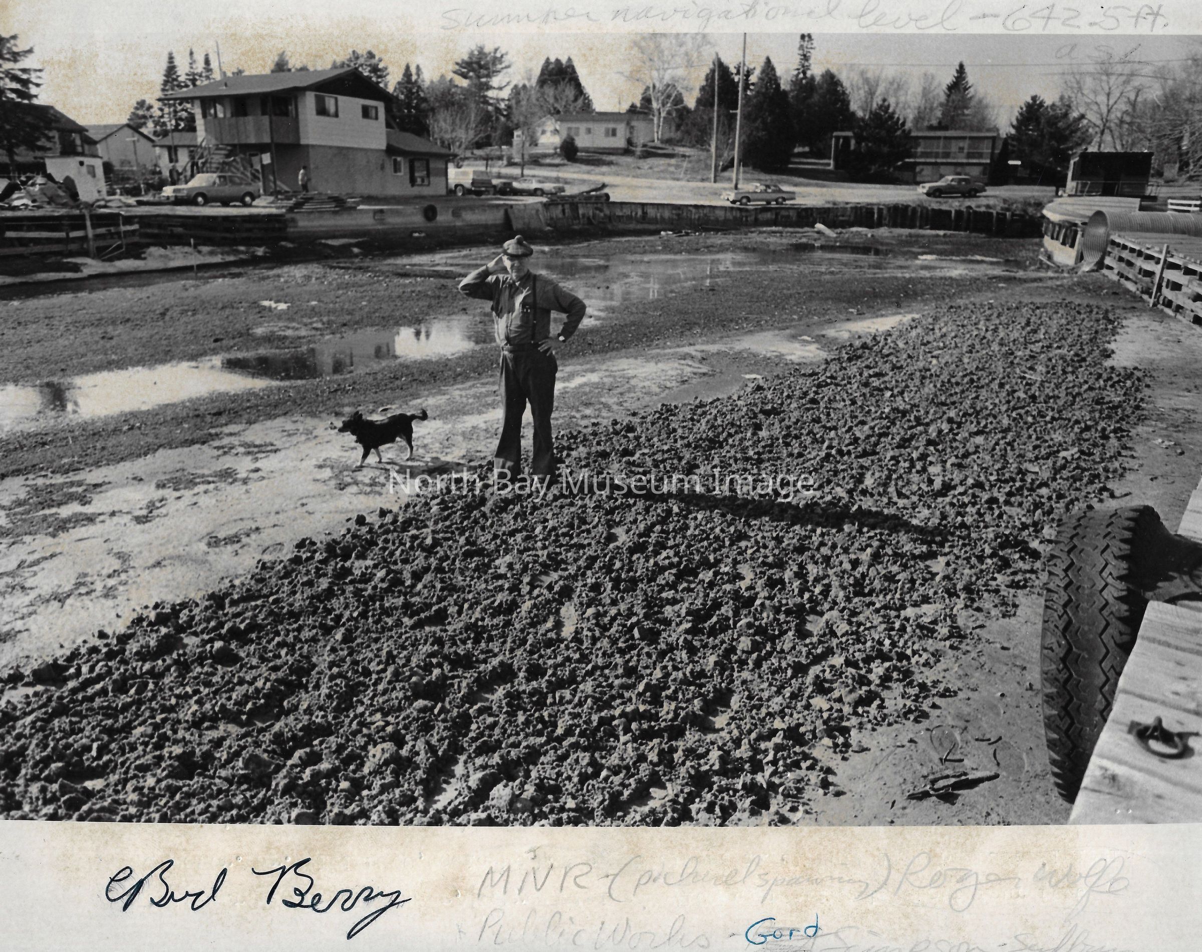 Inscription: If it were a normal summer, Aubrey Alkins would be standing in about four feet of water. Mr. Atkins 80, said he has spent almost all his life on Lake Nipissing and can't remember a time when the water was as low as it is at th present time. This shot was taken from the marina dock in Callander.Date(s) of Creation