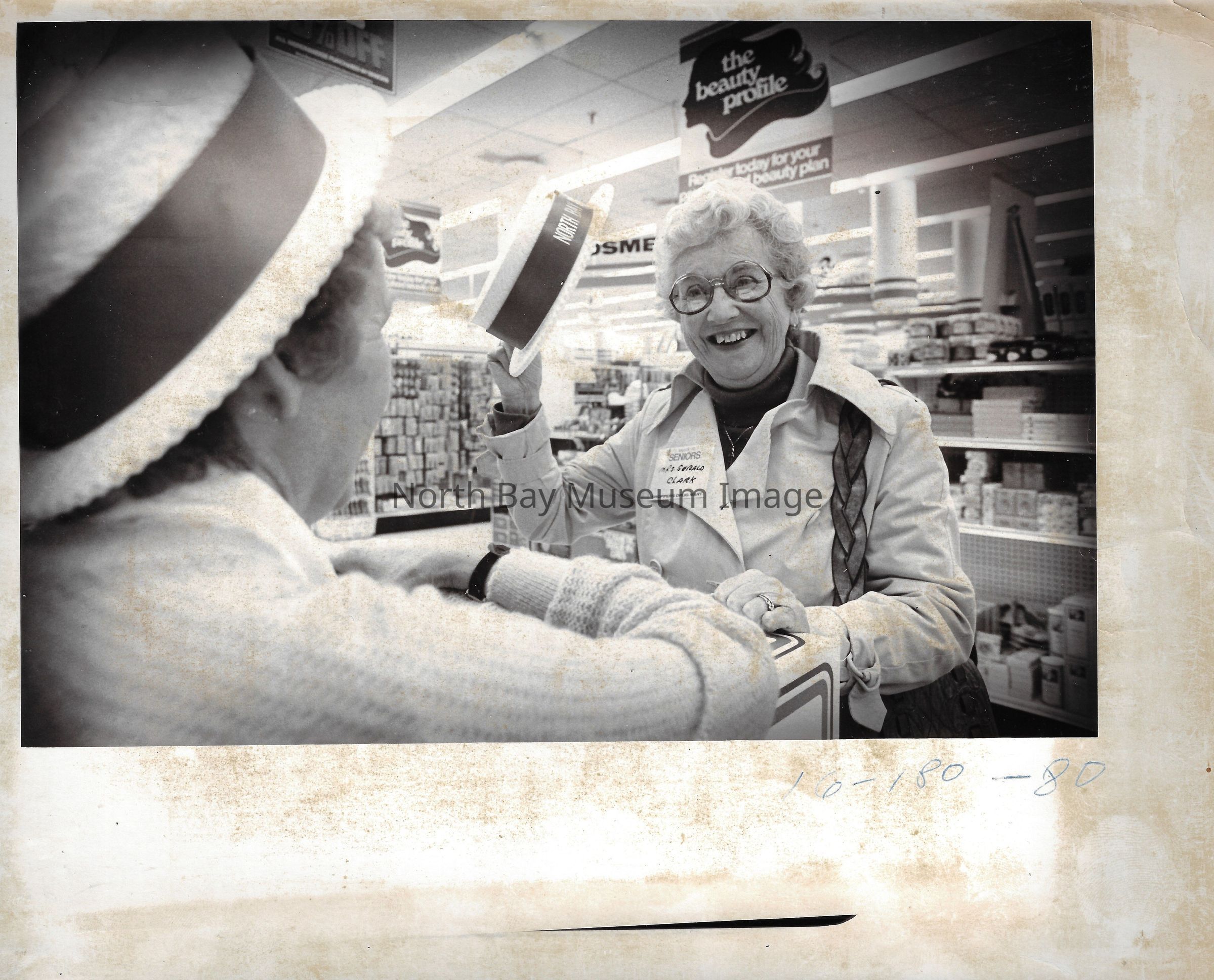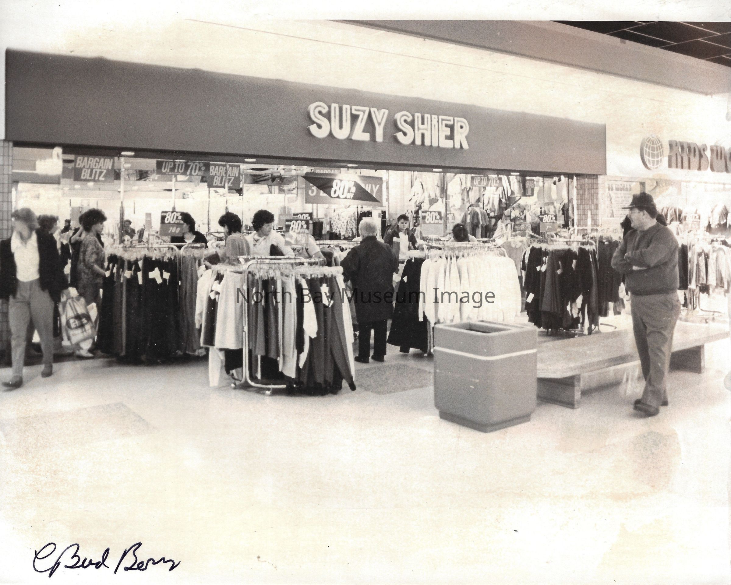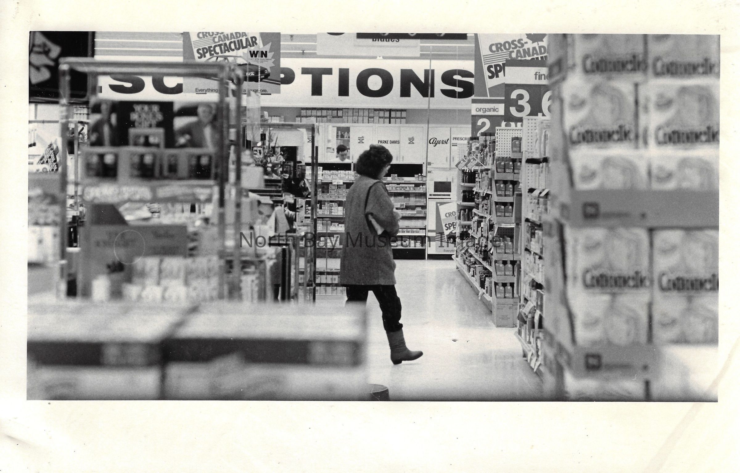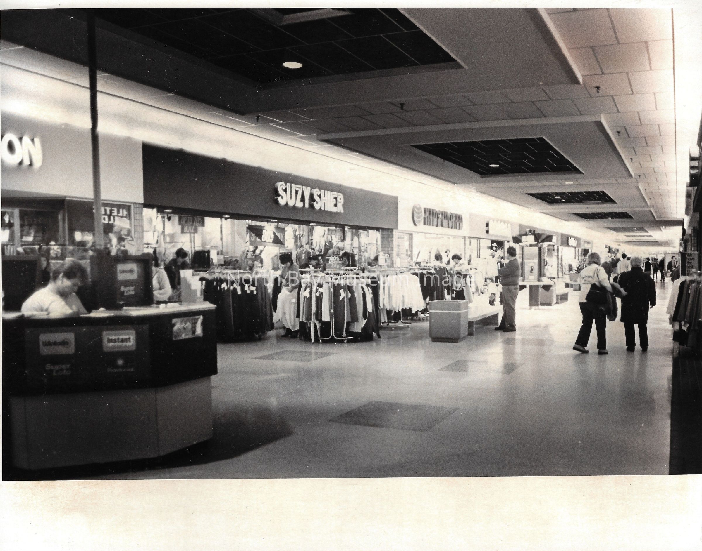 General photos of mall fountain and christmas decorations. Photos of stores in North Bay Mall including North Bay Lighting, Records on Wheels, Smart Set, Reitman's, Gallenkamp shoes, Woolco, Cinemas Champlain, Happy Hour, K Mart, Royal Bank, Polar Camera Centre, Samuel's Cafe, People's Jewellers, A&P, Dapper Don, Suzy Shier and C.J.'s Hobbies.Date(s) of Creation