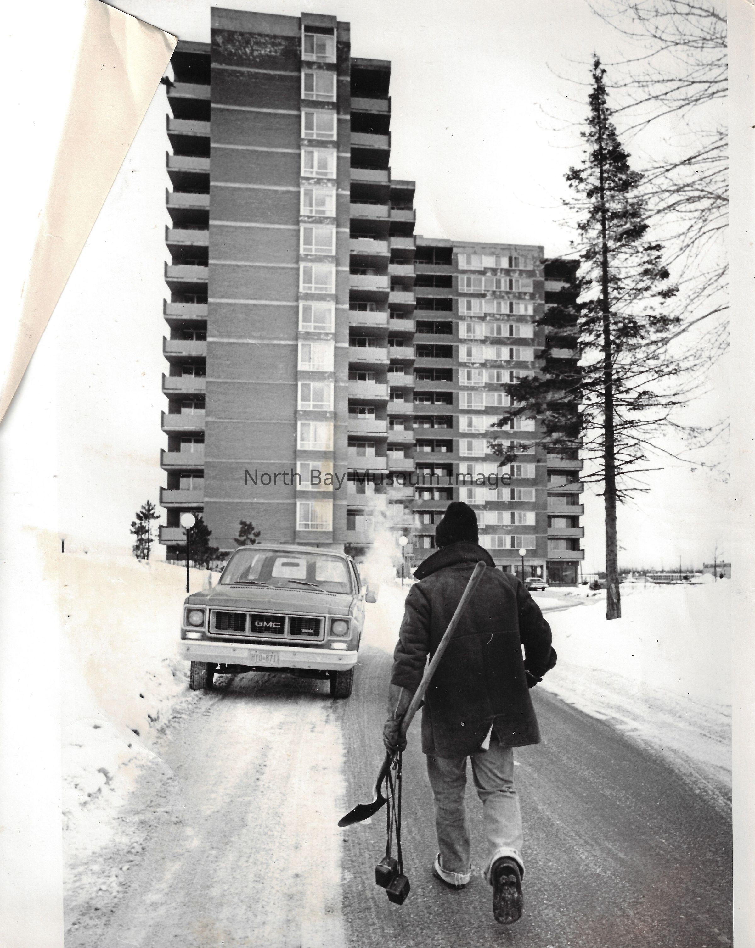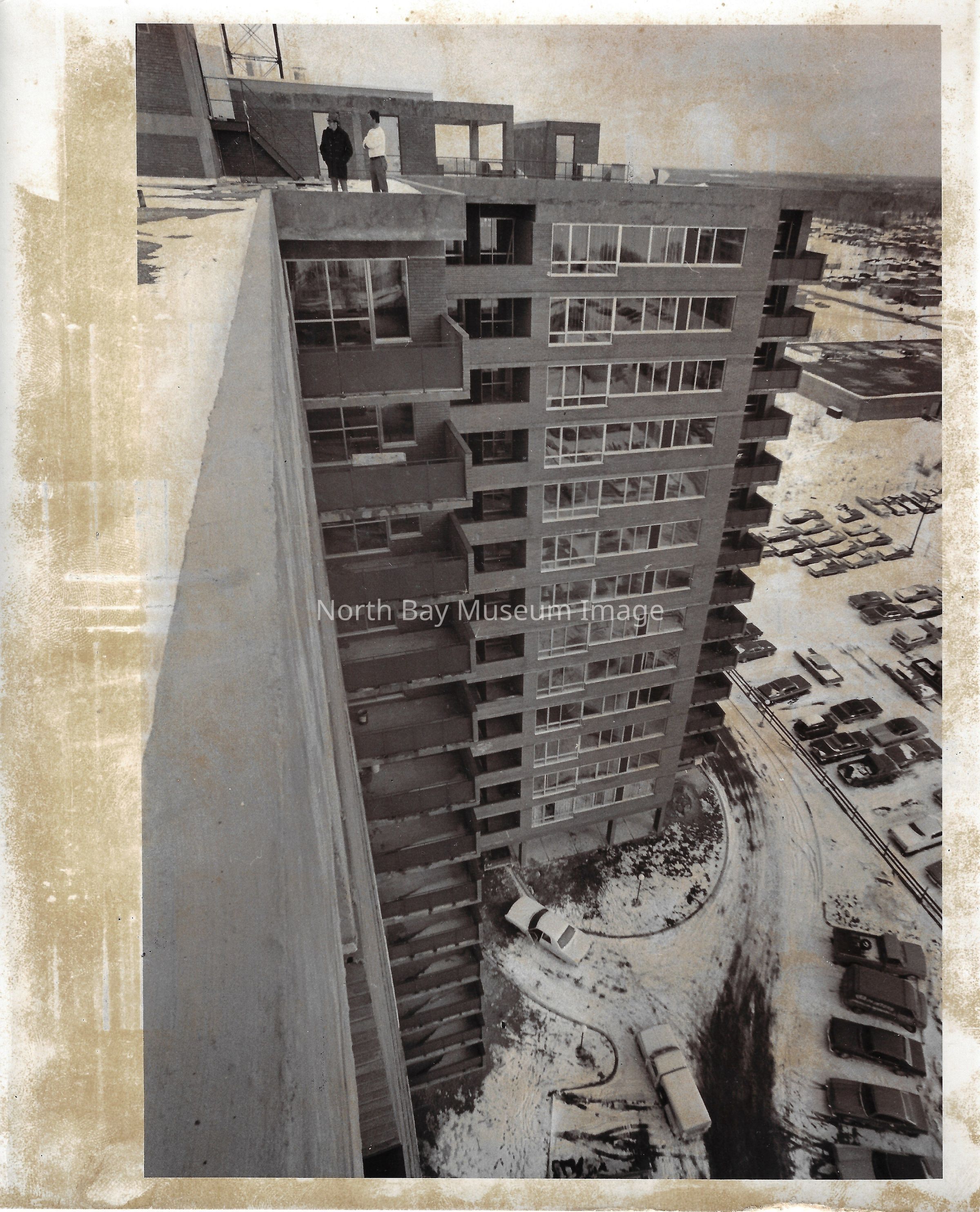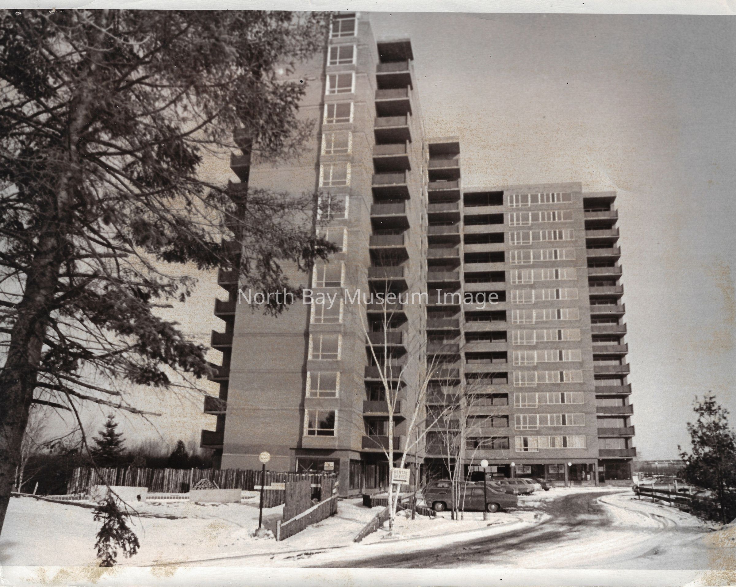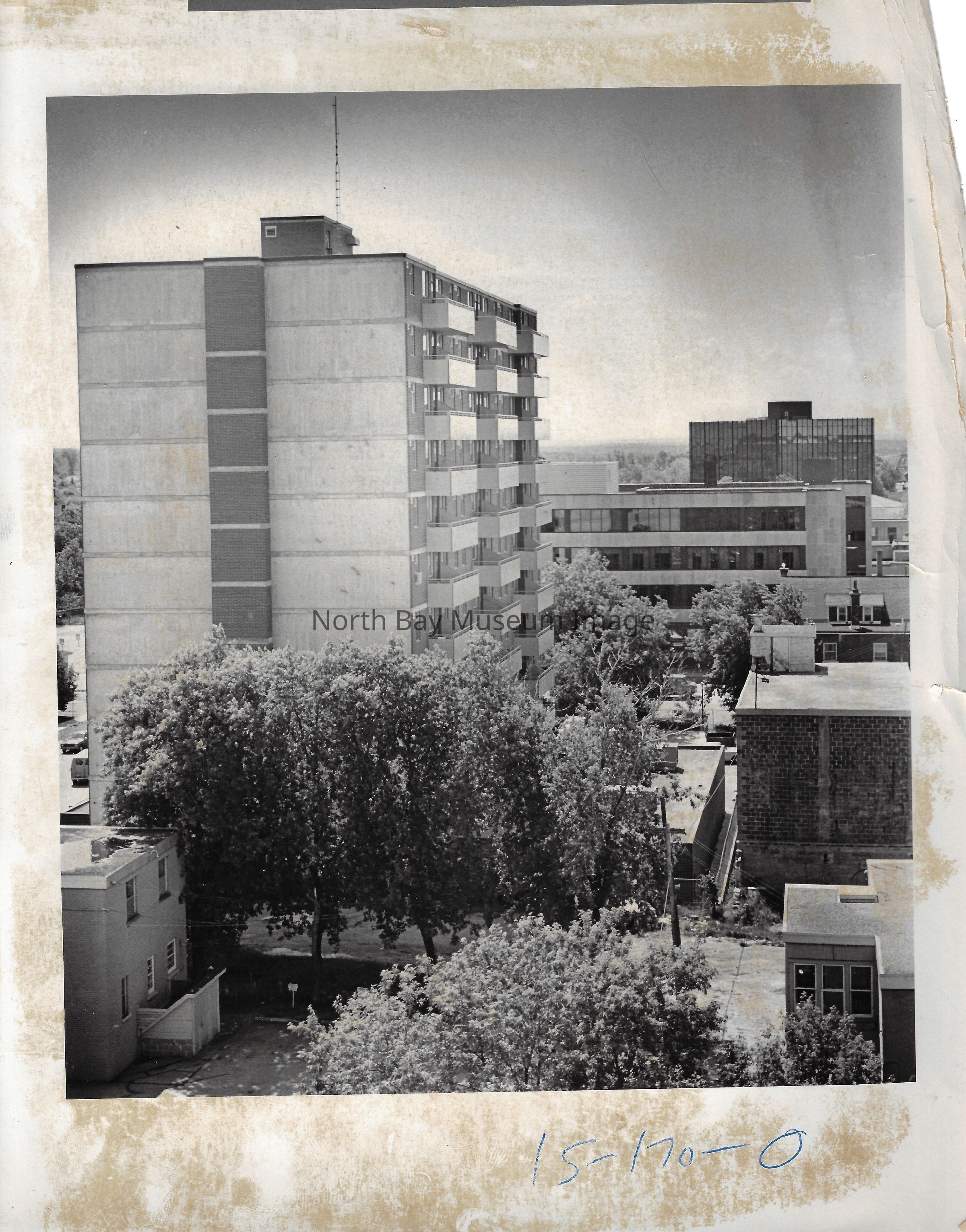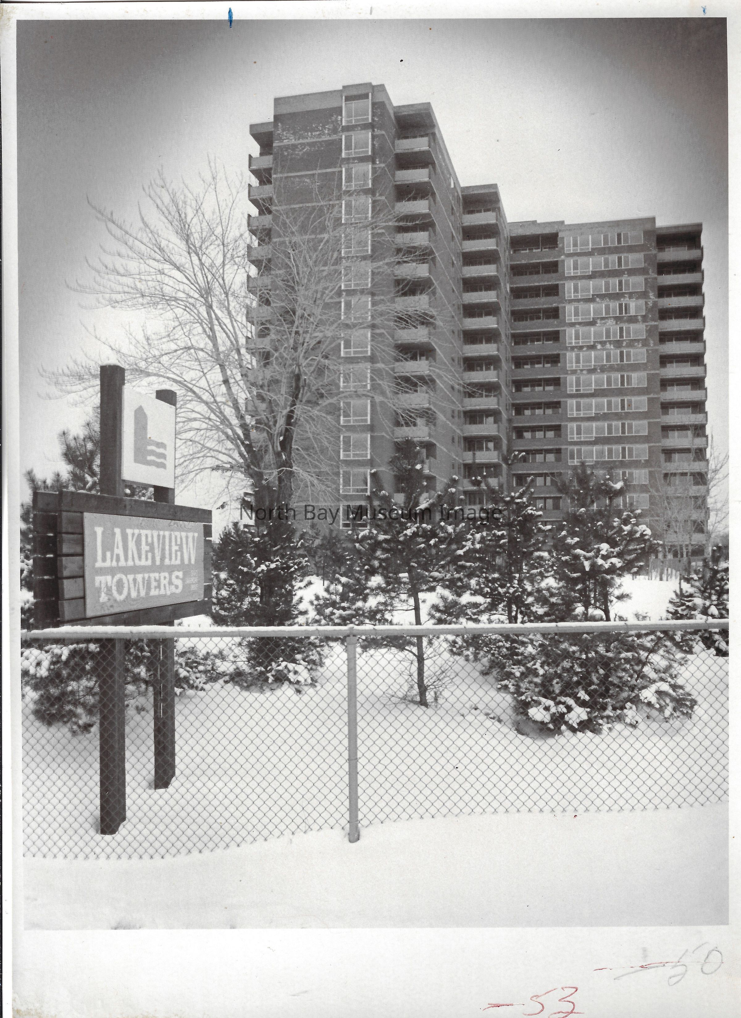 Photos and newspaper articles concerning construction for Lakeview Towers, Woodlands, Edgewater and Golden Age highrises.