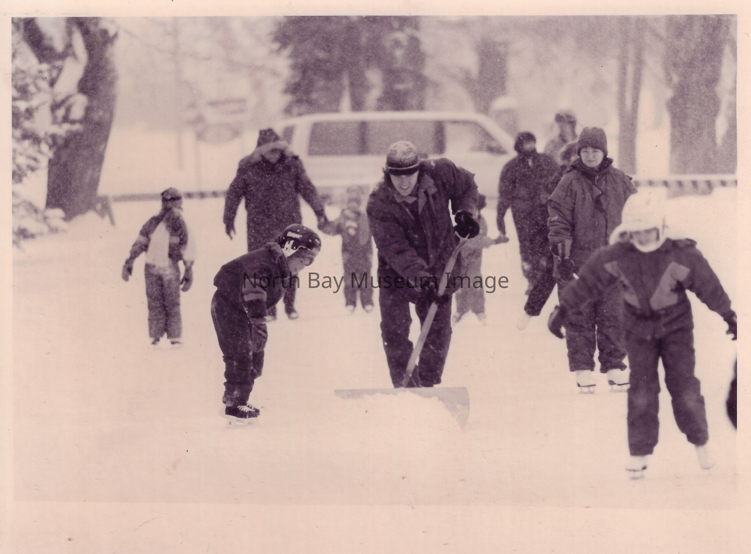Photos and newspaper clippings of children skating outdoors and at the Pete Palangio arena.