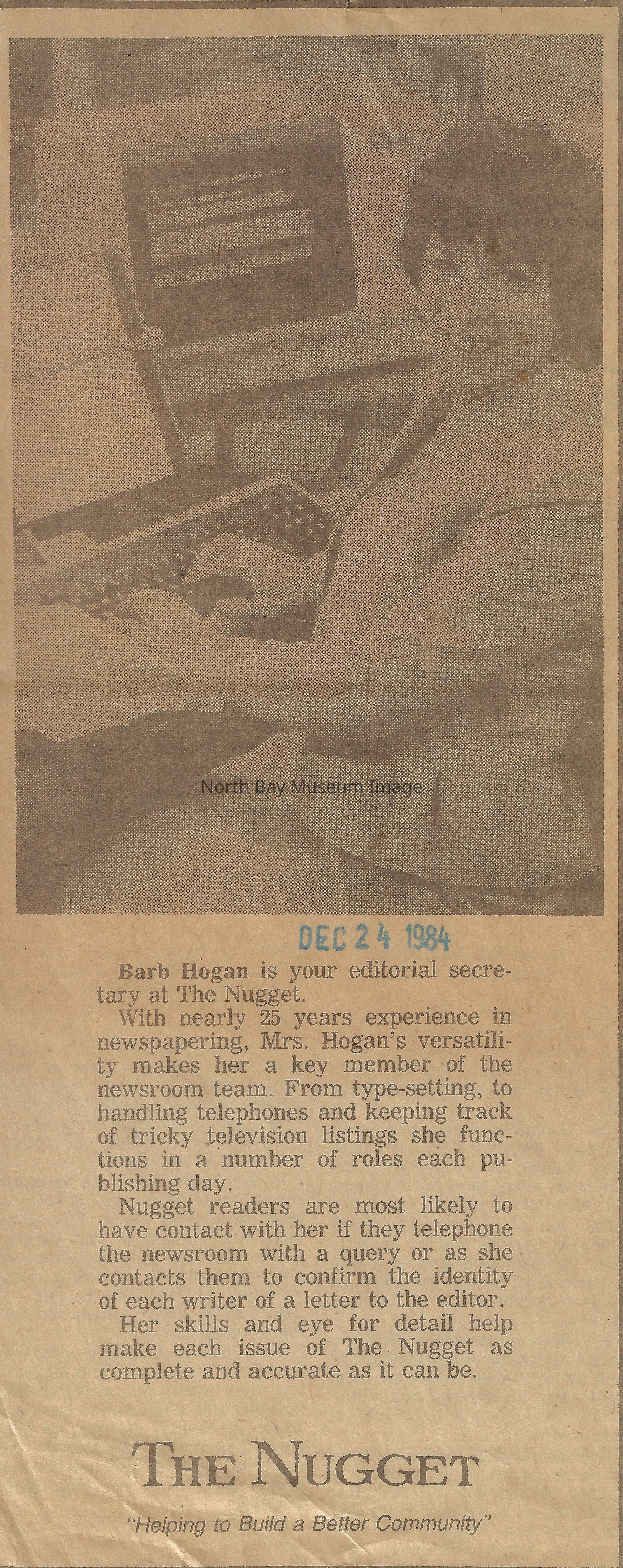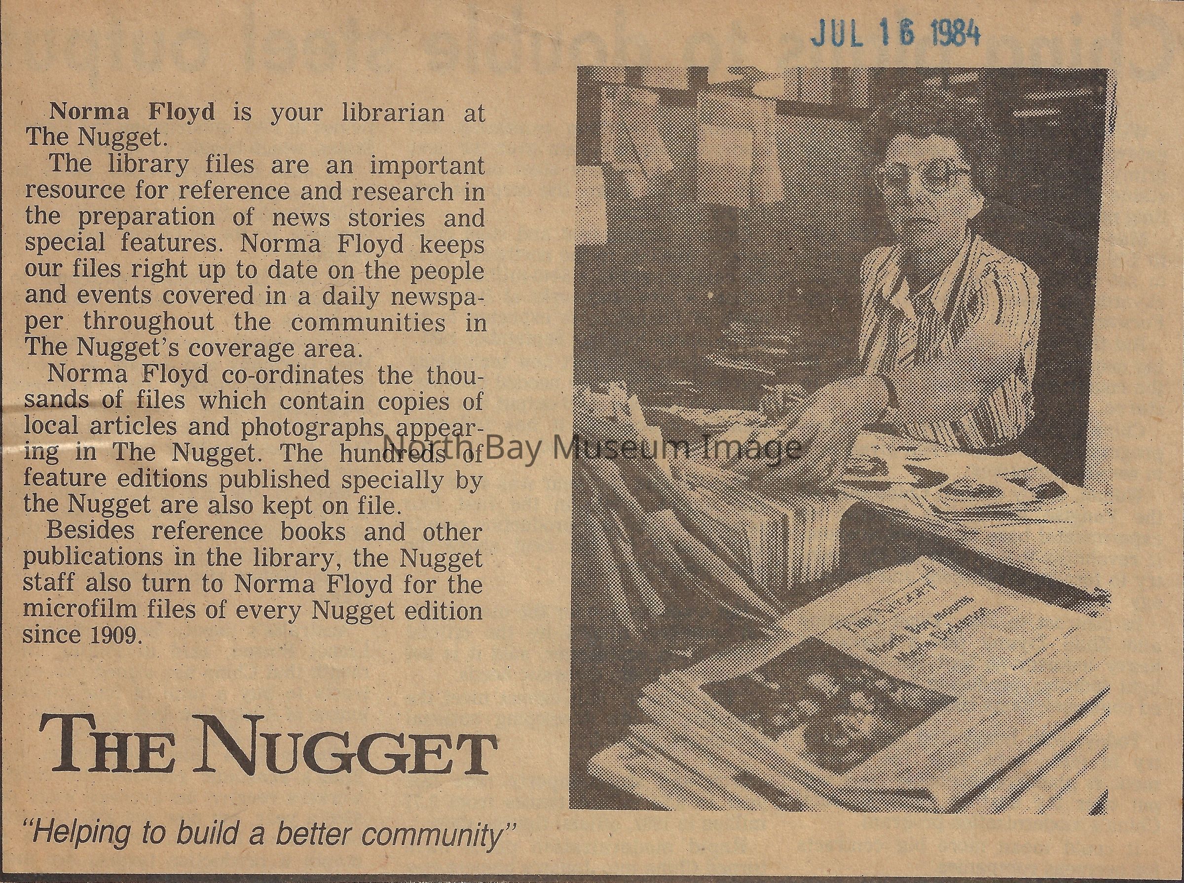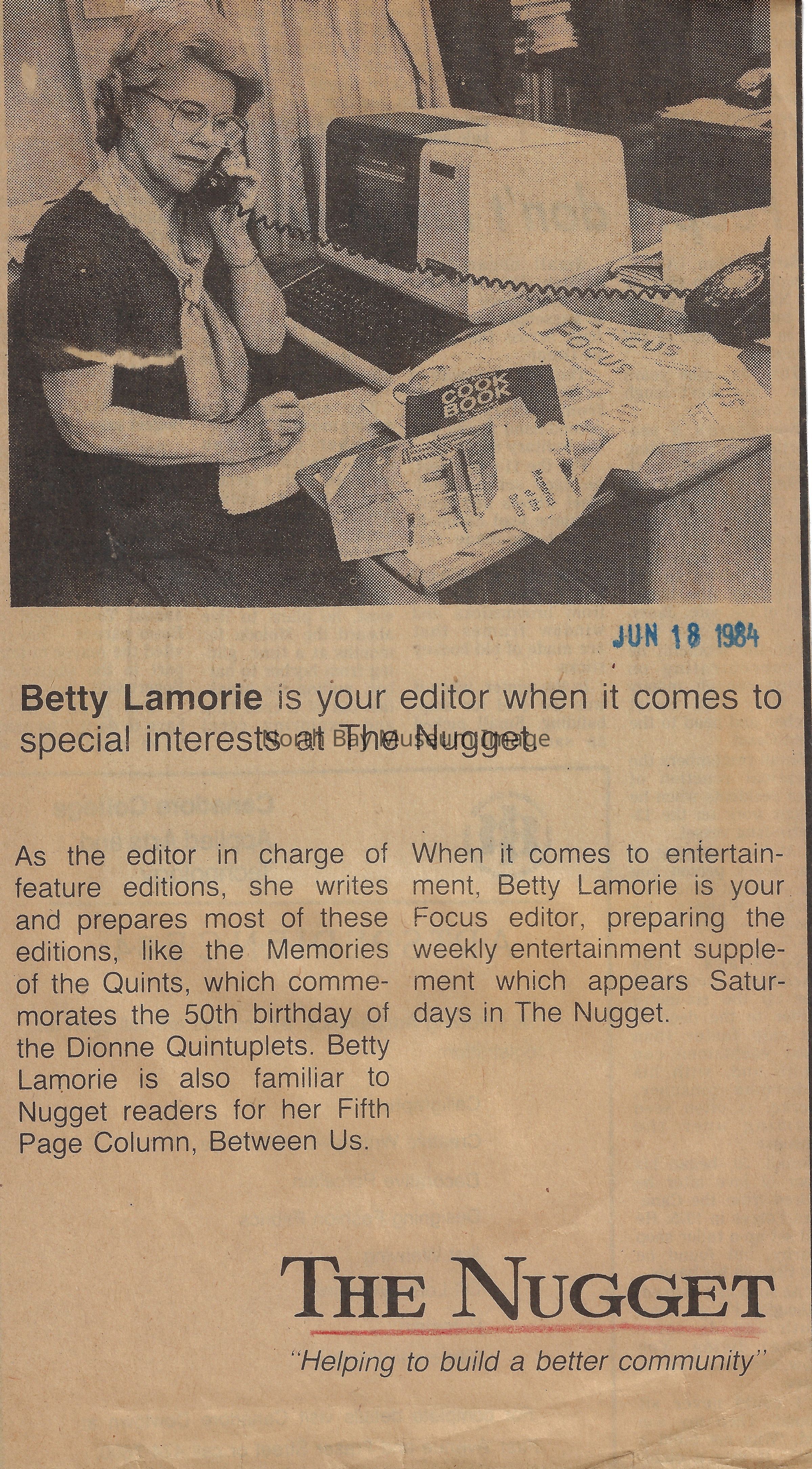 022.01.70ca-cb: June, 1984. Betty Lamorie, special interest editor.