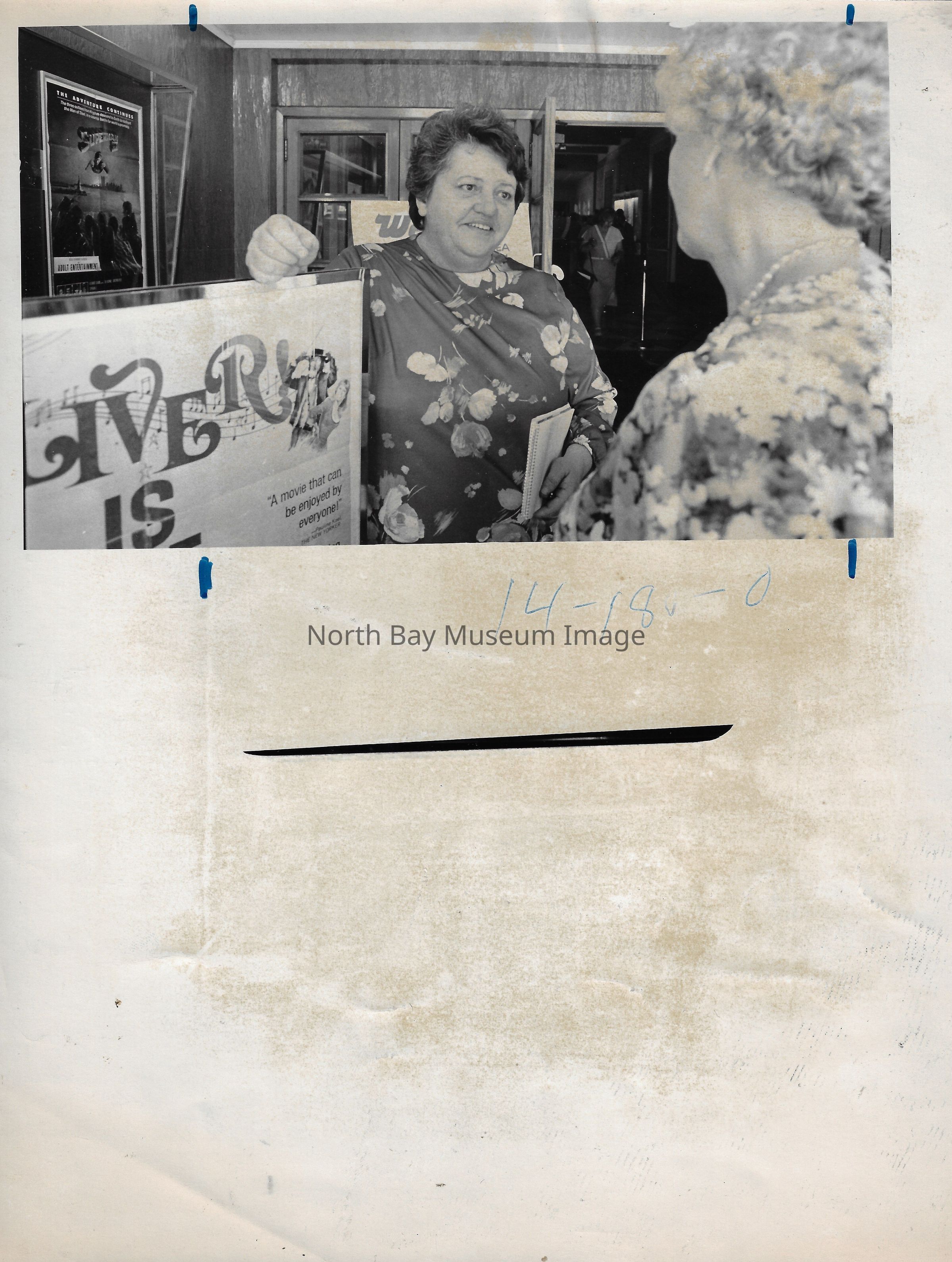 022.01.70ab: The yellowing is caused by it not being affixed properly. It’s strictly for identification. Window decorated for fur carnival. “Cutline” photograph that went to the engraver.