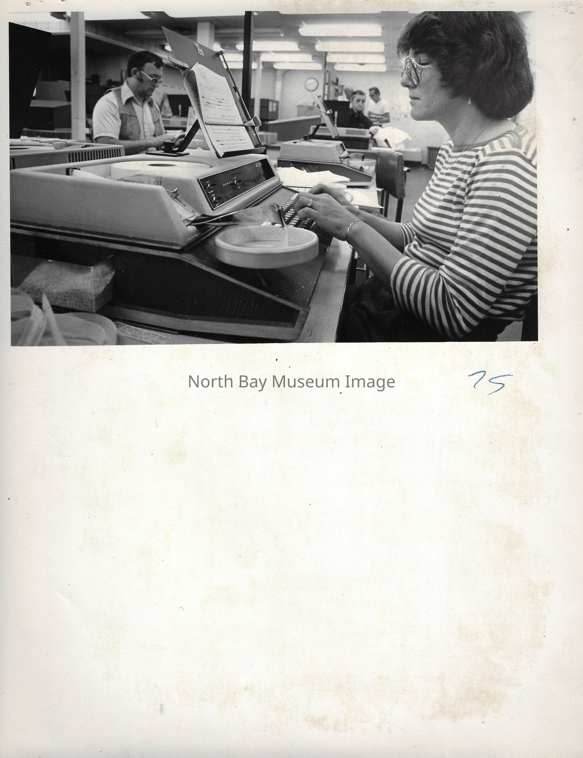 022.01.70l: Betty Lamorie in archives or “morgue”.