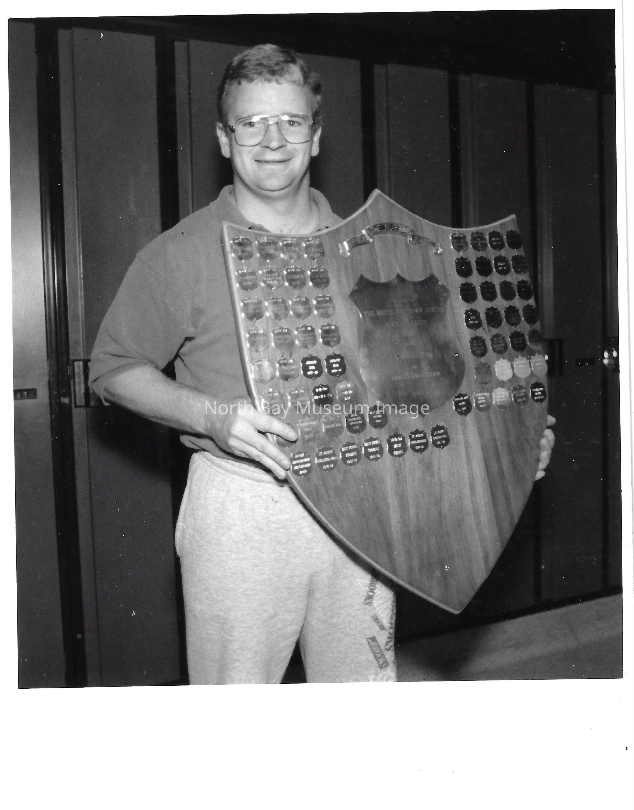 022.01.70a: Photo of Dale Hewitt holding up Nugget hockey award.