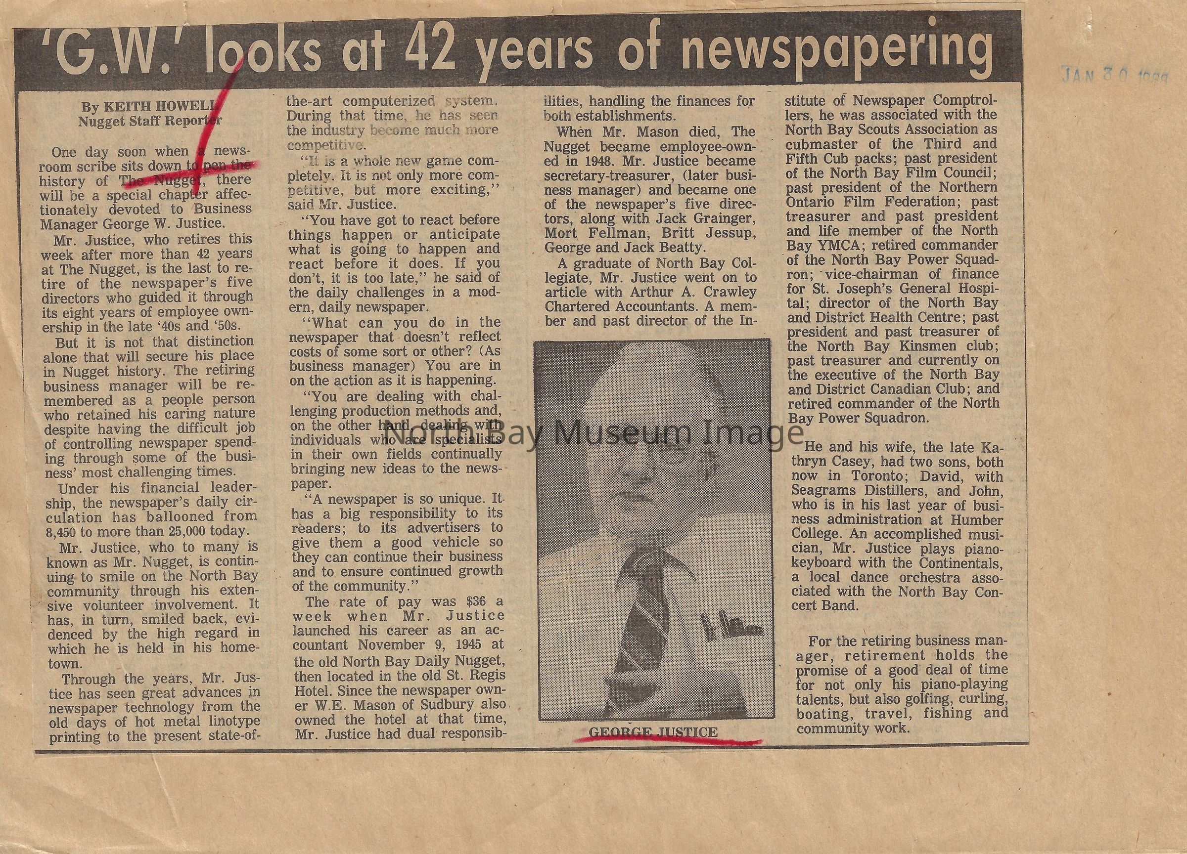 022.01.70at: Newspaper. G.W. looks at 42 years of newspapering. George Justice.