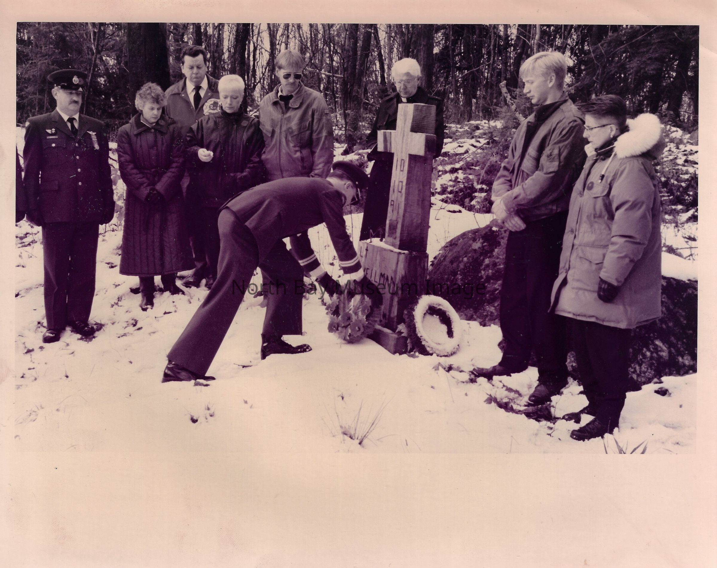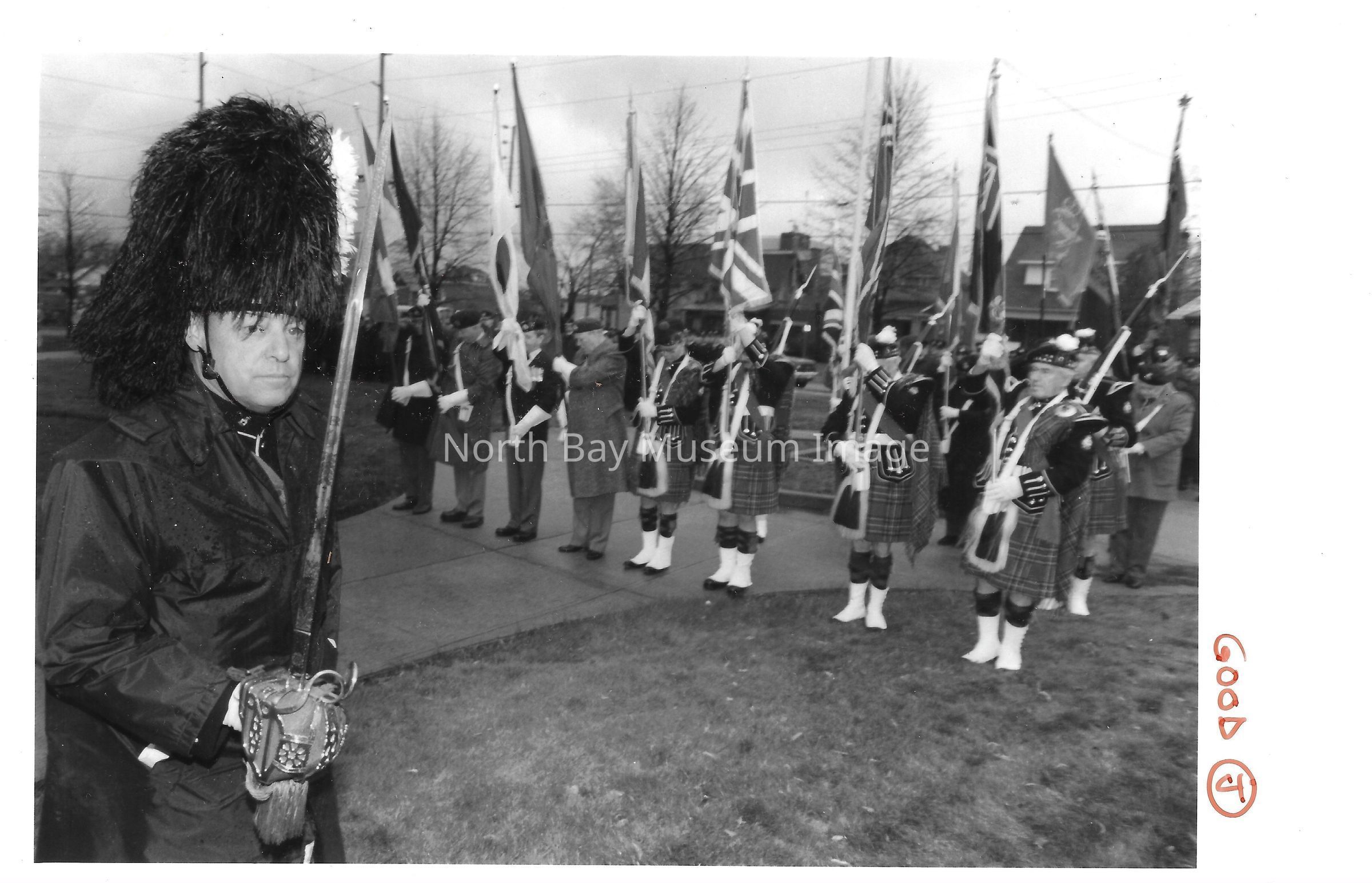 Photos of veterans, servicemen, and musicians at memorial park on remembrance day. 022.01.80as: Media information packet for remembrance day 1983.