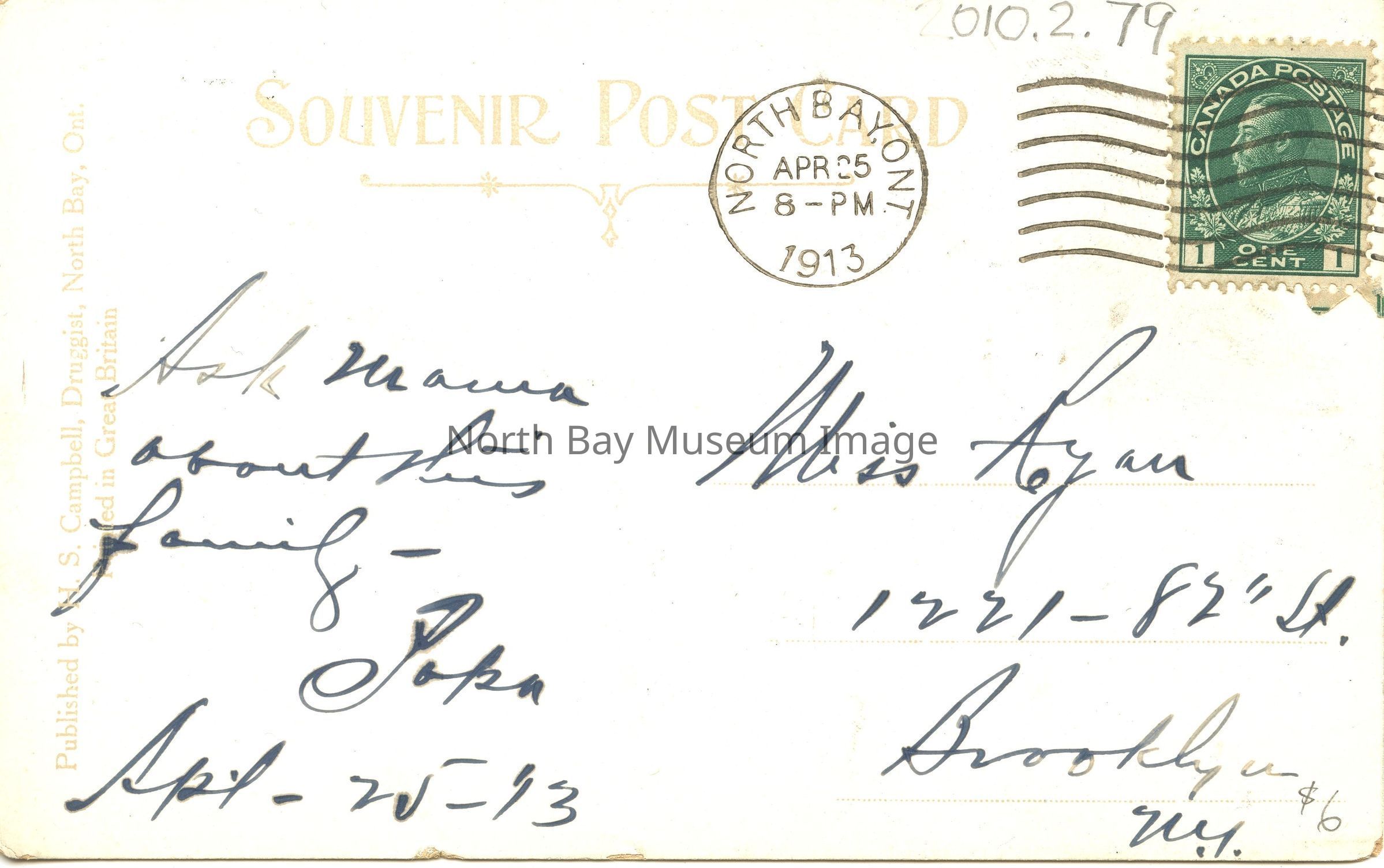 Postmark is North Bay, Ont., Apr 25, 8-PM, 1913