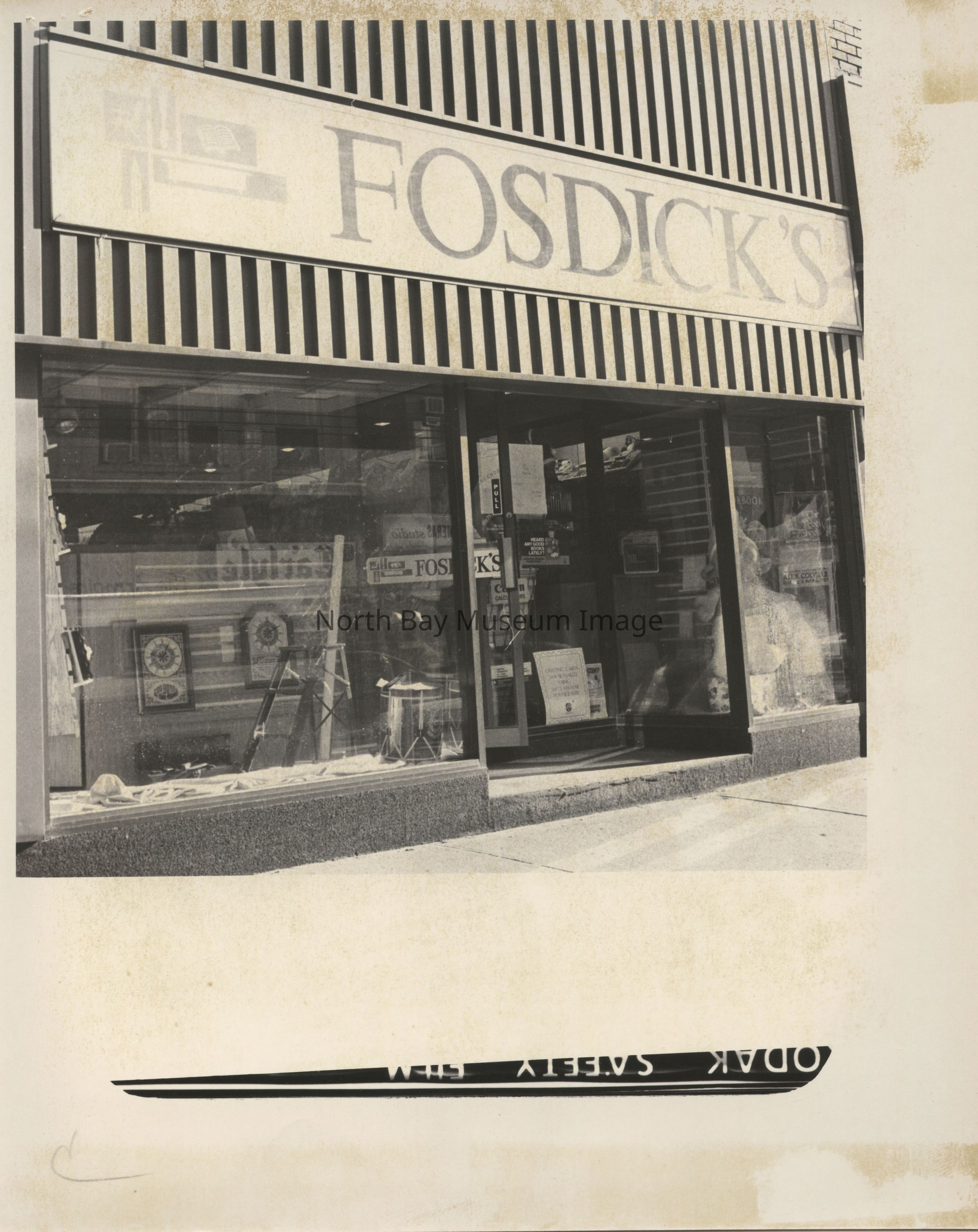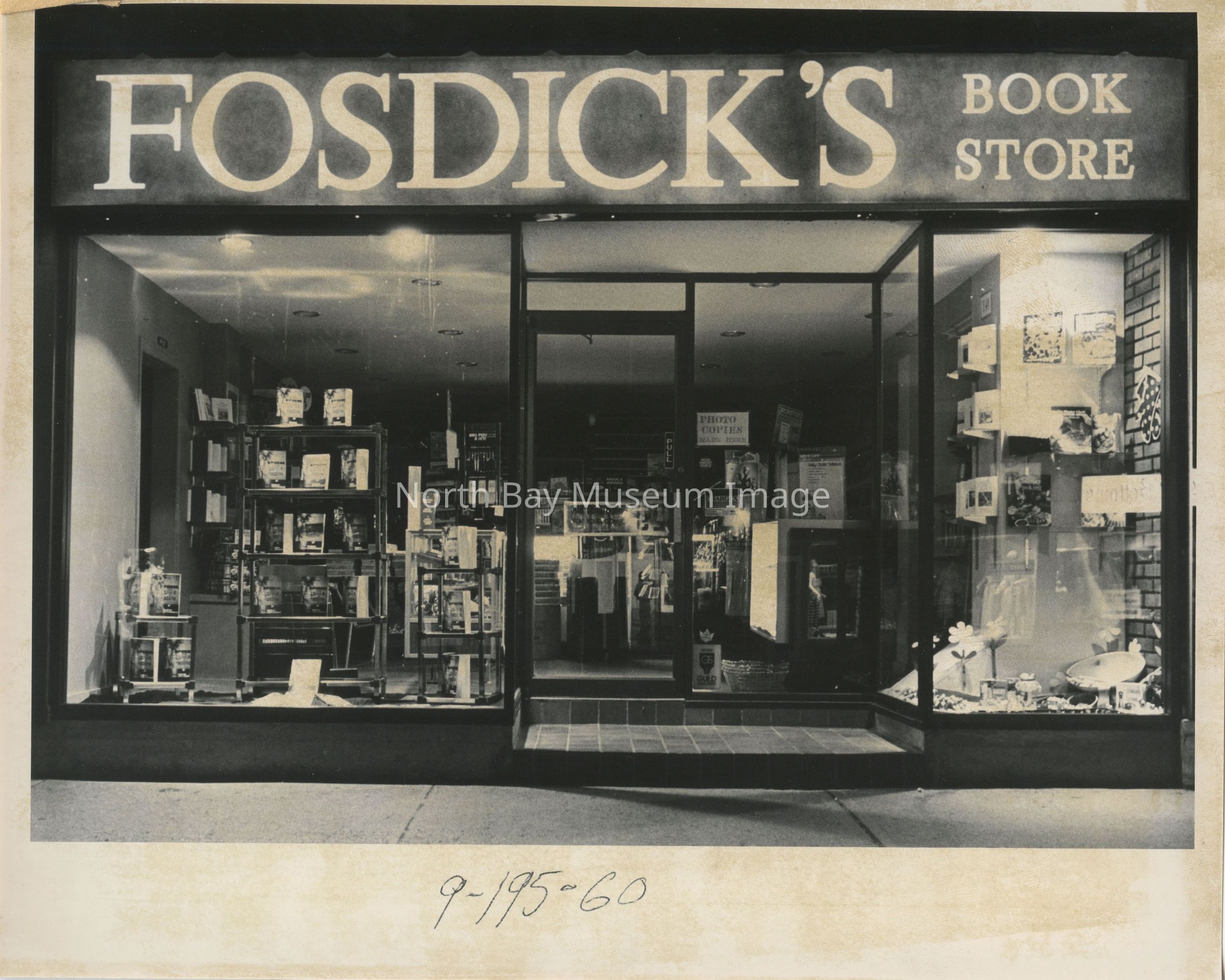 Photos of exterior of Fosdick's bookstore, office supply and furniture store.