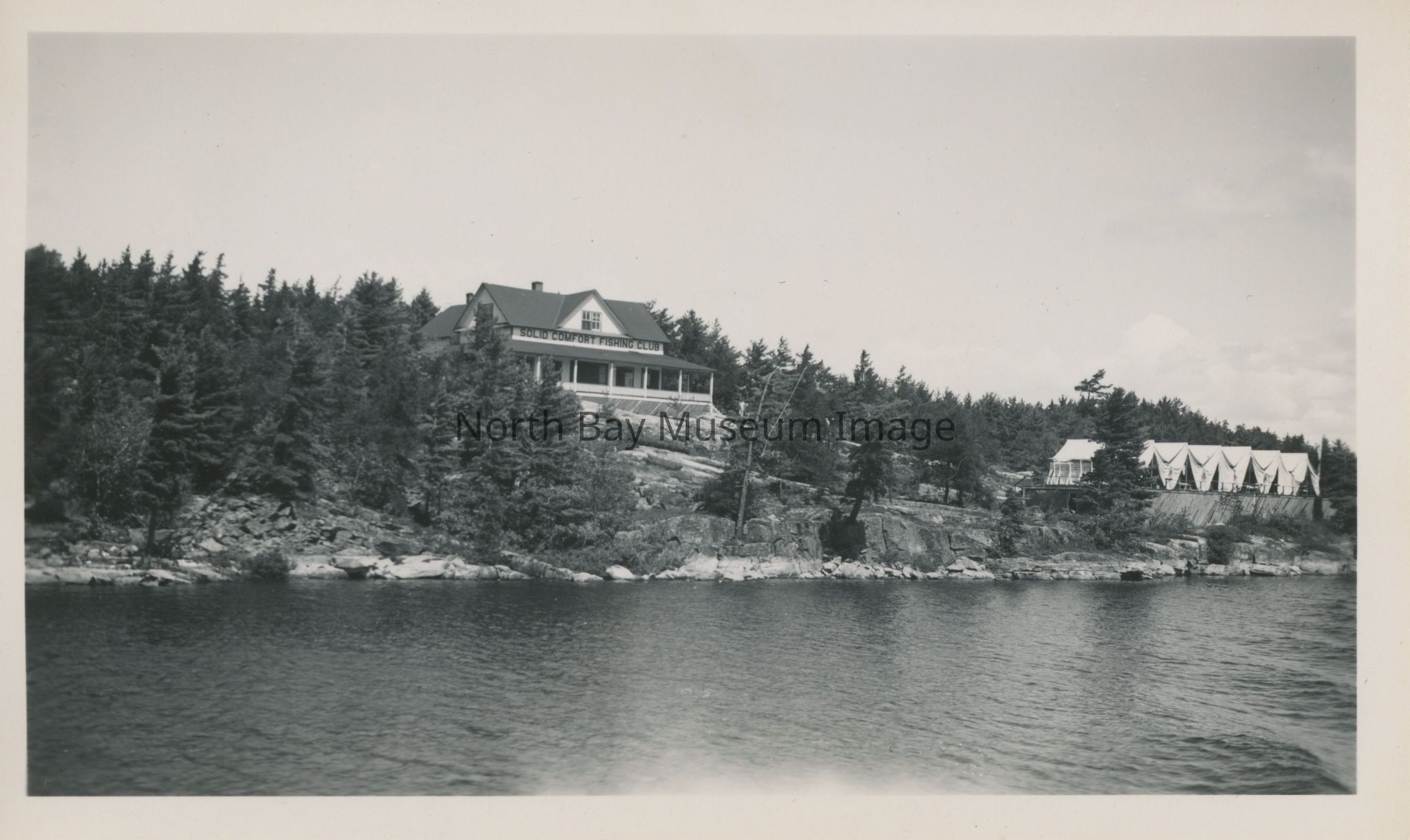 Various photos of lodges along the French River. Lodges include; solid comfort, keystone,chaudiere, Kennedy's hotel, Casa Blanca, and Chief Commanda.