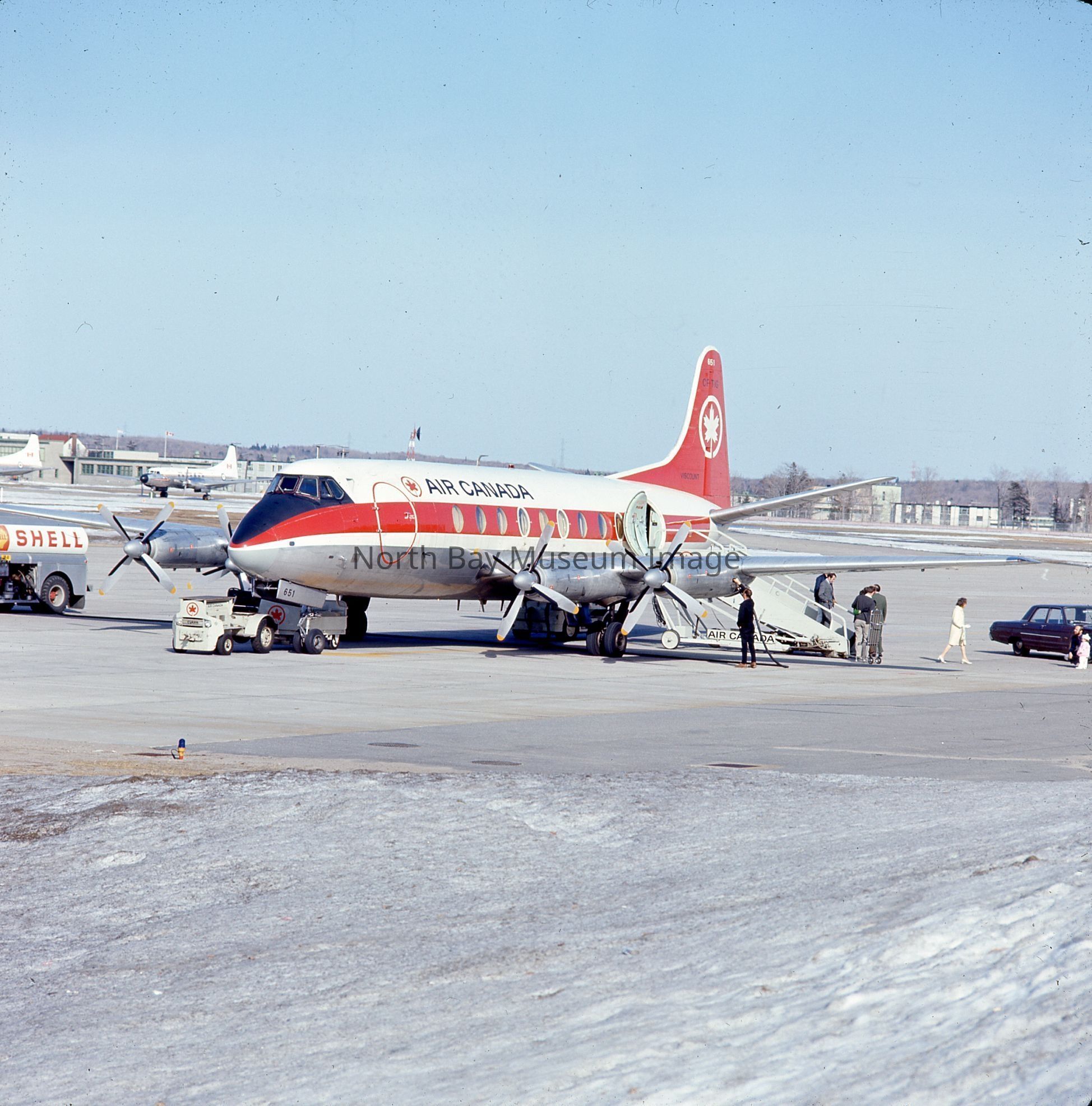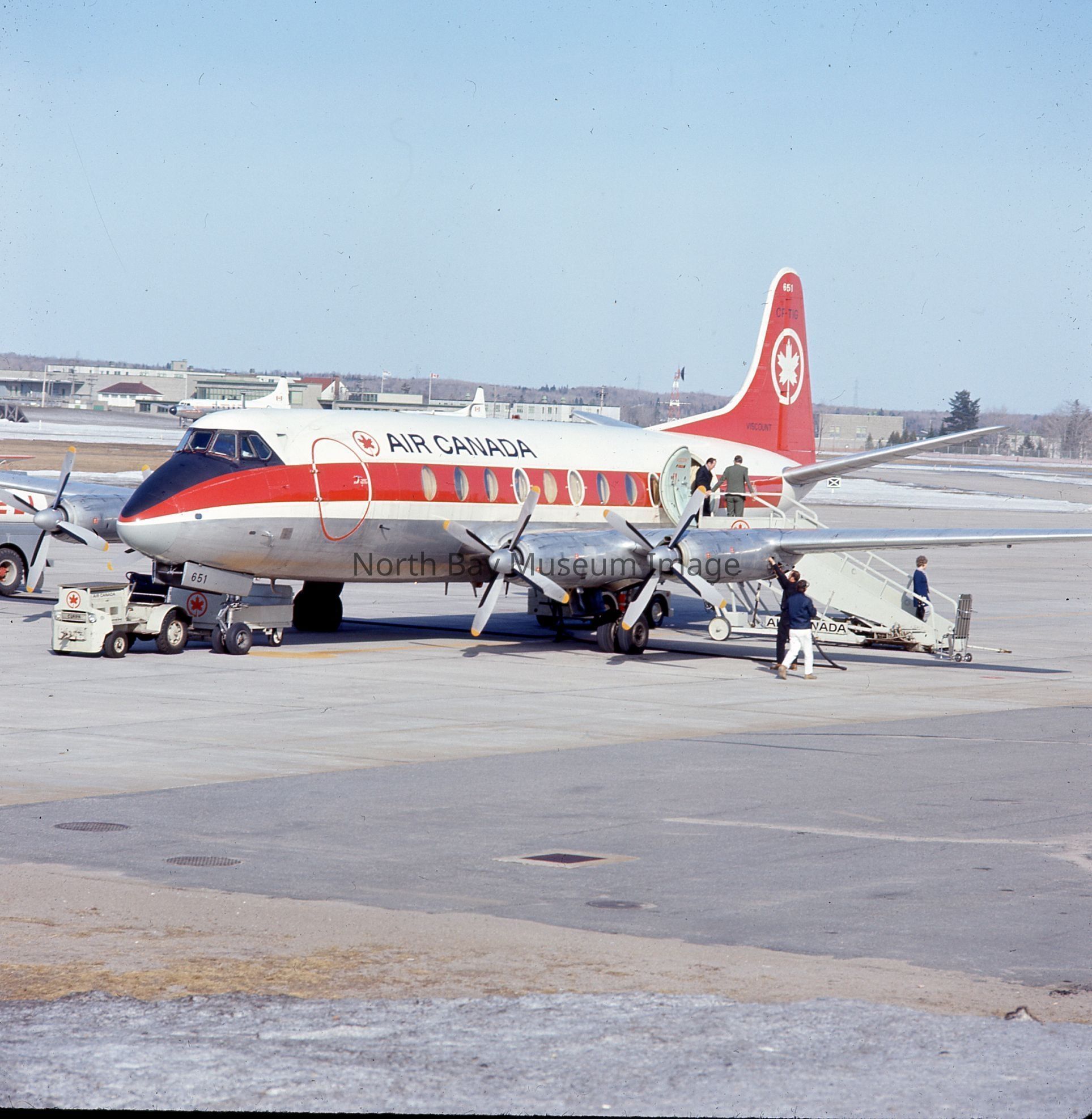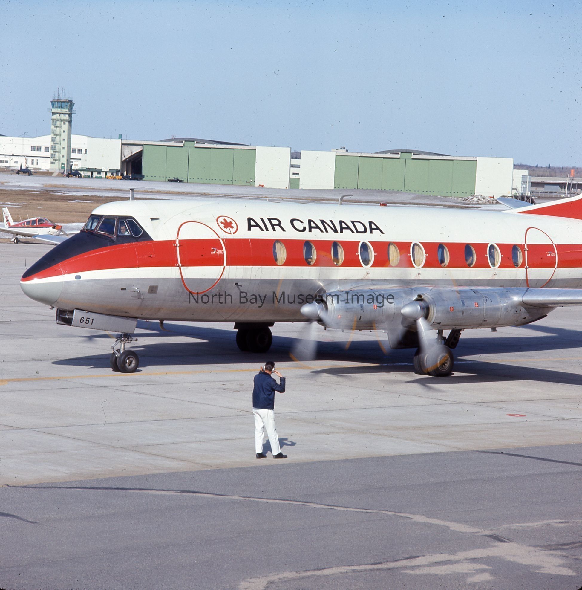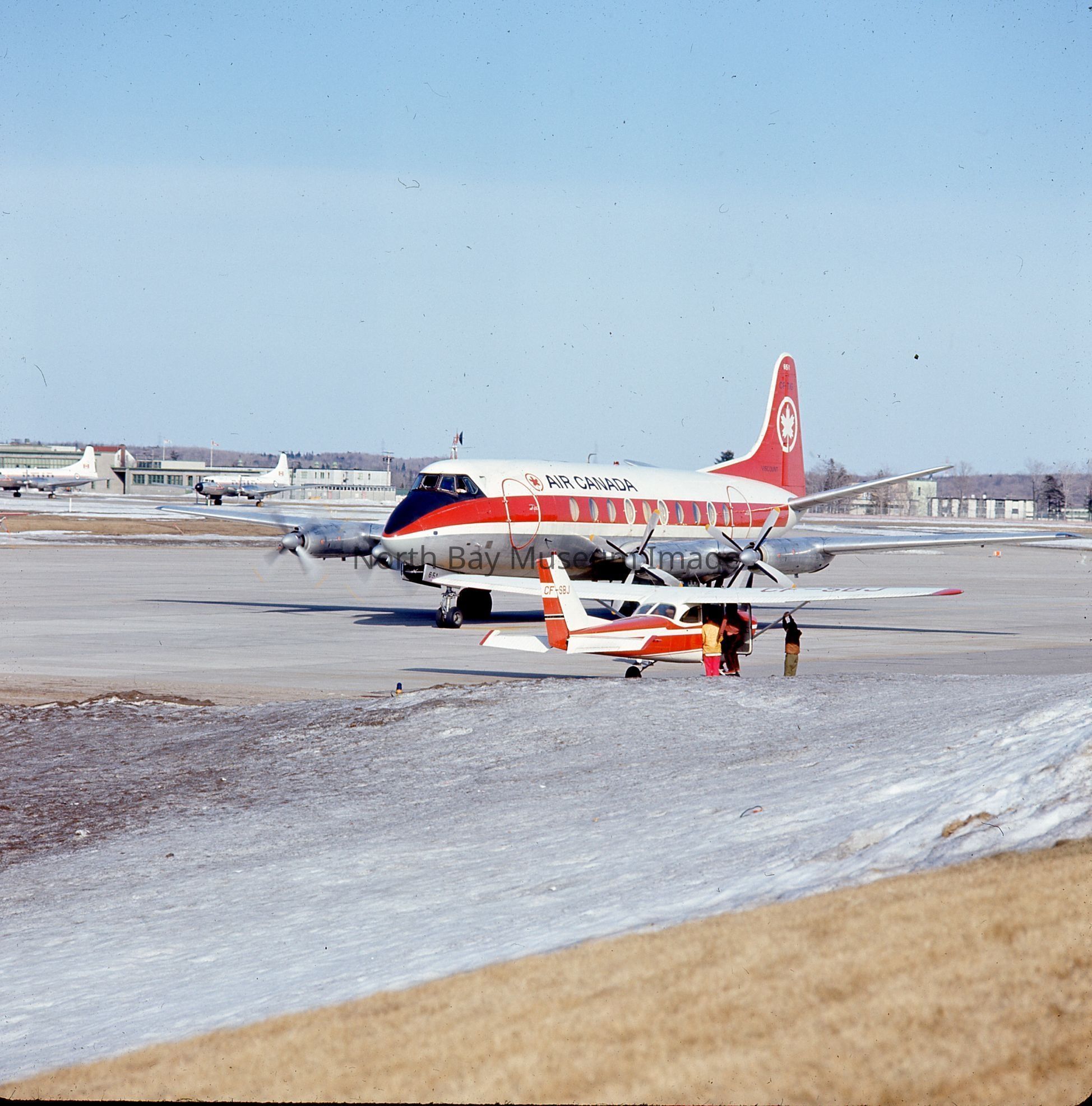 Original photographs by William Forder showing various views of an Air Canada Plane at the North Bay airport.