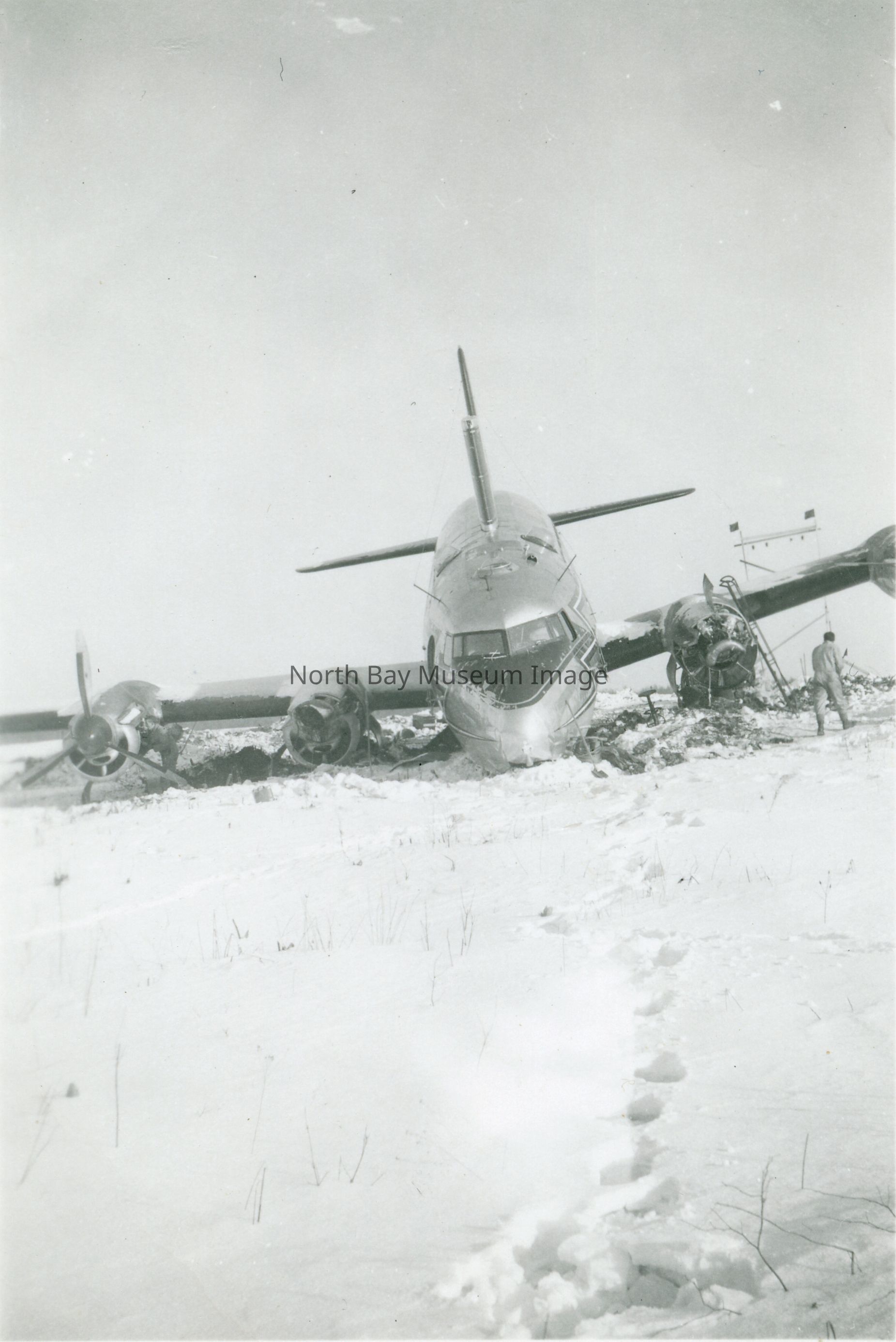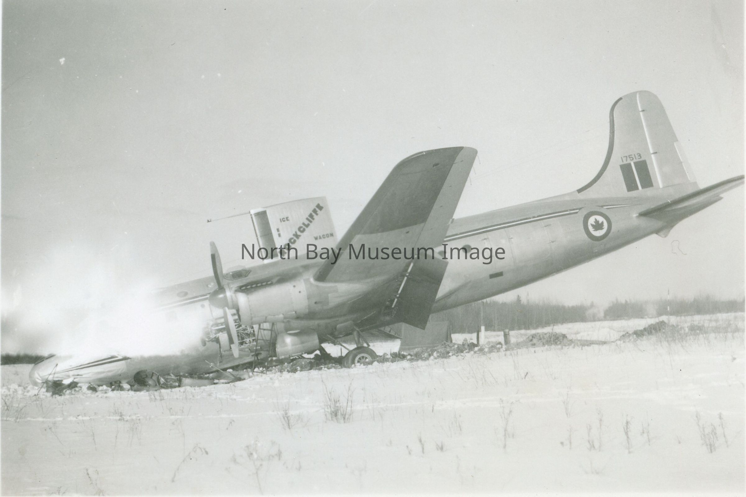 a-c- Photographs of the RCAF C54 North Star airplane the "Rockcliffe Ice Wagon" from January 1951 at North Bay airport