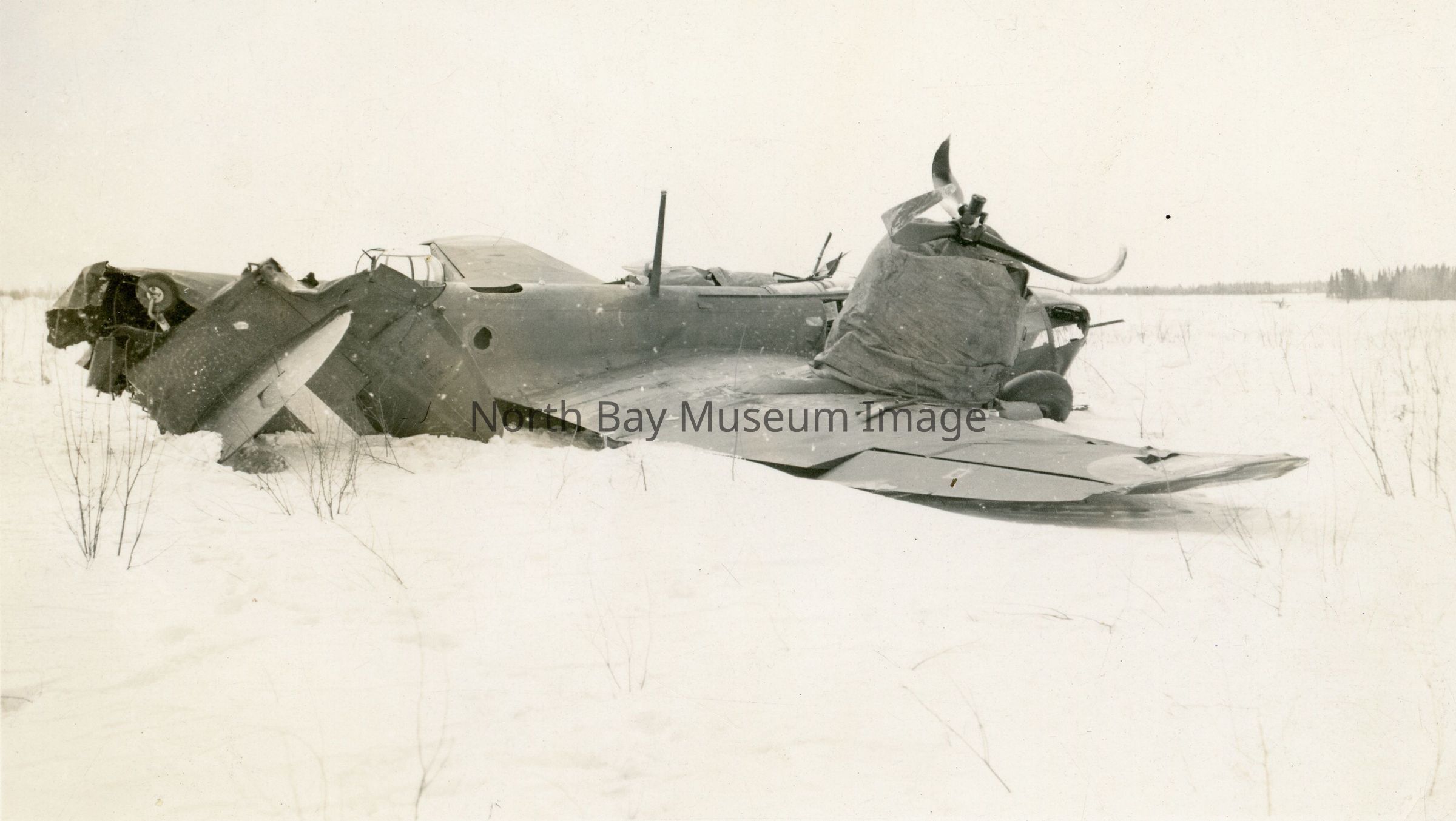 d- The wreck of a three-man RCAF Bolingbroke bomber, Second World War. On 6 January 1942, three Bolingbroke bombers from 8 Squadron, Royal Canadian Air Force, took off from Rockcliffe (at Ottawa), en route to British Columbia to shore up Canada's West Coast defences now that Japan had entered the war. They ran into a winter storm in the North Bay area. One returned to Rockcliffe. A