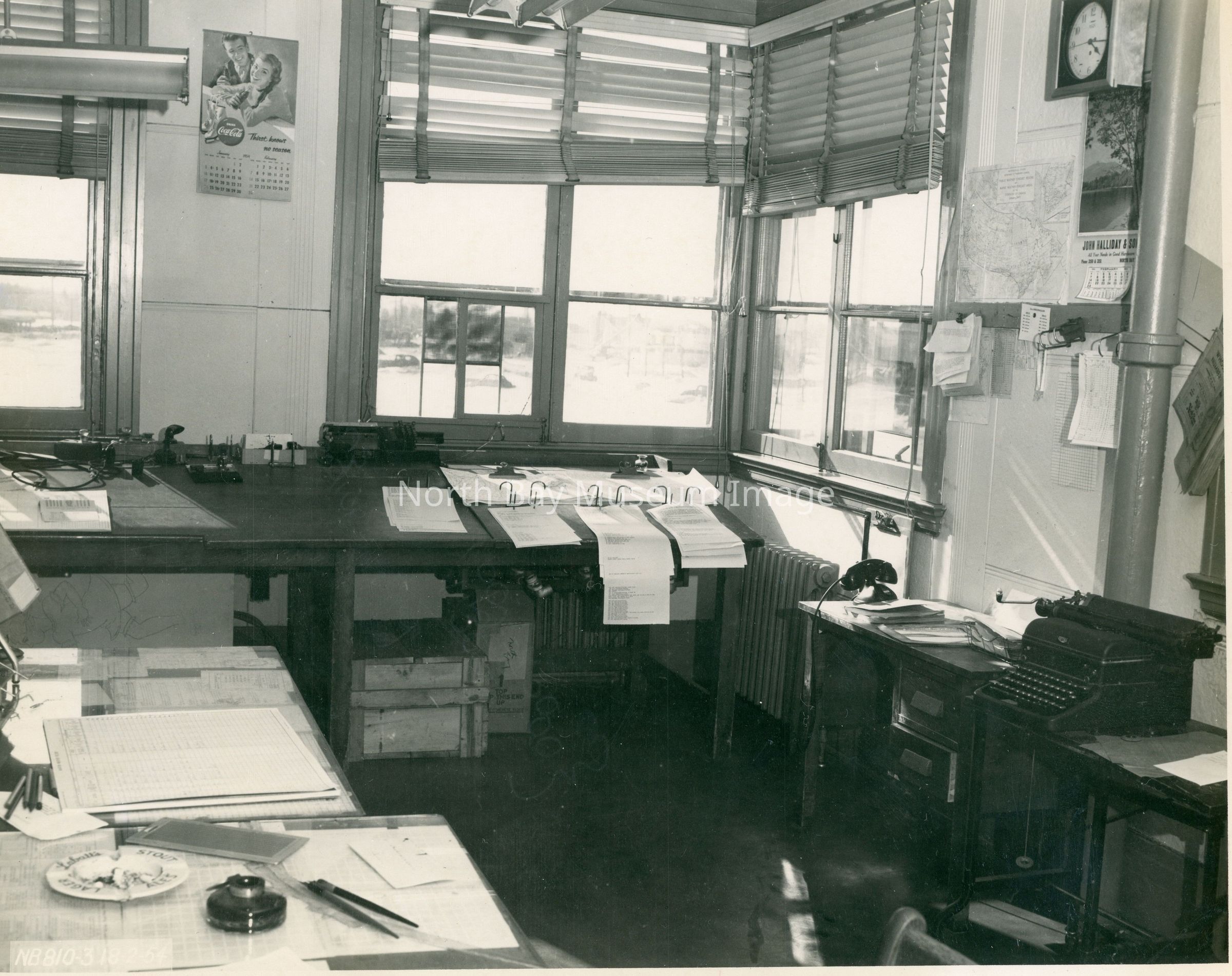 Black & white picture of corner office of North Bay Airport