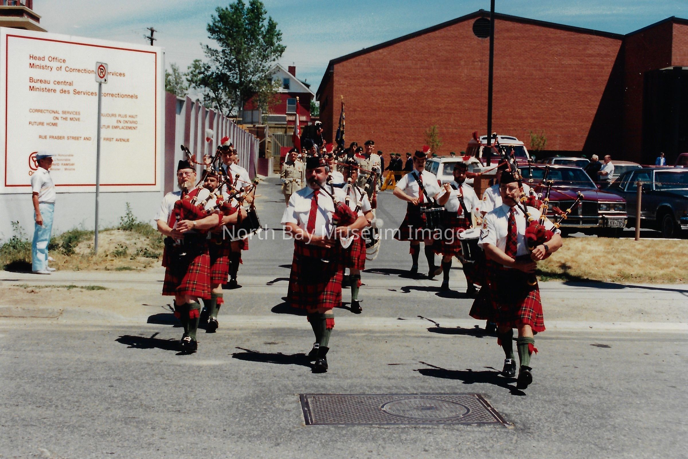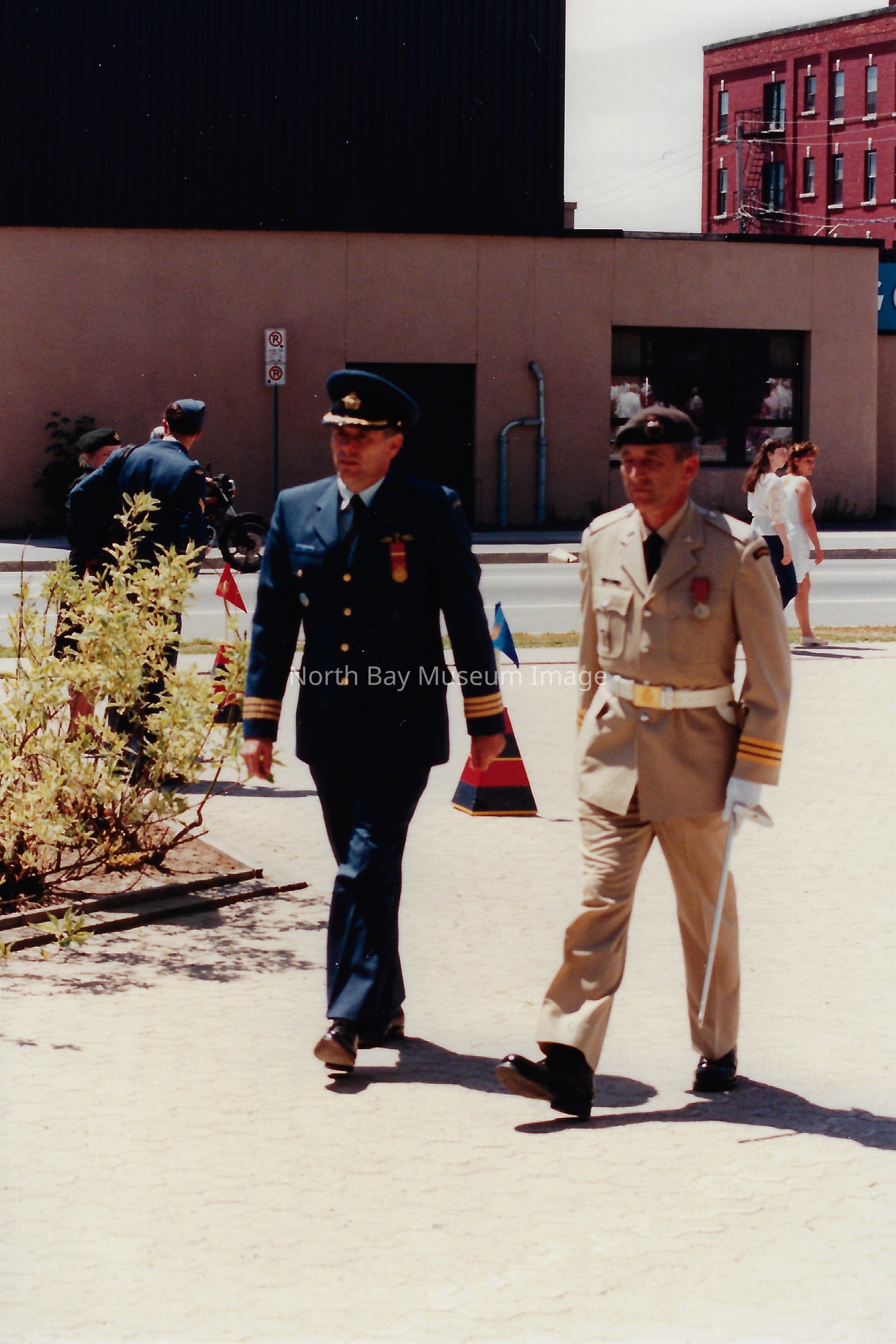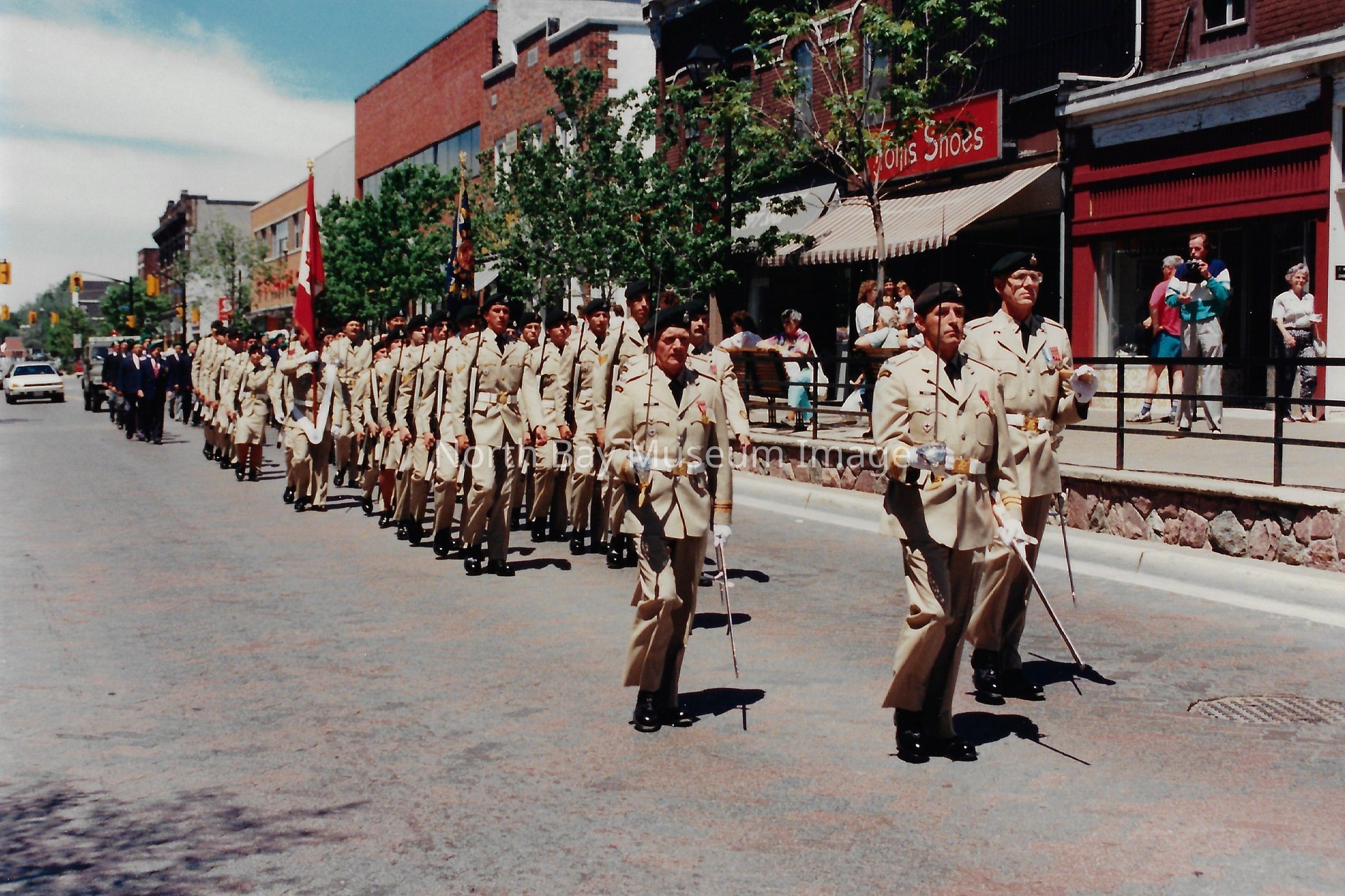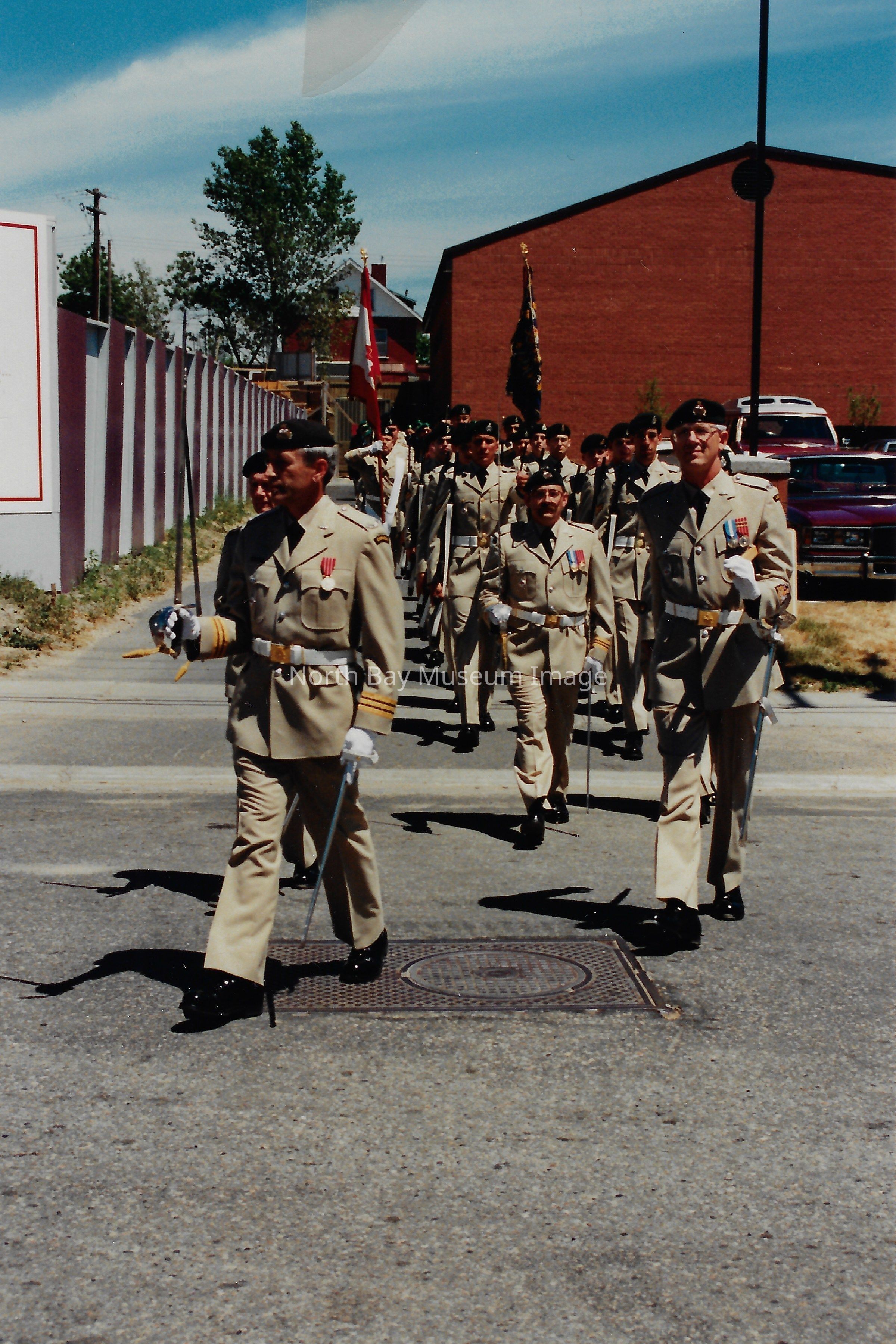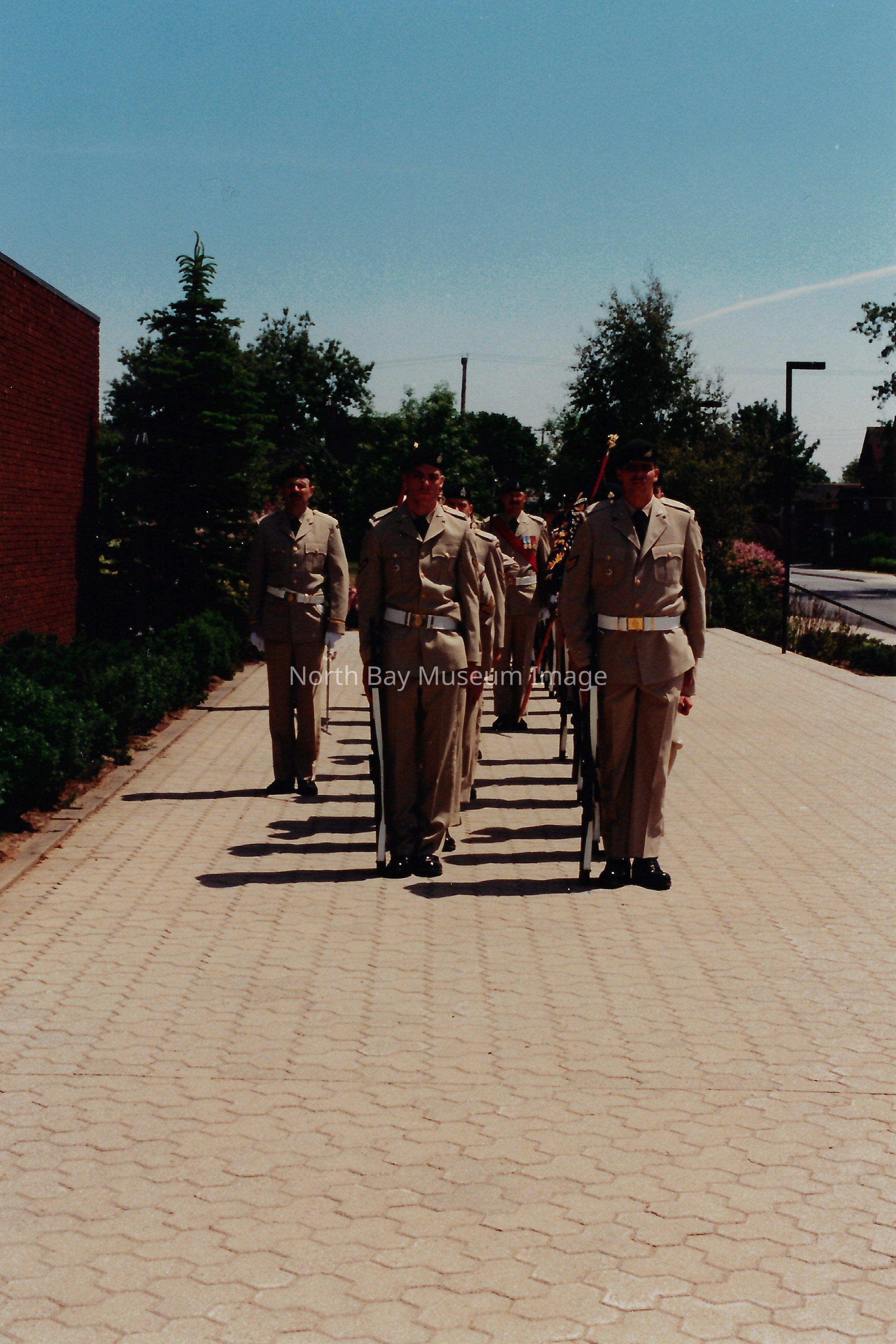 Series of photos originally in a photo envelope from S. Guindon sent to Bill Alexander from the "Presentation of Colours" ceremony which involved the formal presentation of two flags to the Algonquin Regiment in 1984.