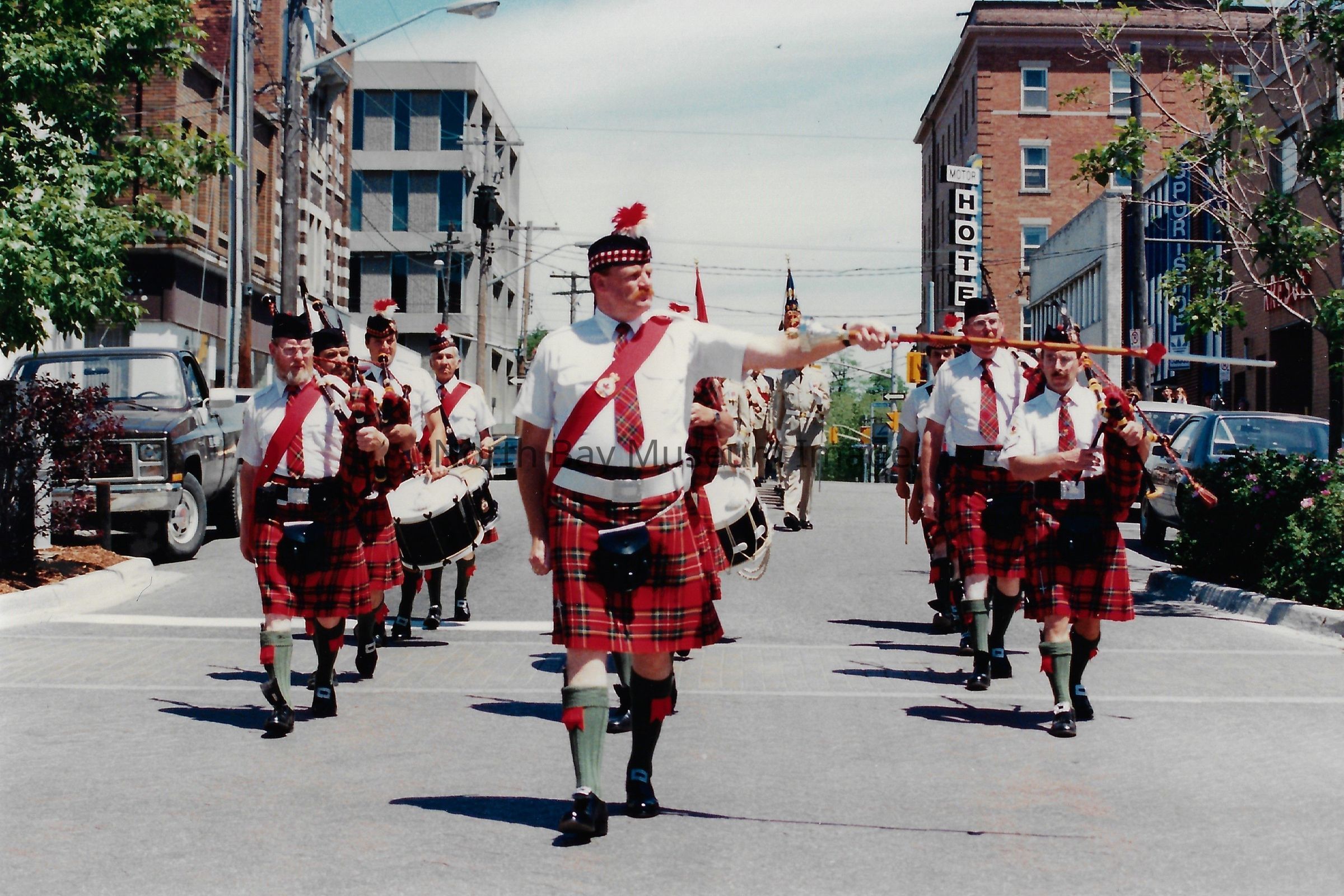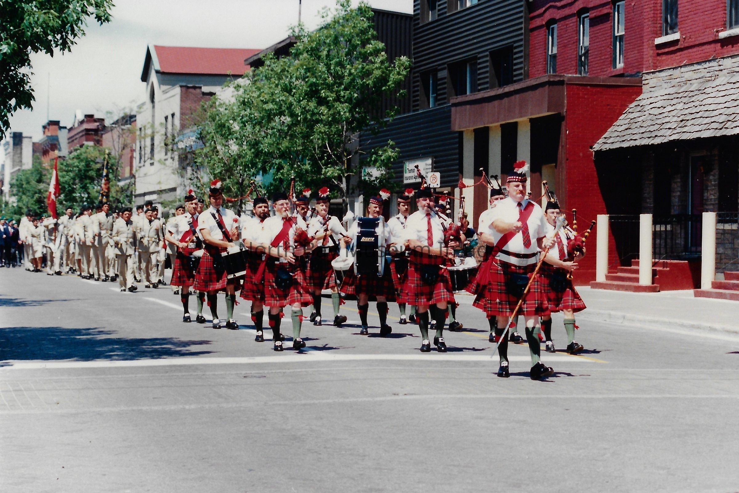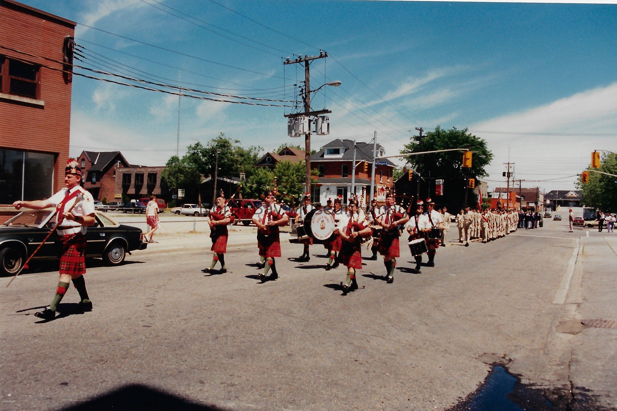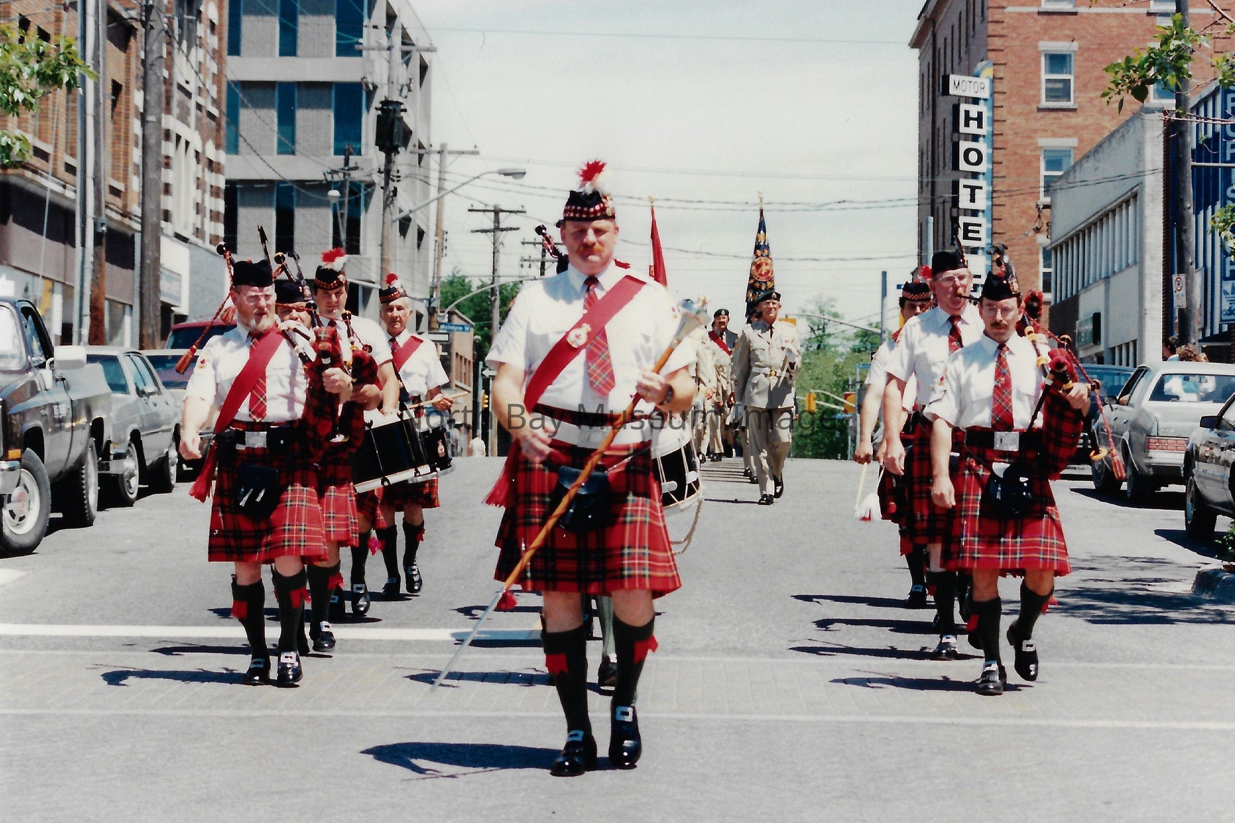These flags are known as the "Colours" and are symbolically very important. There is a Queen's colour, which represents the regiment's loyalty to the crown. There is also a Regimental Colour, which represents the battle honours of the regiment. The presentation of their colours is a significant event in a Regiment's life. Photos are in front of City hall, in downtown, and inside City Hall.