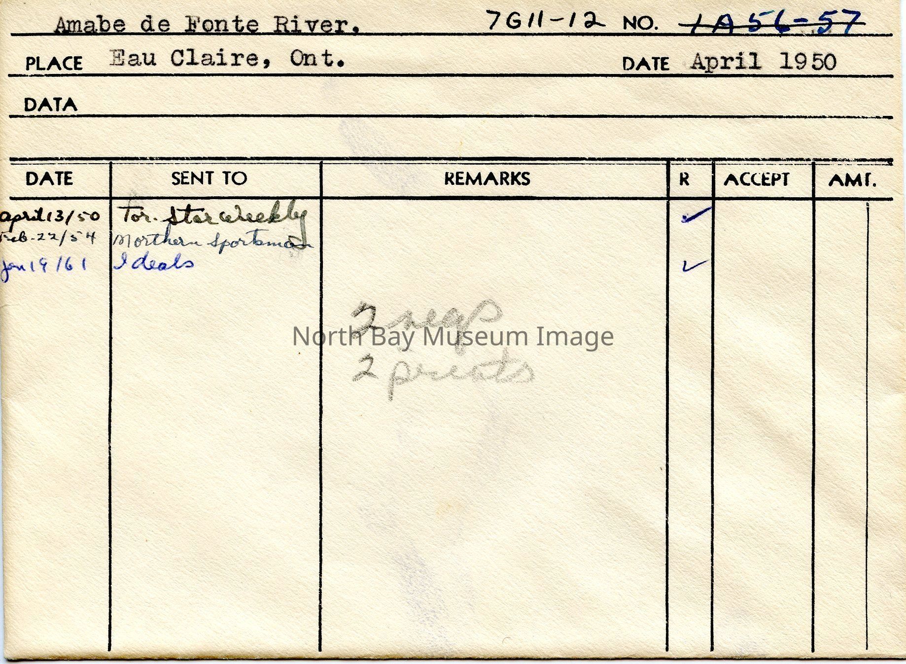 Amabe de Fonte River, Eau Claire, Ont.Entry/Object ID