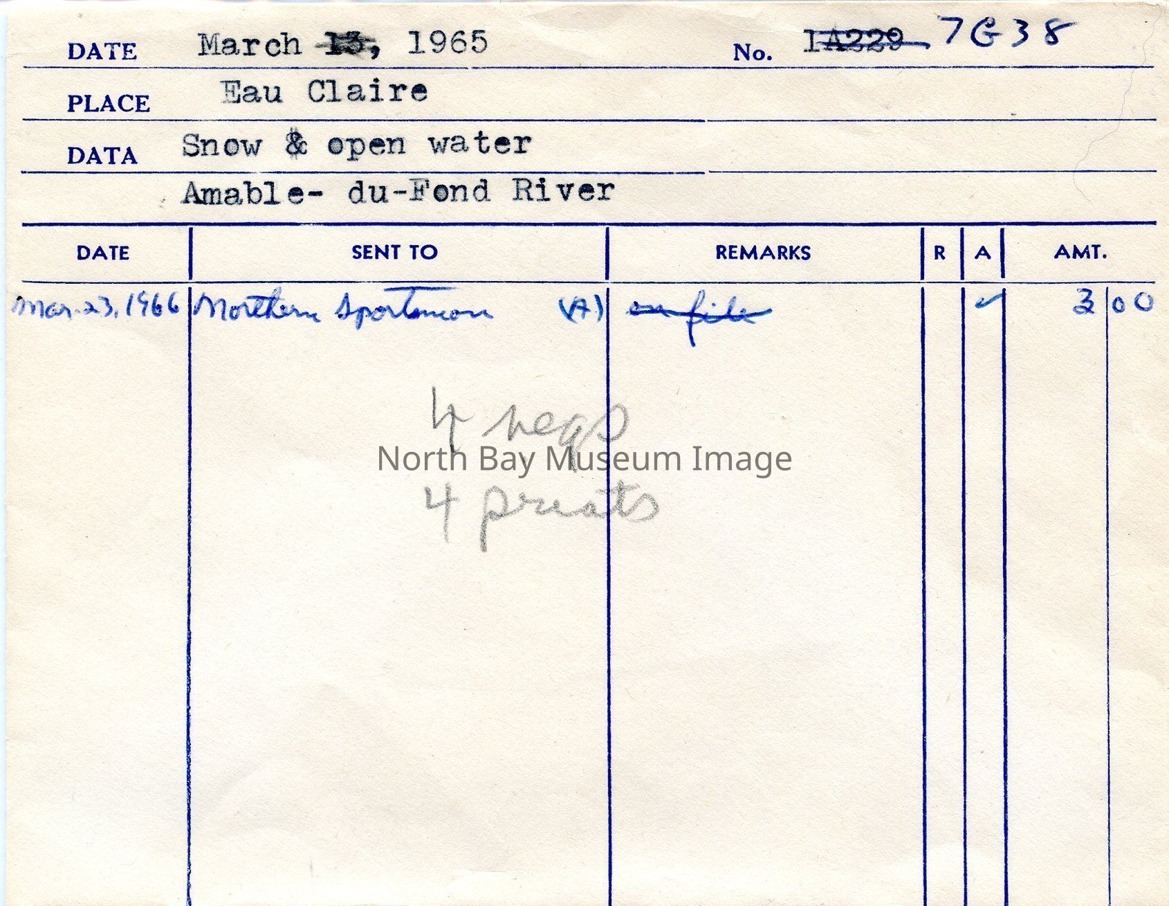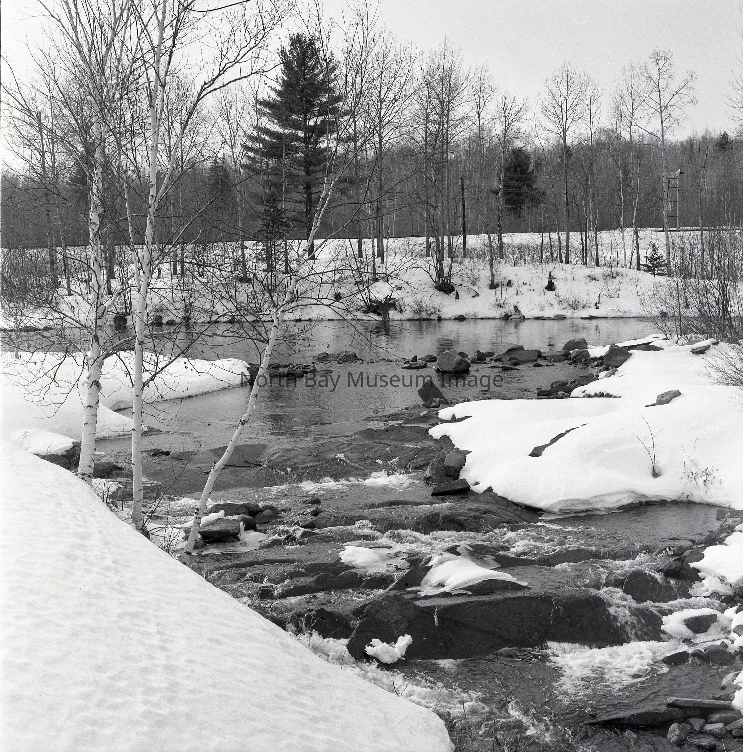 b-e Original Prints showing snow and open water on Amabe du Font River.