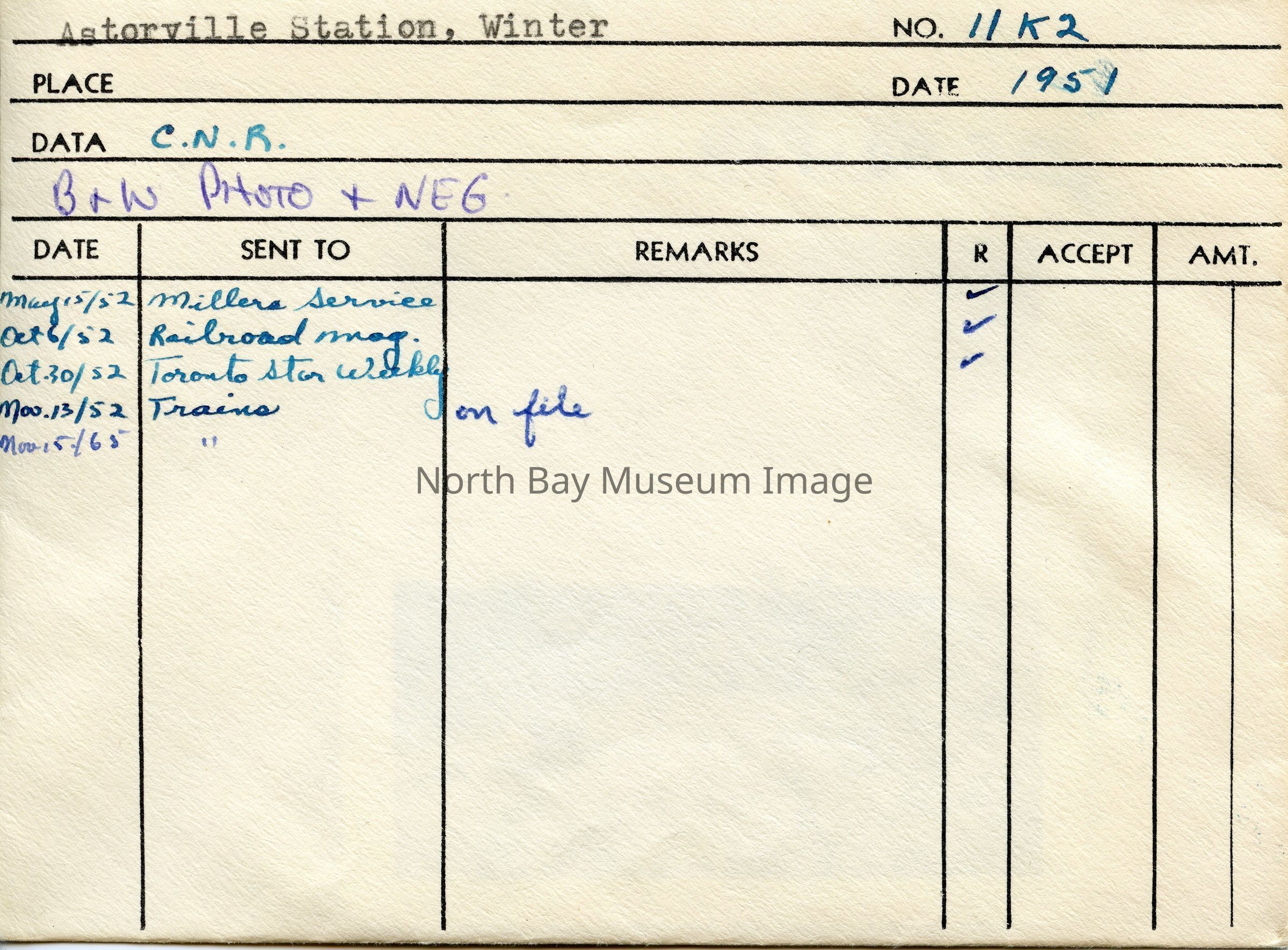 019.60.395a - Envelope. Inscriptions: "Astorville Station, Winter. No. 11K2. 1951. C.N.R."