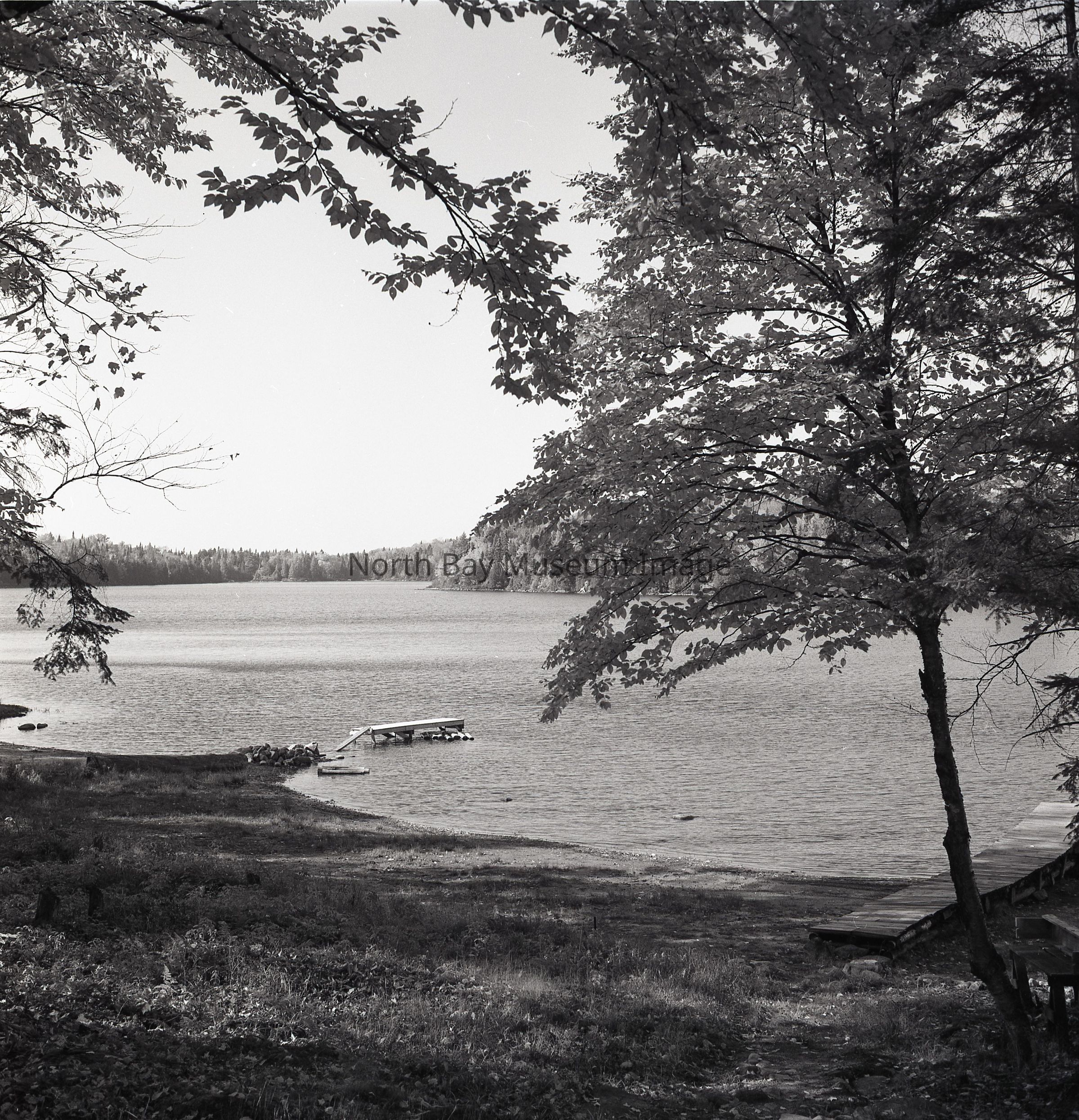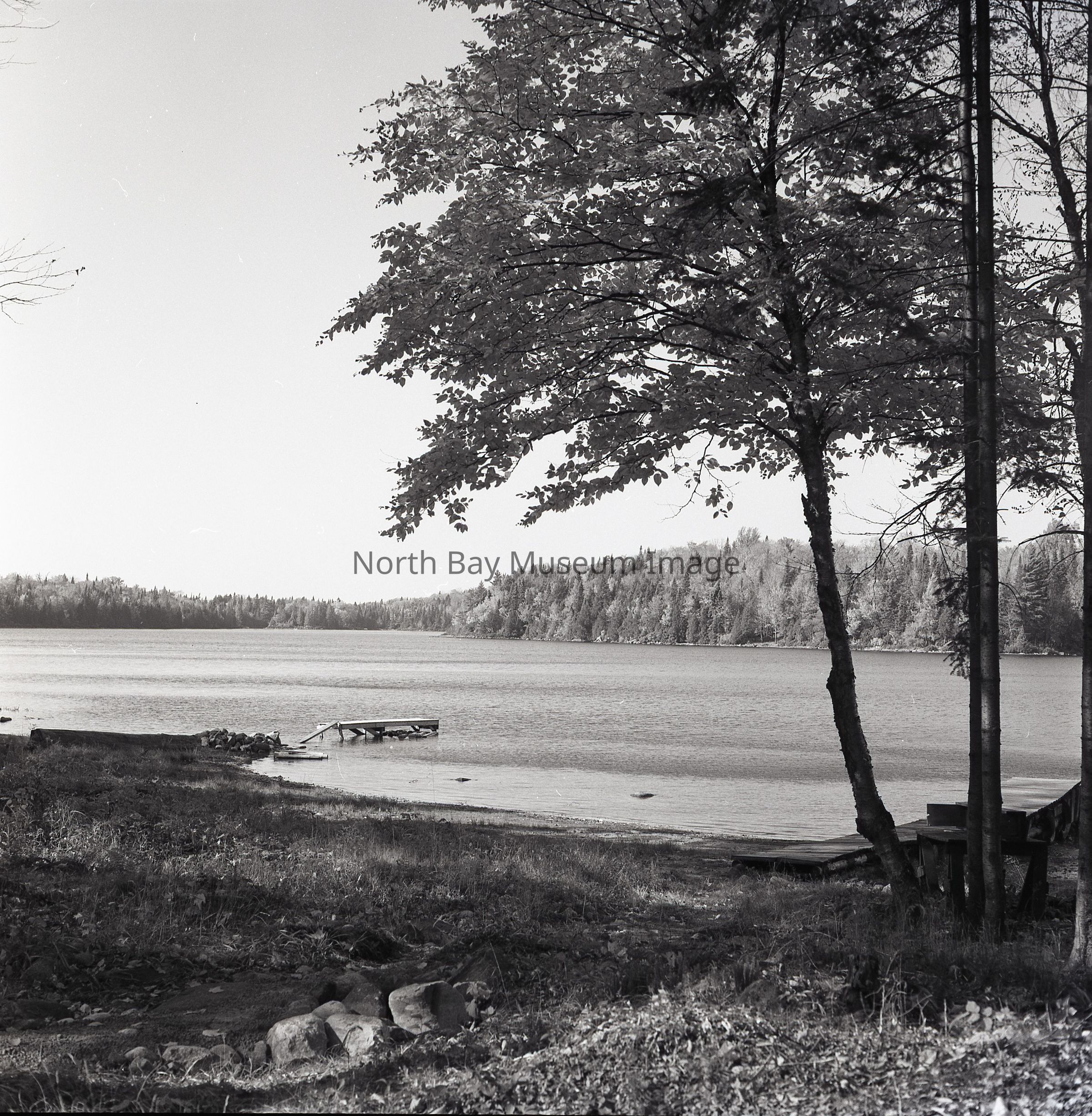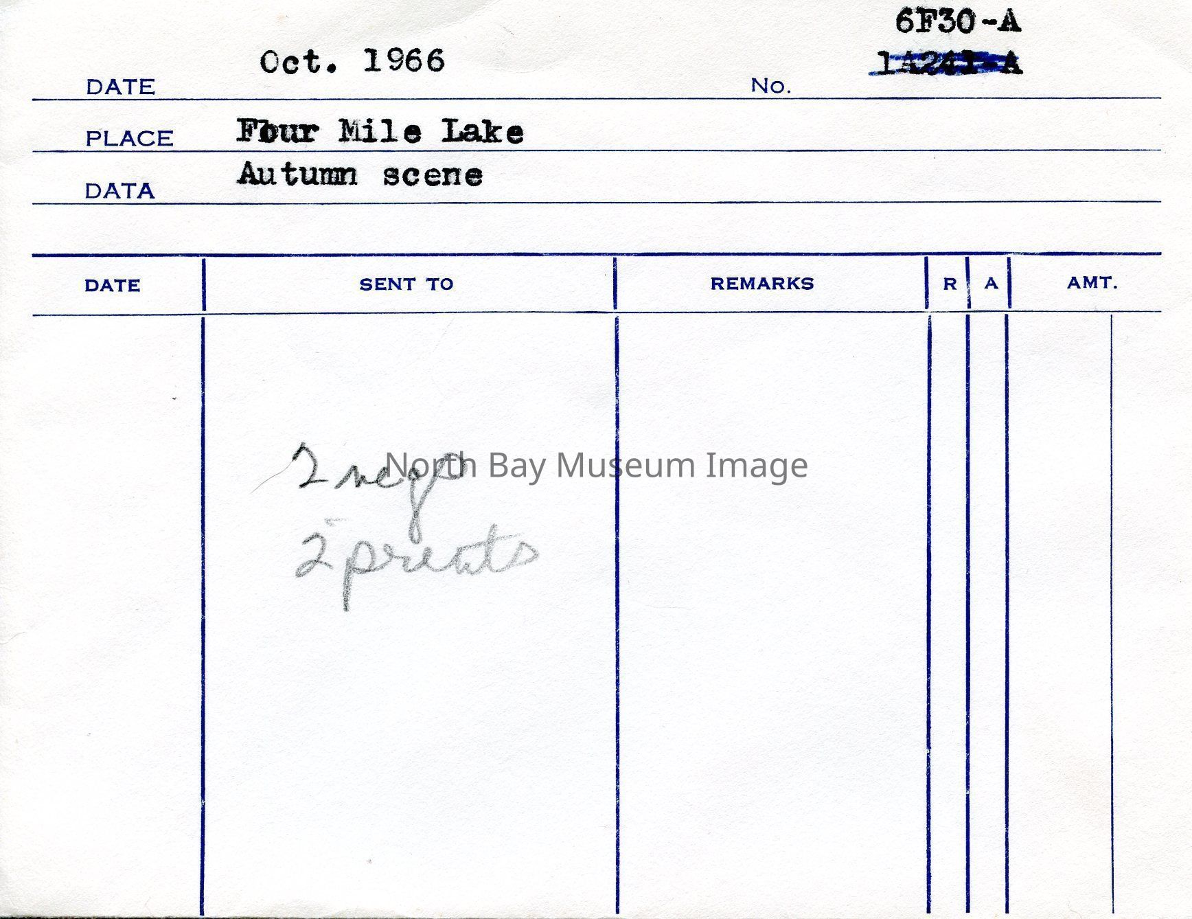 Envelope (a) containing photographs and negatives (b-e) of Autumn scenes at Four Mile Lake.. Photo consists of nature shots of Four Mile Lake, including images of a dock in the water . A part of the Forder Collection. Photographers original number of photographs was 6F30.Creator