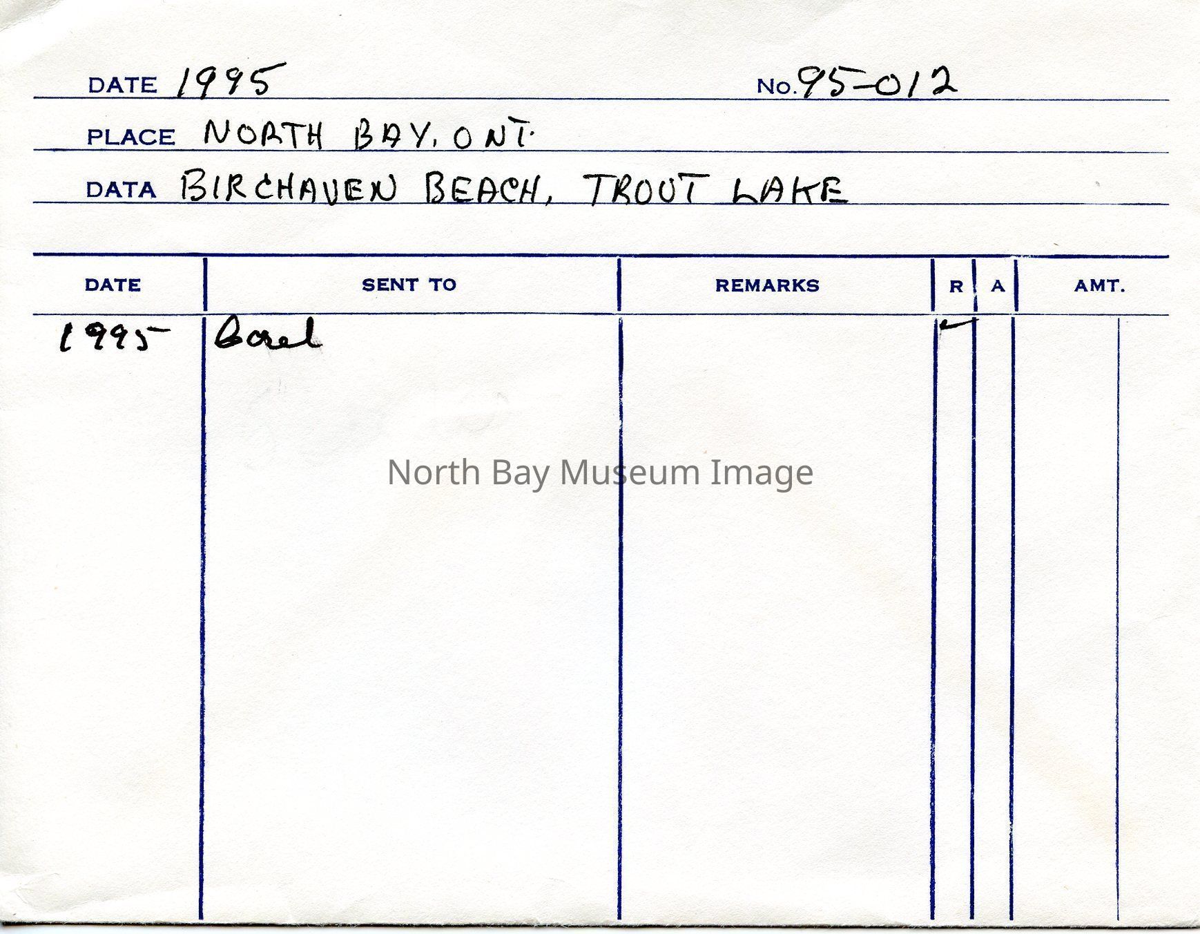 Birchaven Beach, Trout LakeEntry/Object ID